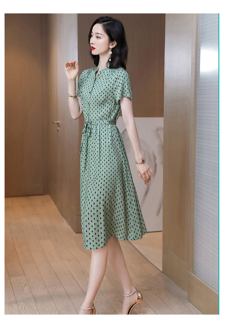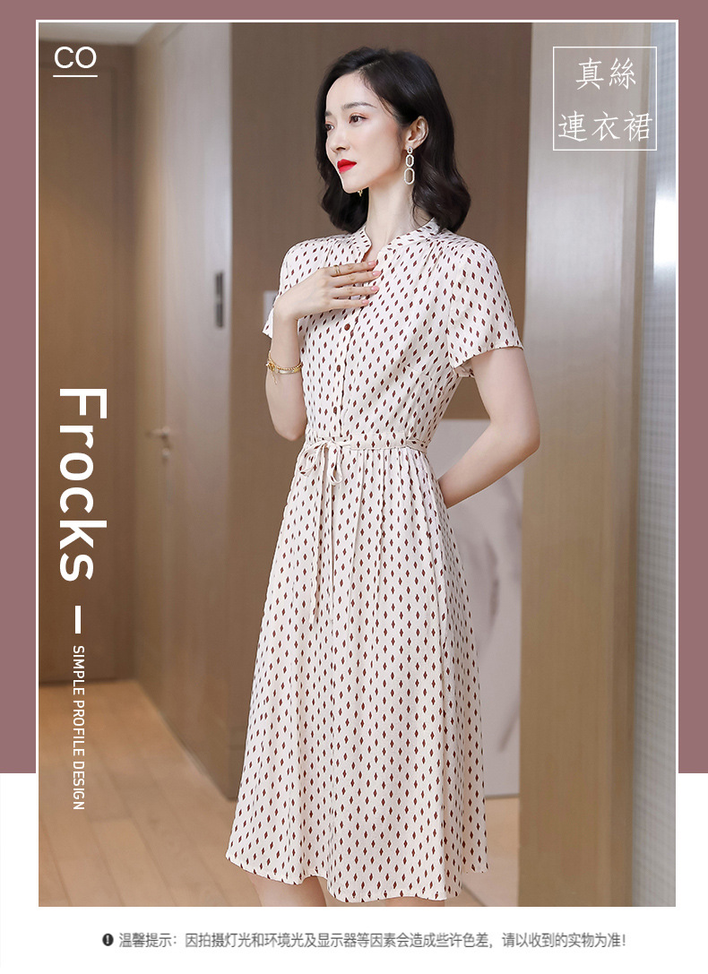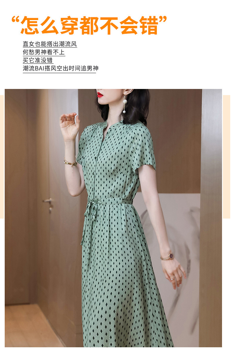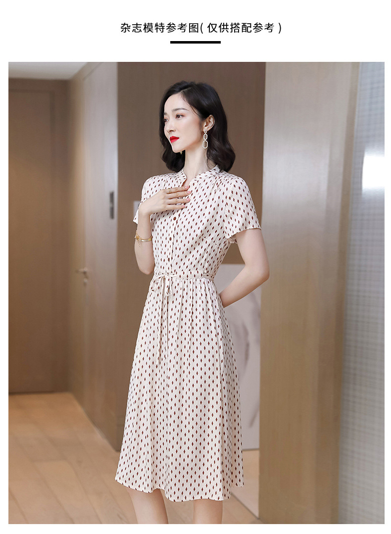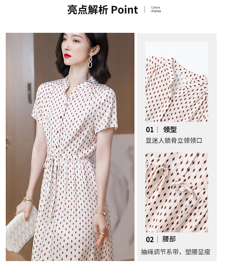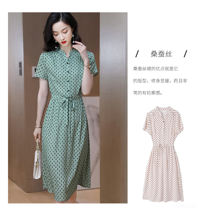 上海旗袍厂ASE-9139重磅真丝连衣裙女新款夏季短袖系带收腰显瘦桑蚕丝印花裙