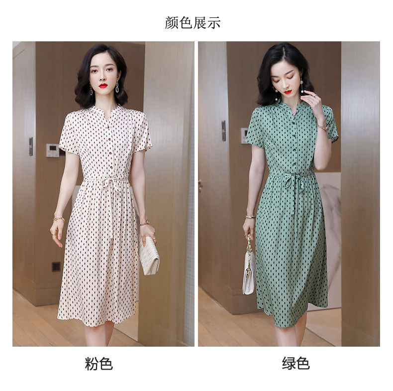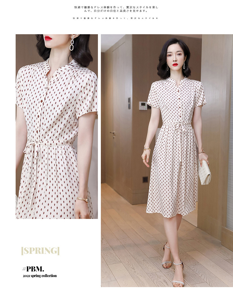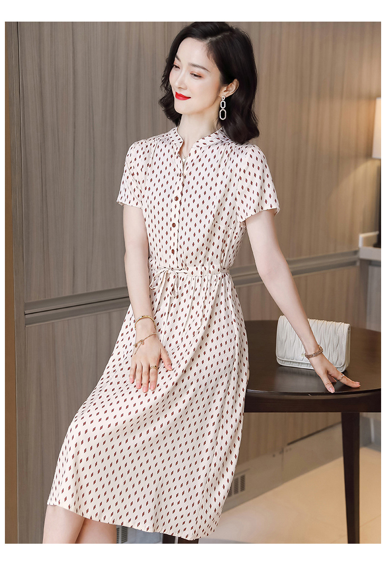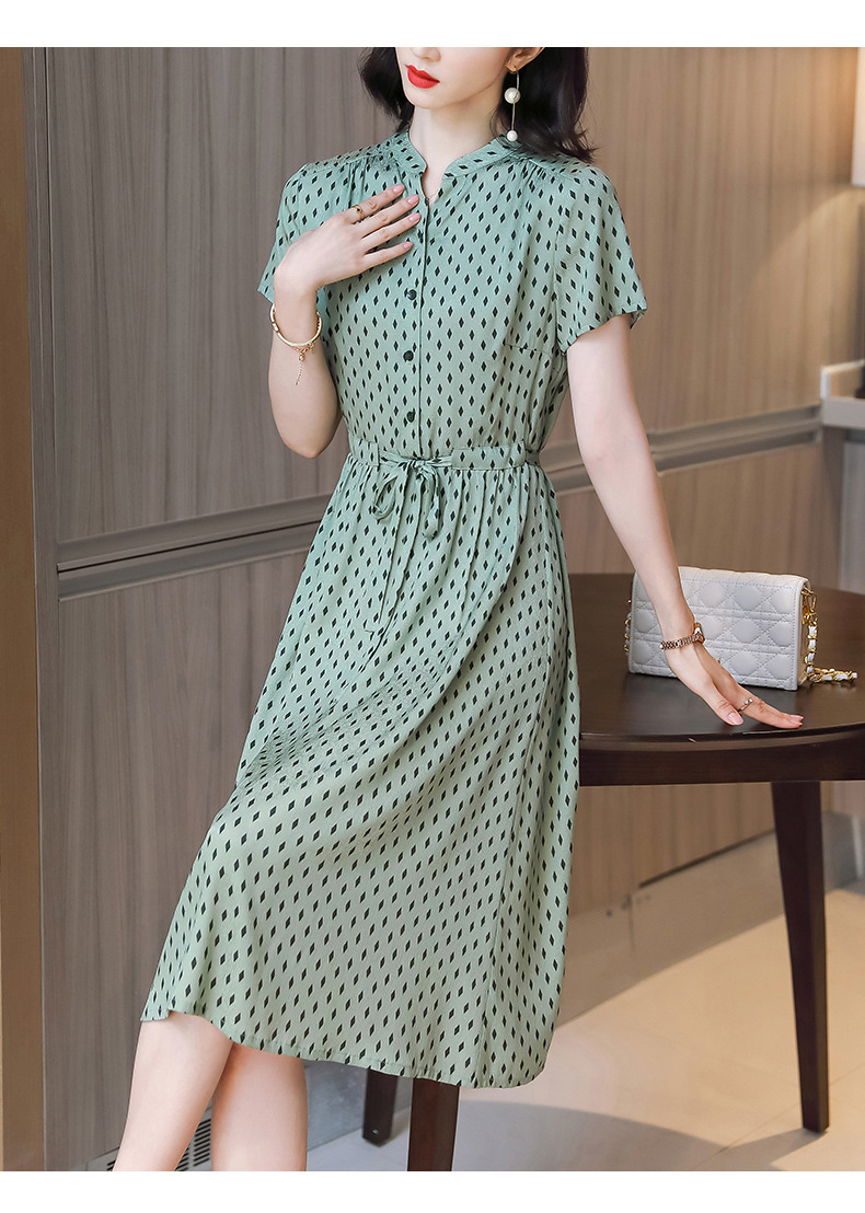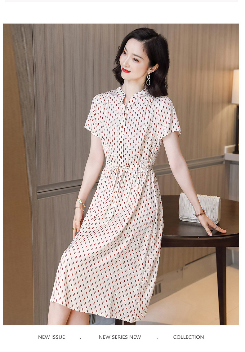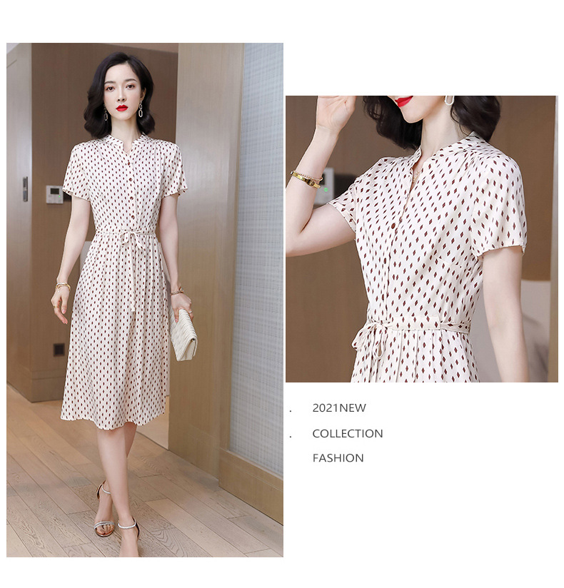 上海旗袍厂ASE-9139重磅真丝连衣裙女新款夏季短袖系带收腰显瘦桑蚕丝印花裙