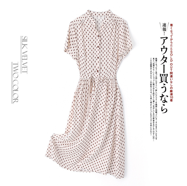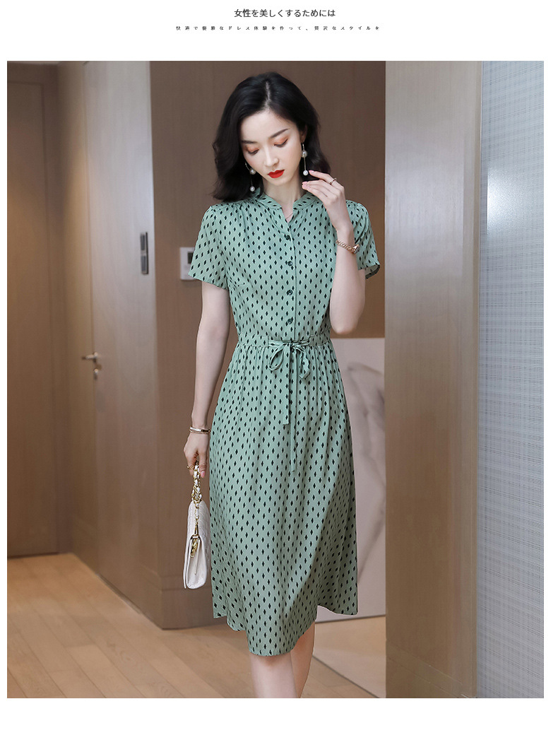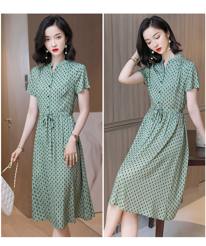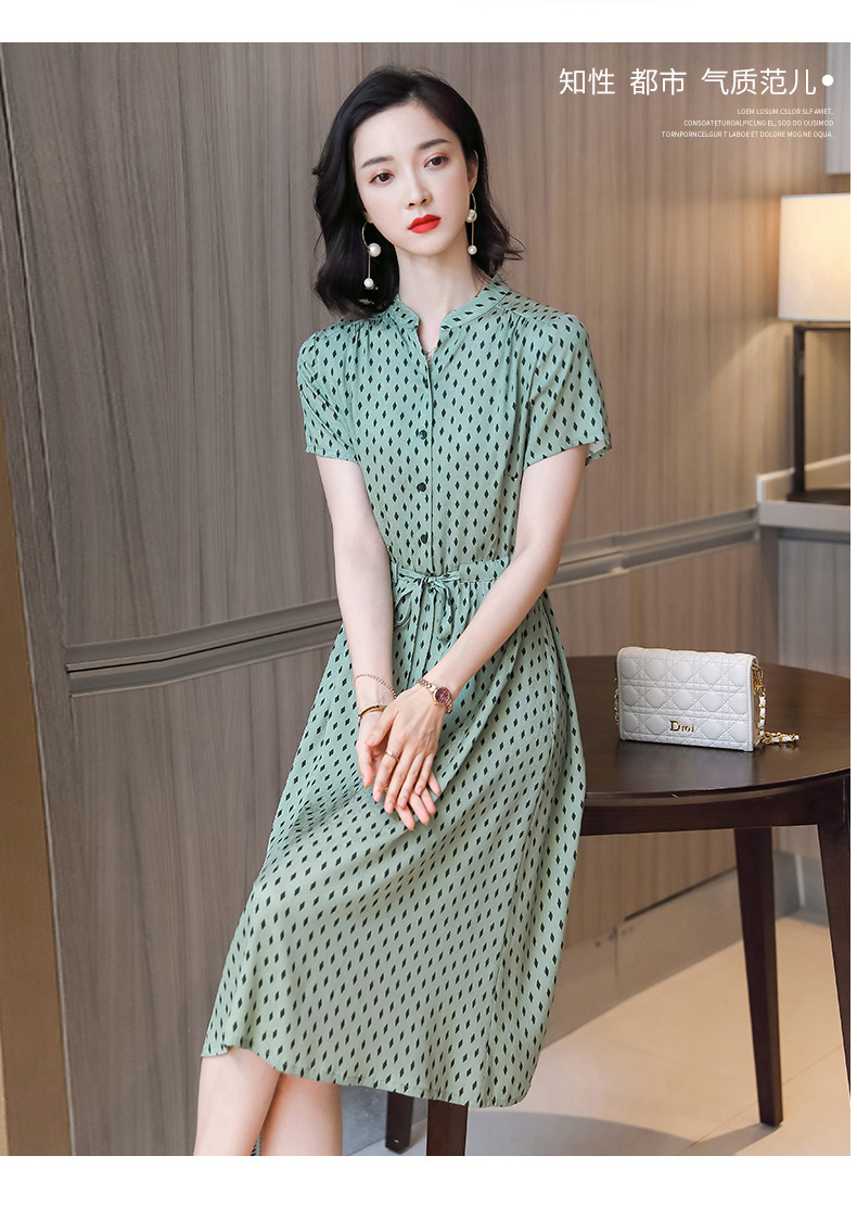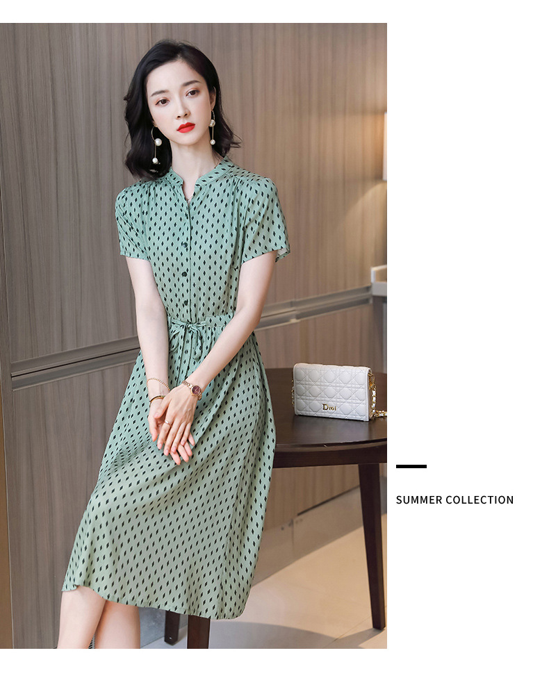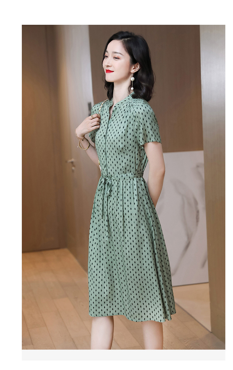 上海旗袍厂ASE-9139重磅真丝连衣裙女新款夏季短袖系带收腰显瘦桑蚕丝印花裙