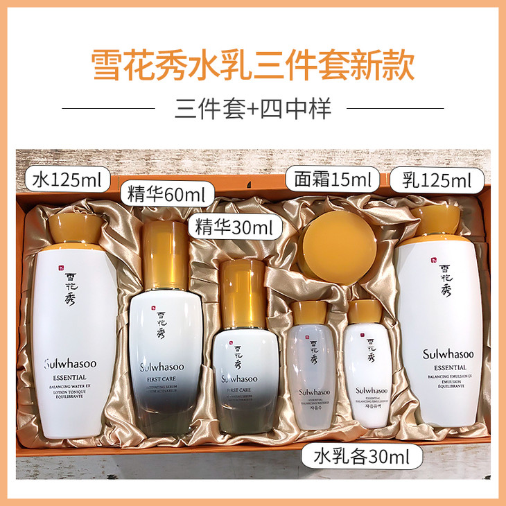 雪花秀三件套 | 👍超级无敌划算,品牌方也是出绝招了❗超贴心搭配,再也不用单独买水了。💛滋阴系列可以根据不同的肤质情况来调节肌肤平衡,😆集抗皱、滋润、延缓衰老为一体✔!纯中药成分,滋阴去黄保湿💦,调节水油平衡,改善肌肤黄气☺️,抗皱抗衰老,不挑皮不挑年龄[好的]。 【套装包括】:水125ml+乳125ml+润燥精华60ml+弹力面霜15ml+水30ml+乳30ml+润燥精华30ml
