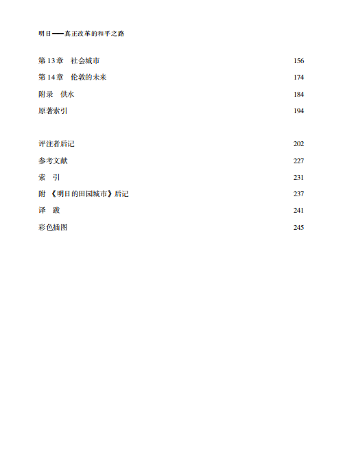埃比尼泽·霍华德的《明日——真正改革的和平之路》是现代城市规划史上当之无愧最有名的著作,也是最重要的规划理论图书,原著于1898年初版。自出版以来,对国际城市规划产生了巨大影响,引发了席卷全世界的“田园城市运动”,成为城市规划理论图书和教科书中必提的名著,也是城市规划、城市经济、建筑学和政治史学者及师生们的必读图书。 本书是英国城乡规划协会为庆祝第一个田园城市100周年华诞而出版的原著影印版,除了霍华德的原著外,还收入了霍华德以后版本所有遗漏和佚失的材料和全部彩图,加入了国际著名规划师彼得·霍尔、丹尼斯·哈迪和科林·沃德的导言、学术性评析注解和评注者后记,为读者理解霍华德这部杰作提供了新的视角和解读。本书对城市规划发展具有深远意义,对我国城市规划师、建筑师、政治史学者、政府官员及相关专业在校学生将具有很好的启迪和指导作用。