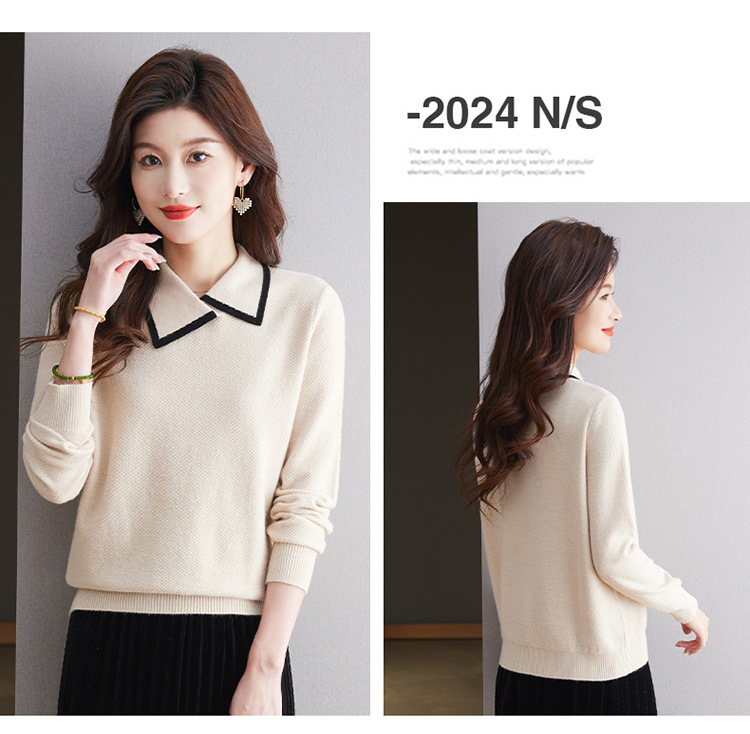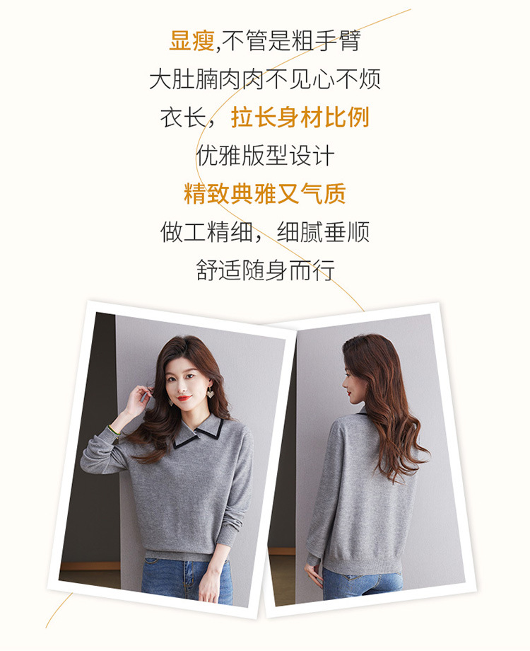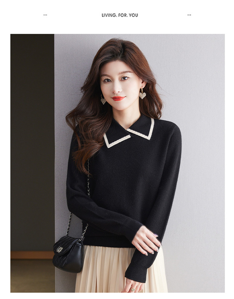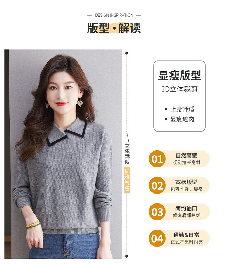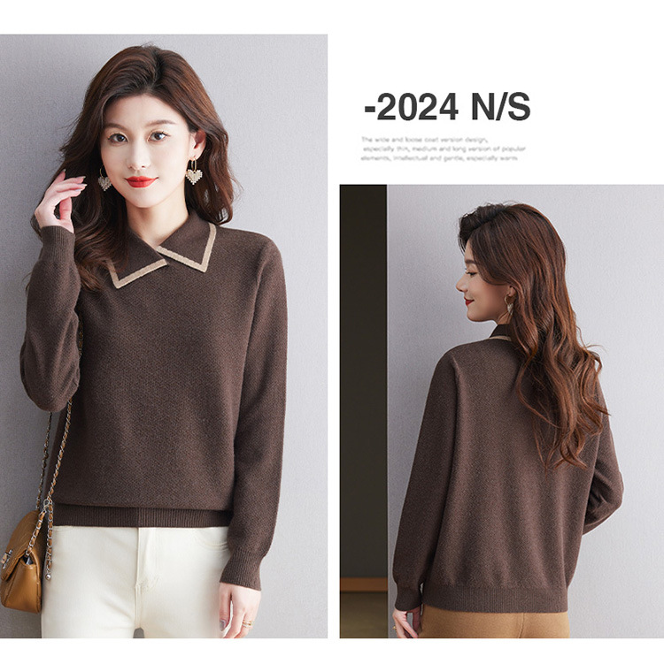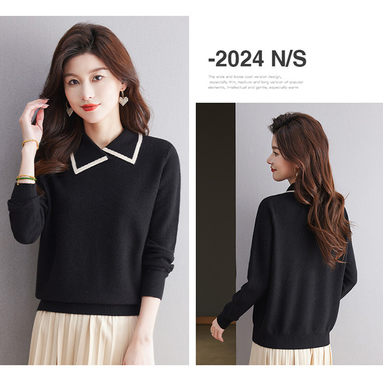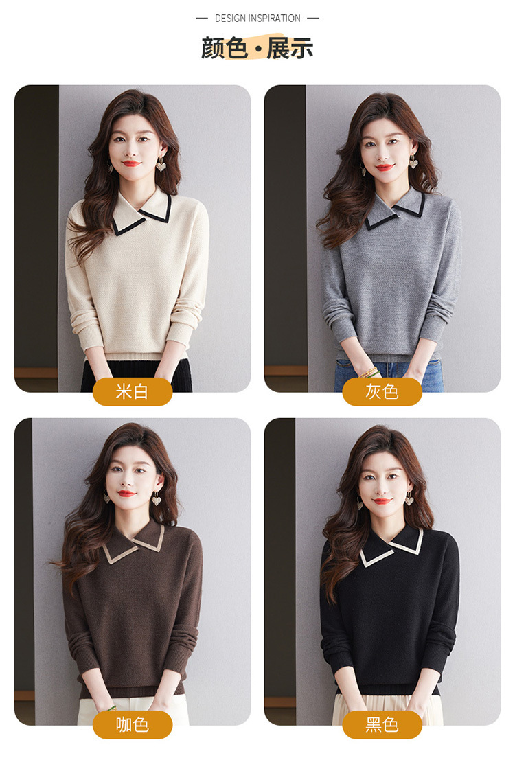 CC-101-2037秋季女装设计感上衣2024新款设计感翻领针织衫套头秋冬毛衣打底衫