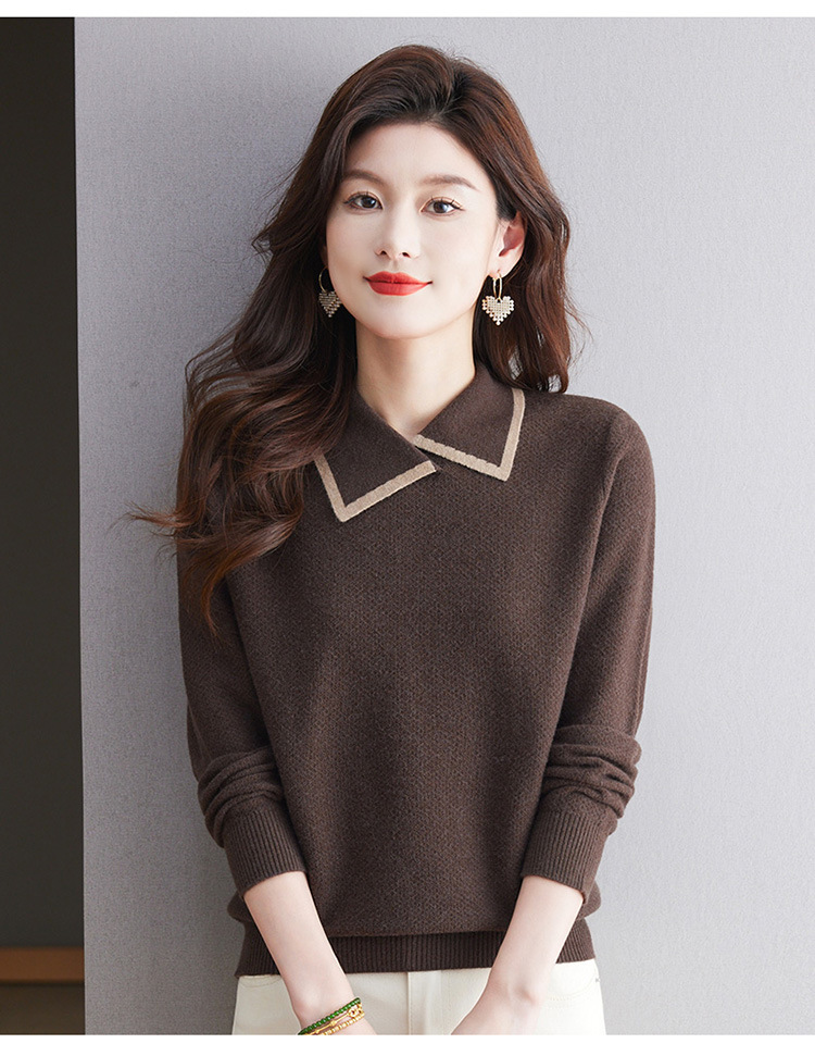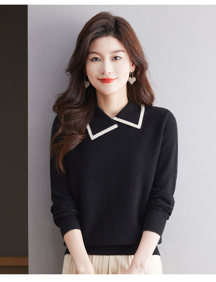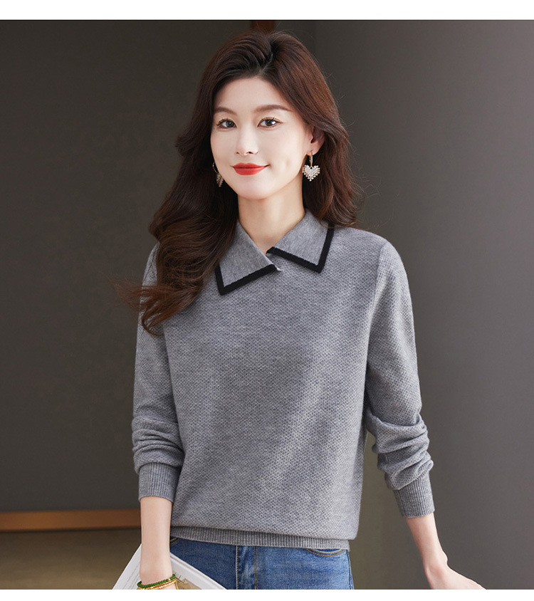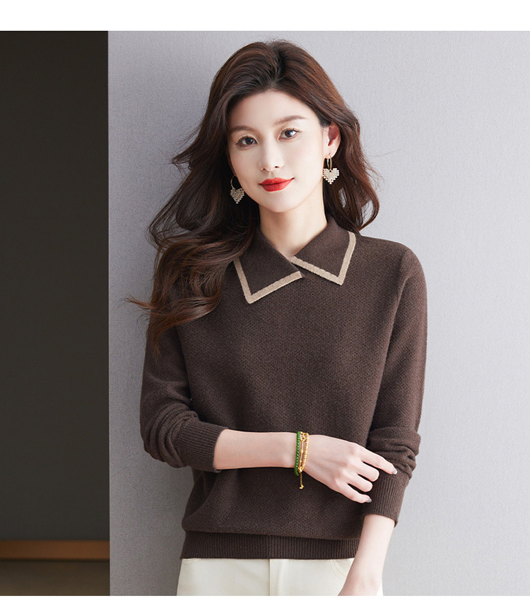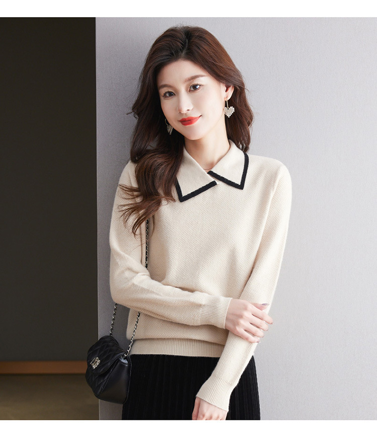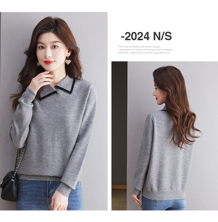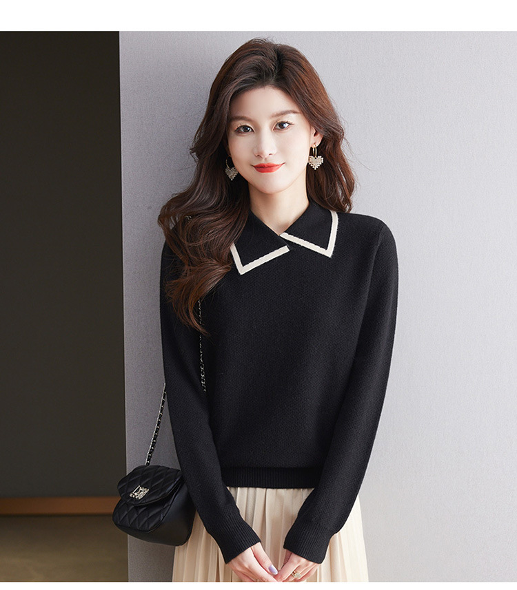 CC-101-2037秋季女装设计感上衣2024新款设计感翻领针织衫套头秋冬毛衣打底衫