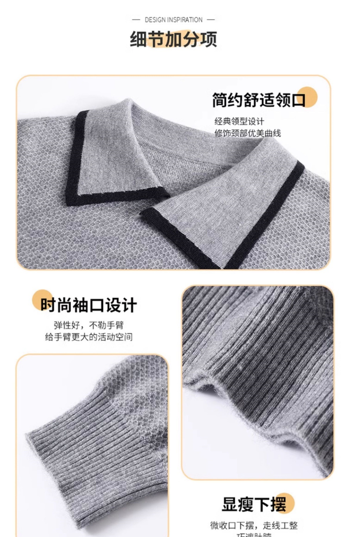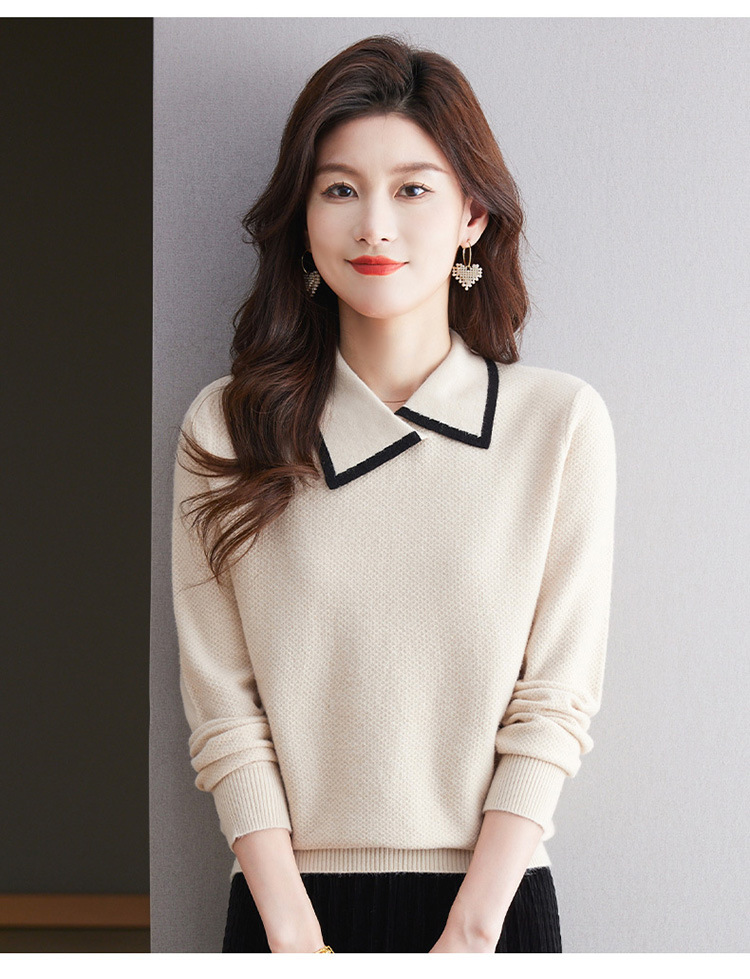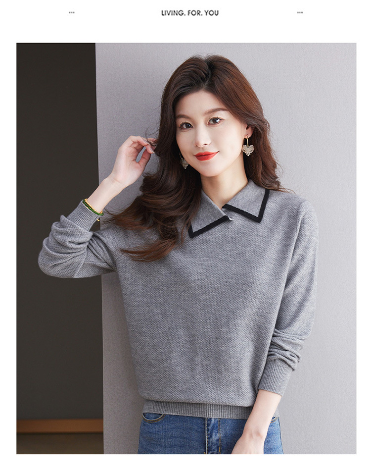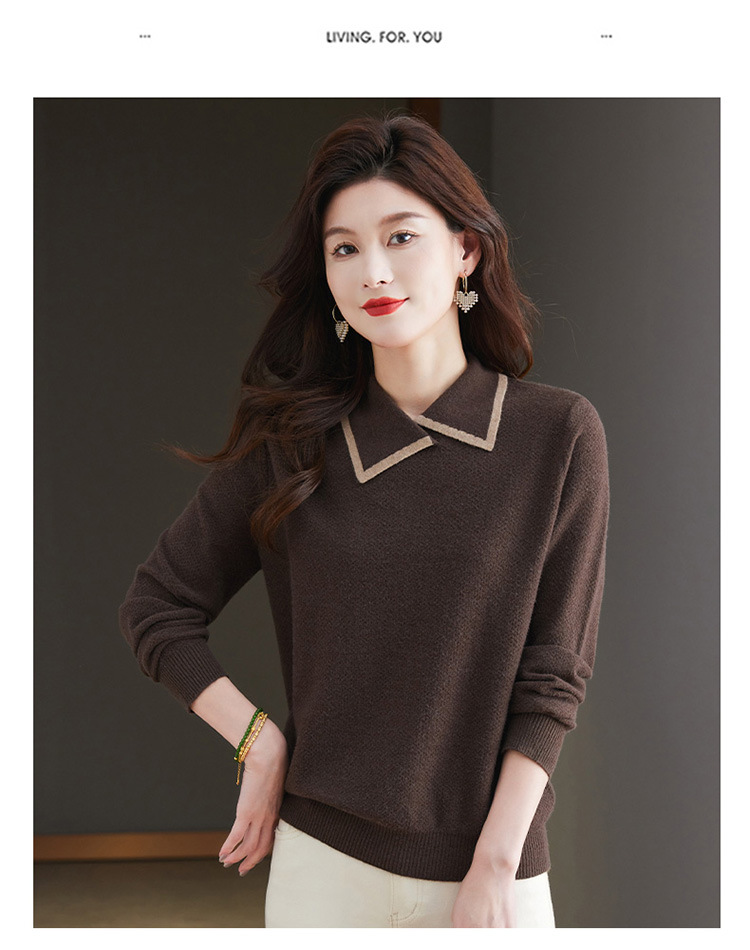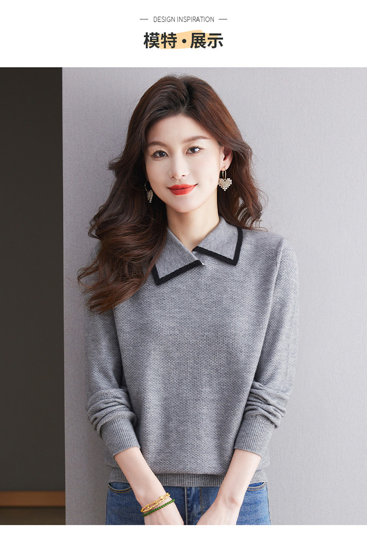 CC-101-2037秋季女装设计感上衣2024新款设计感翻领针织衫套头秋冬毛衣打底衫