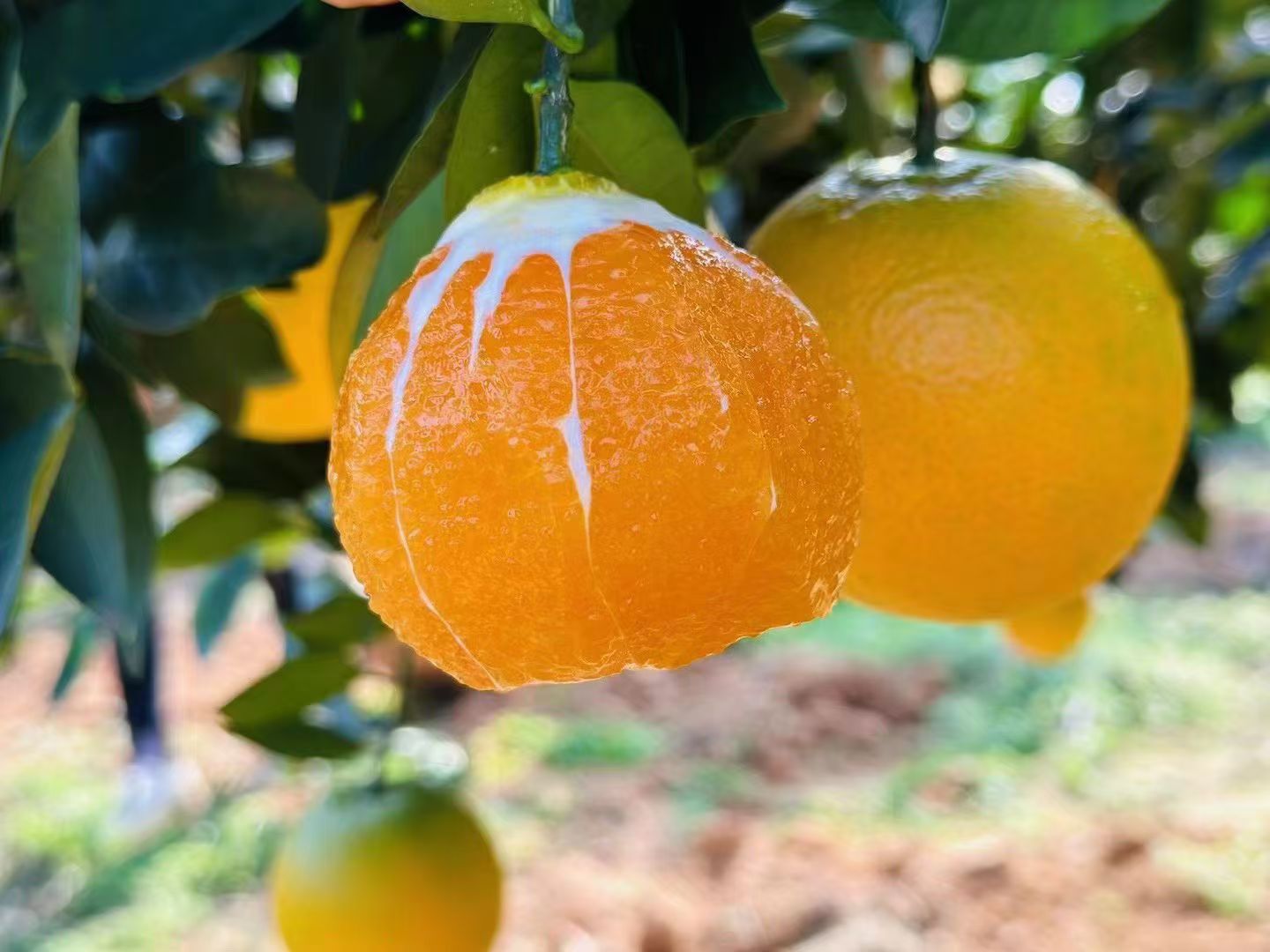品种来源:九月红果冻橙学名早红脐橙,是一种嵌合体品种。它是在蜜橘上嫁接脐橙时,由嫁接口长出的特殊枝条培育而来,是世界上自然产生的唯一此类品种。