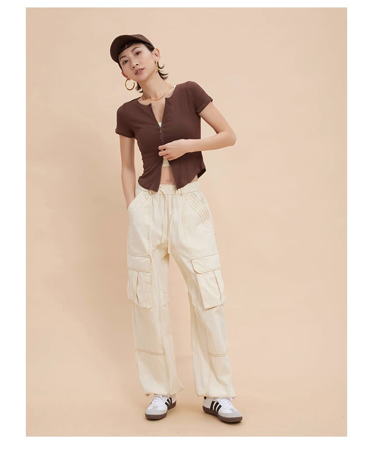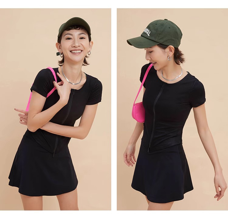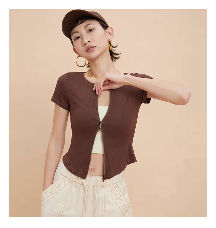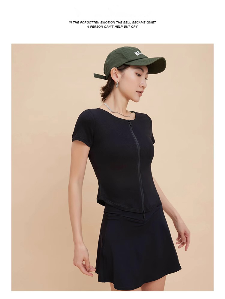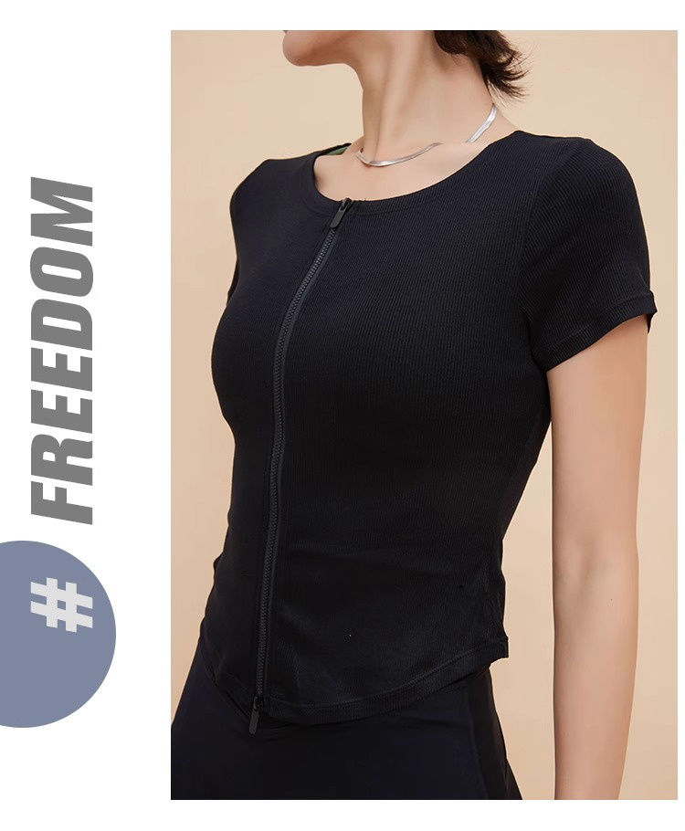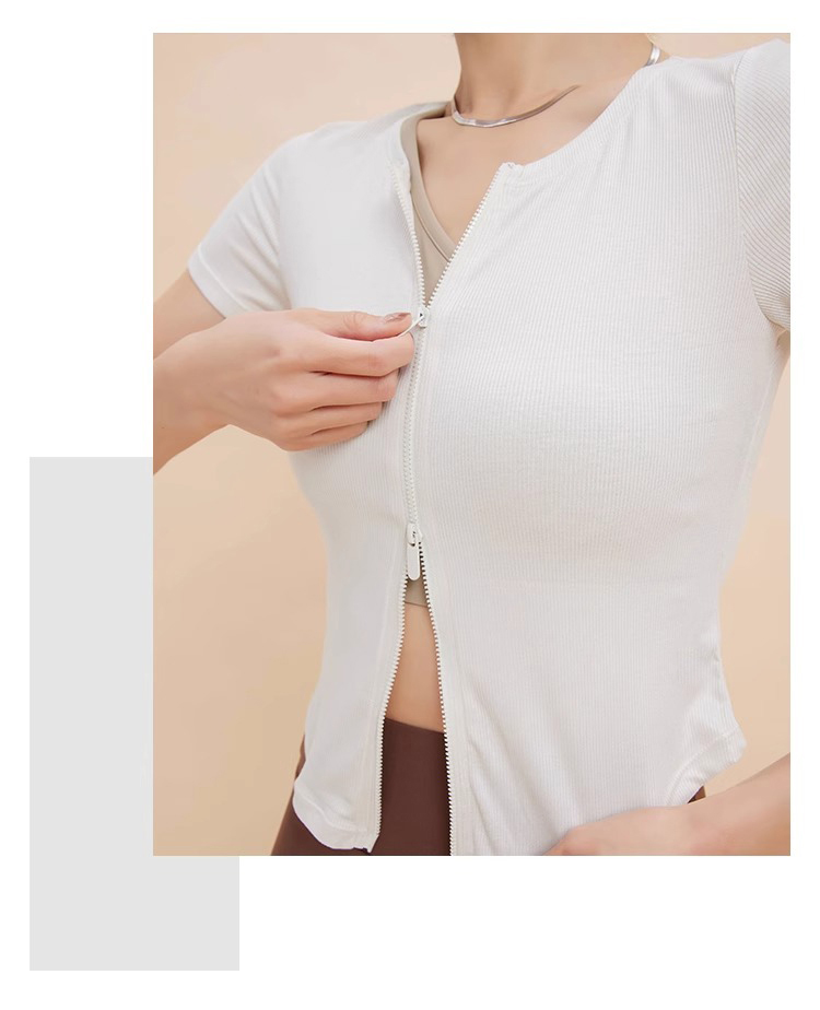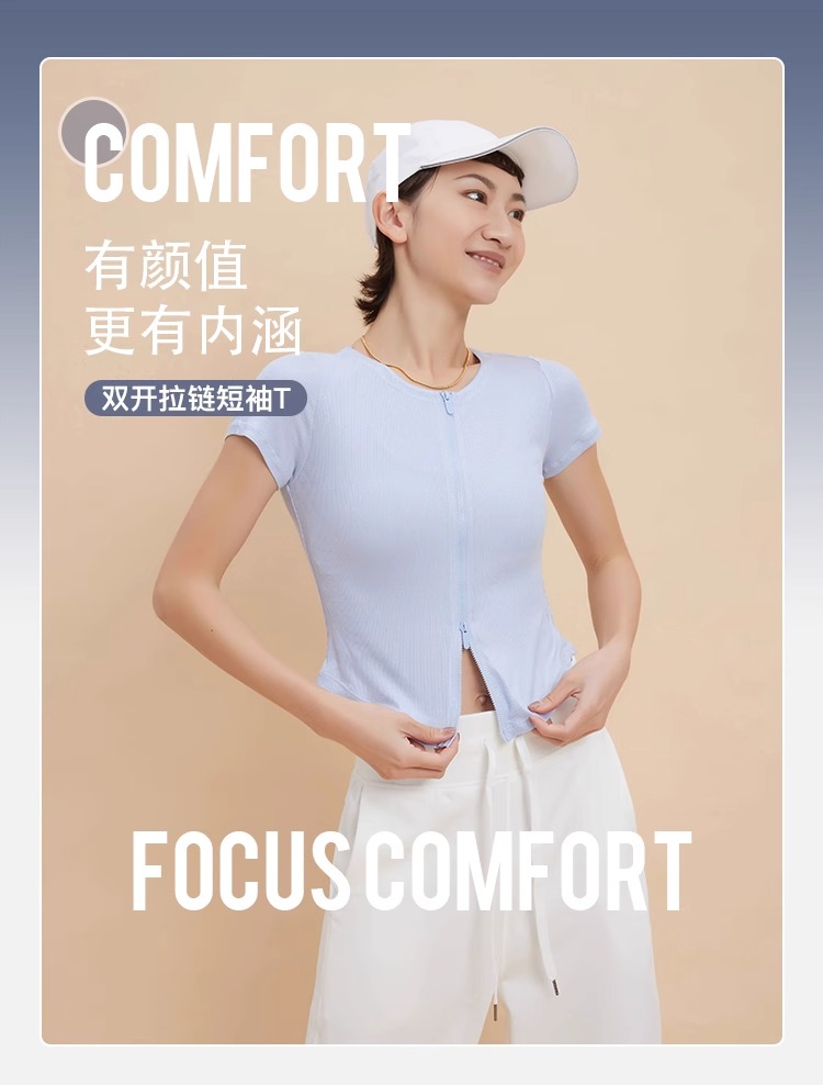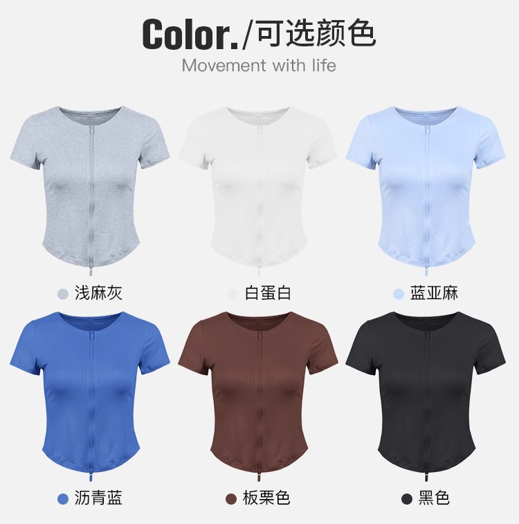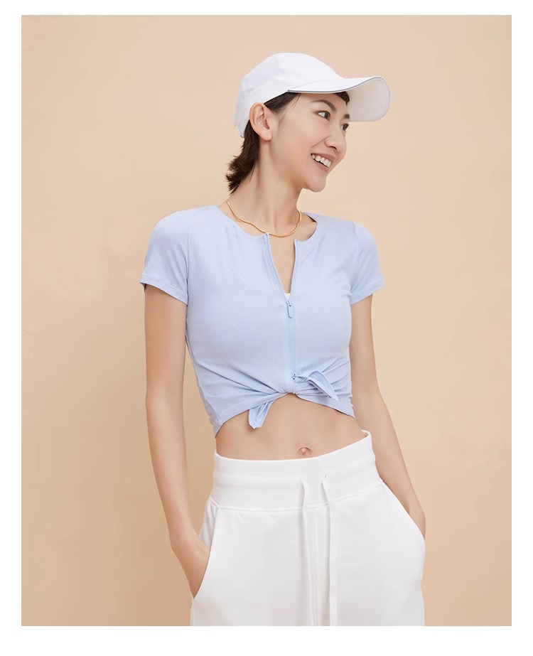 【3~5天发货】跃牌【美度空间】系列 莫代尔裸感修身运动t恤女圆领拉链瑜伽服休闲小蛮腰健身短袖夏季ADTX41020