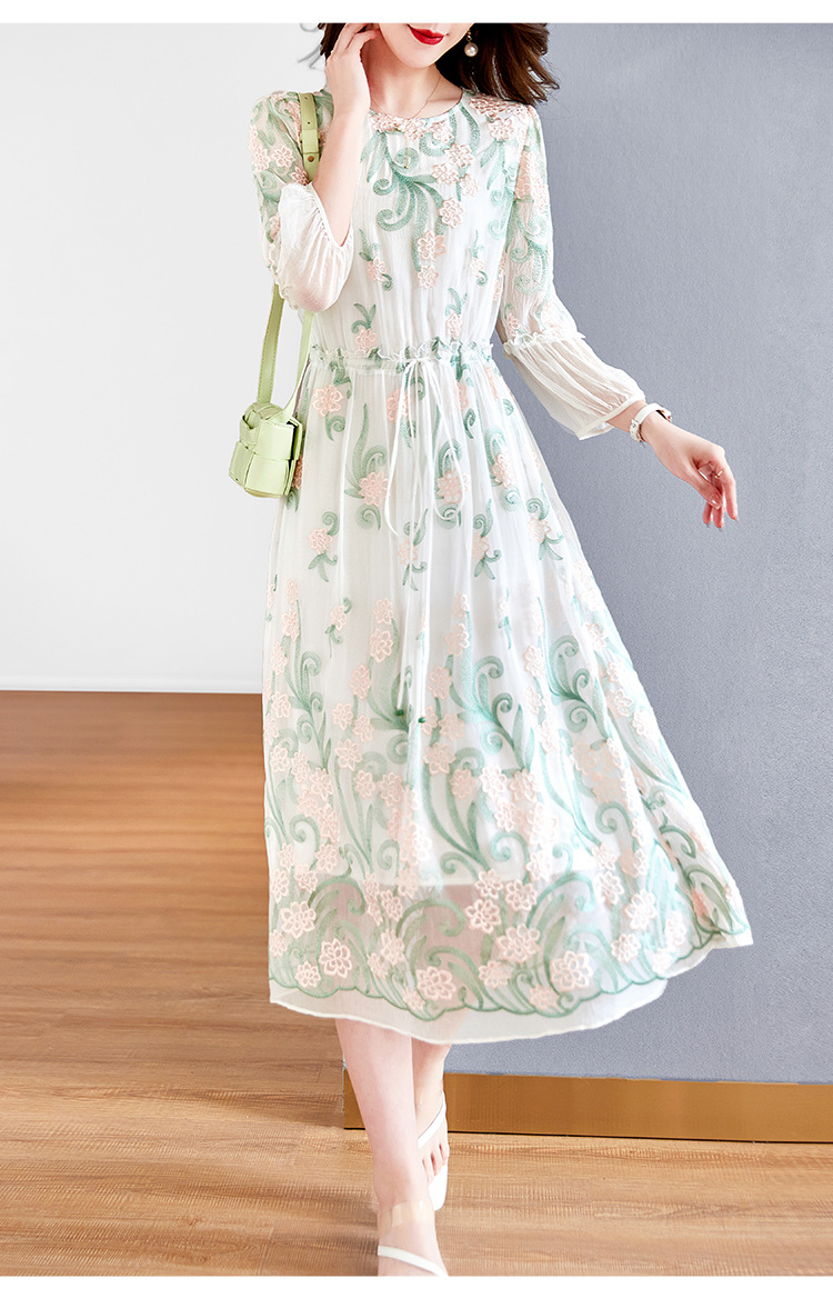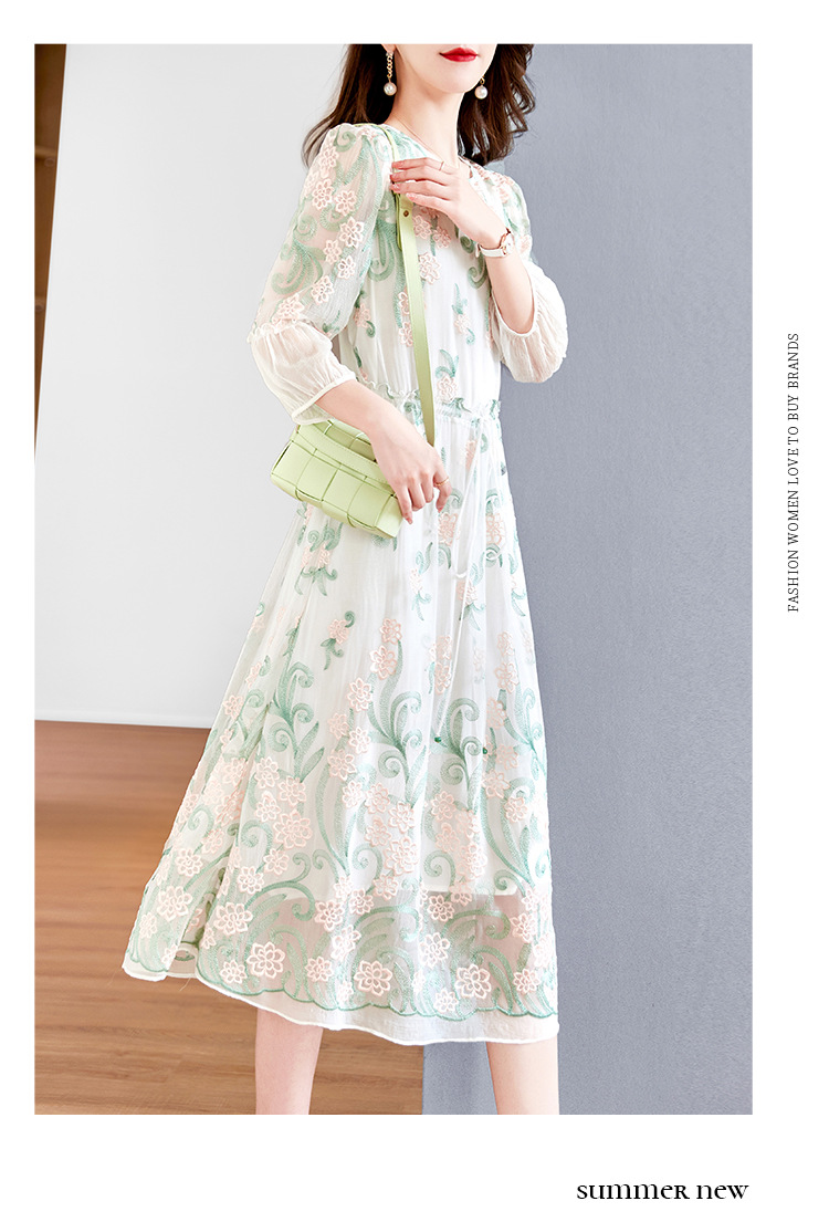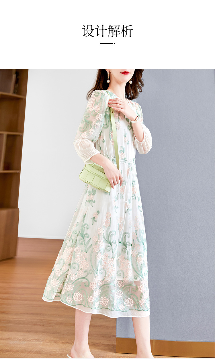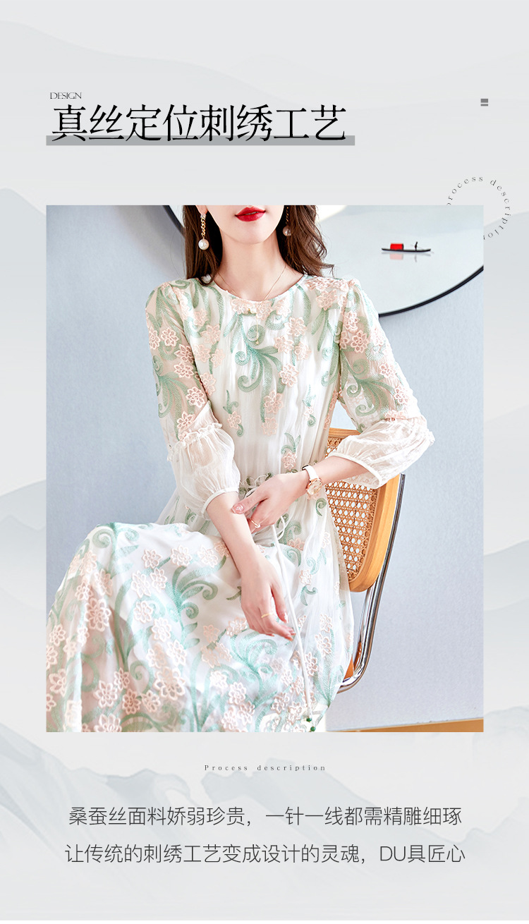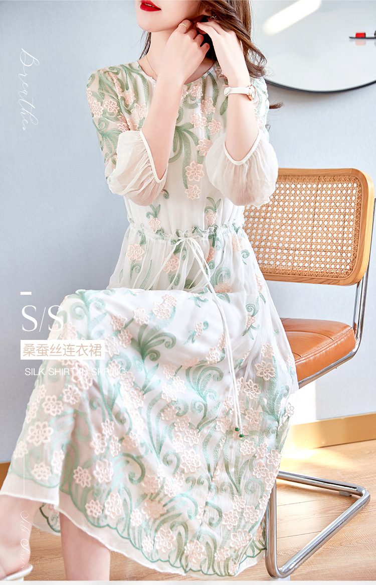 真丝重工刺绣连衣裙新款中老年时尚圆领桑蚕丝裙SM82399657