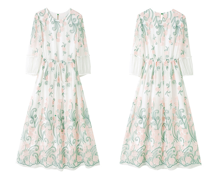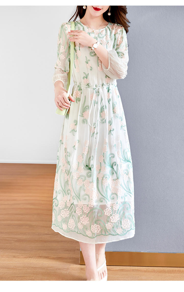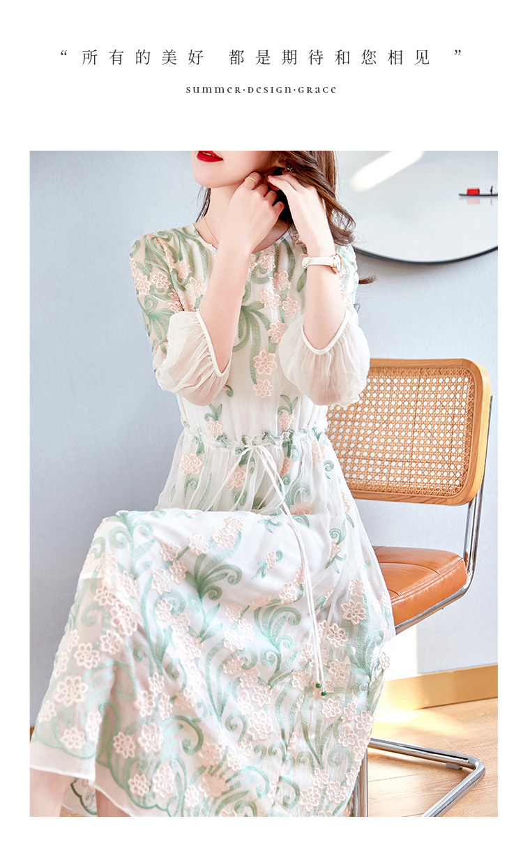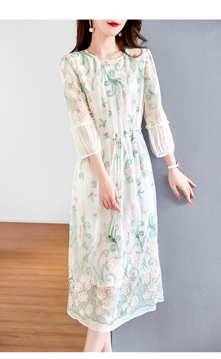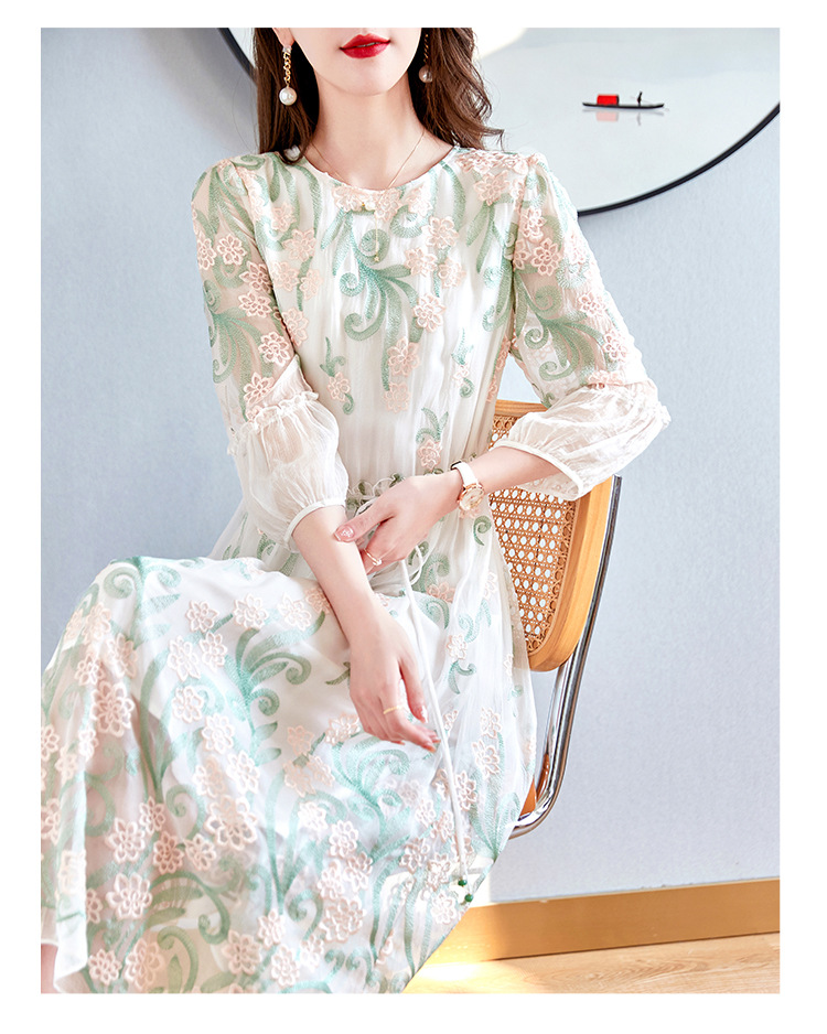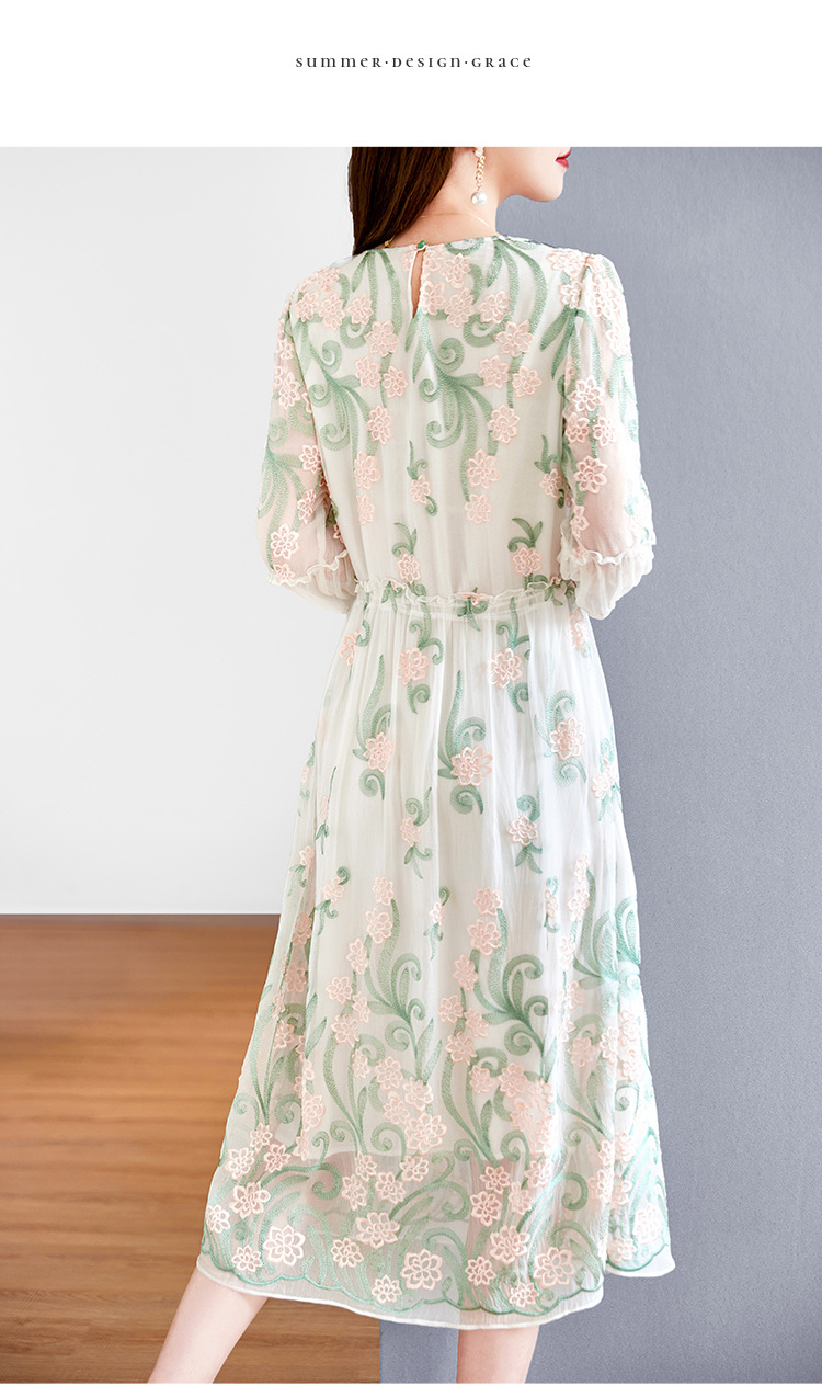 真丝重工刺绣连衣裙新款中老年时尚圆领桑蚕丝裙SM82399657