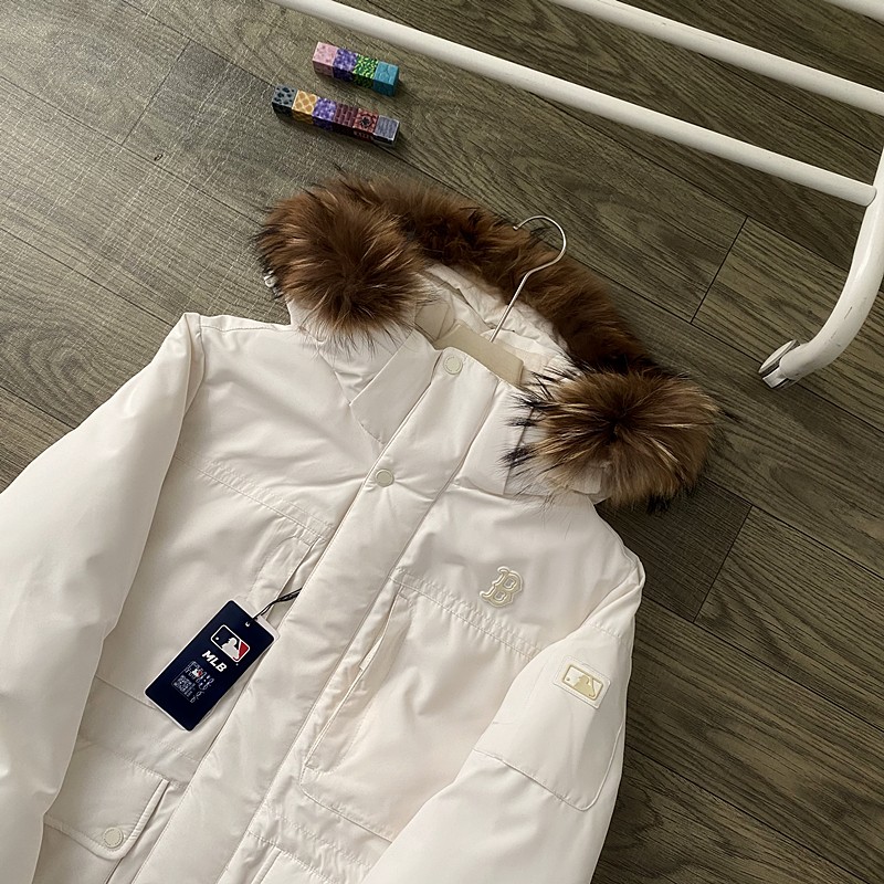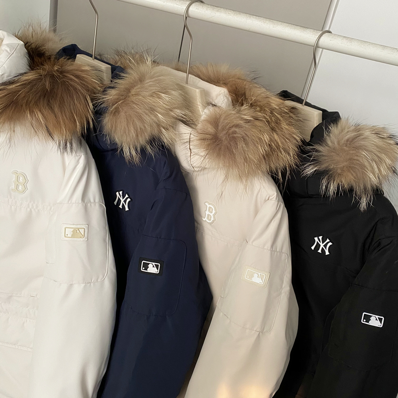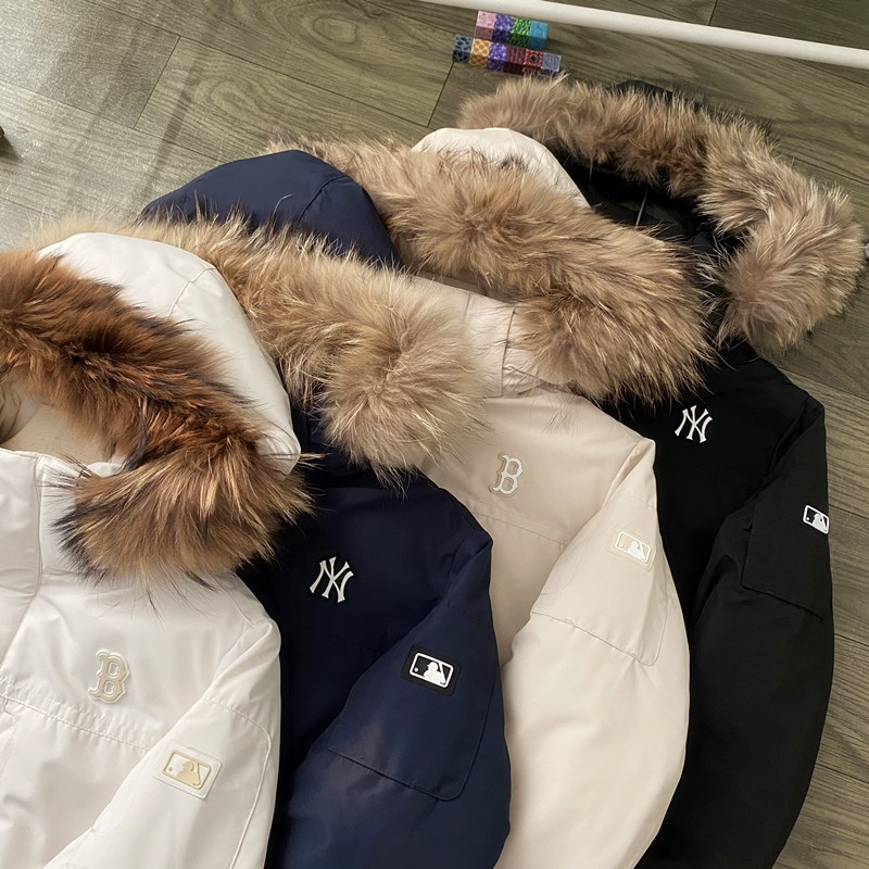 今年大火的MLB工装貉子毛领中长款羽绒服!
