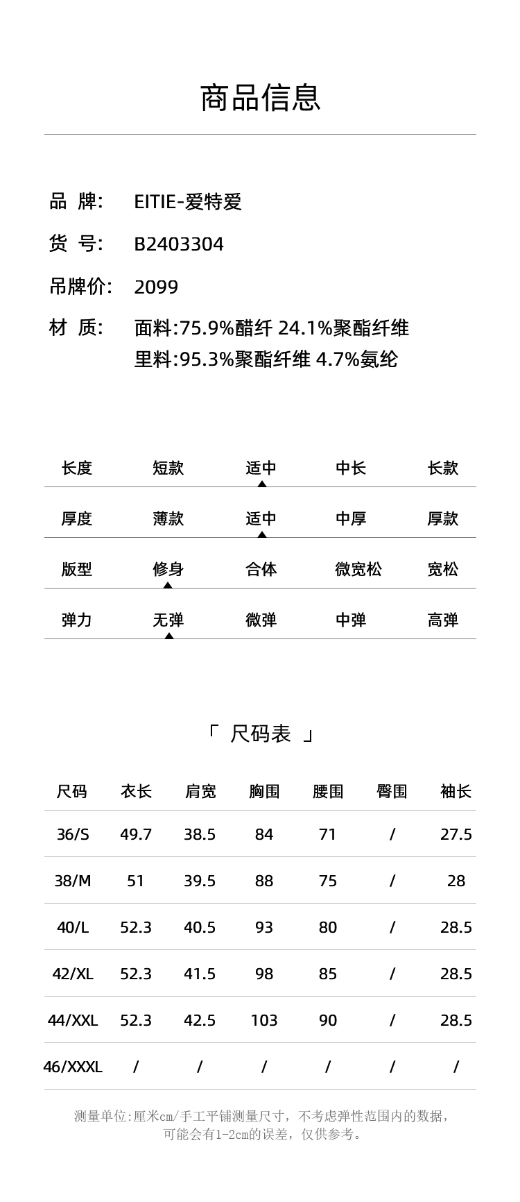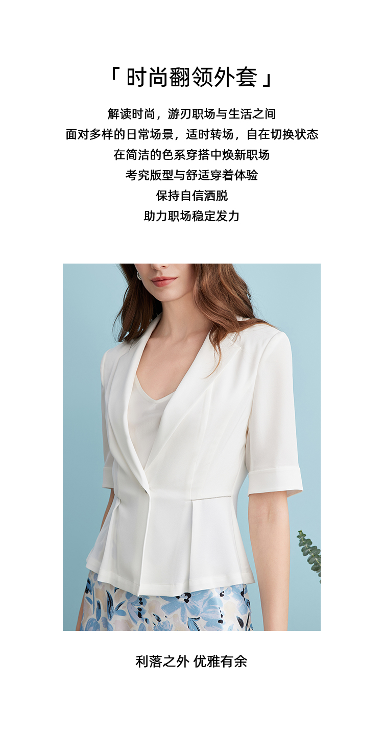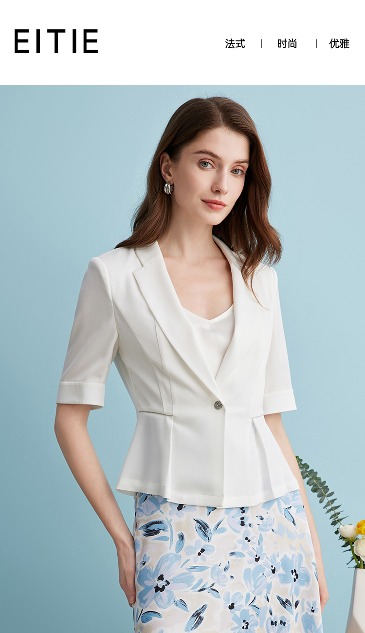 EITIE爱特爱气质干练修身薄款五分袖收腰西装短外套夏季新款B2403304