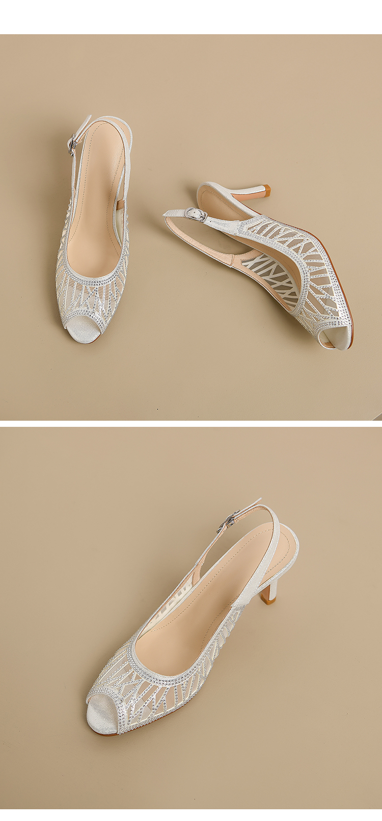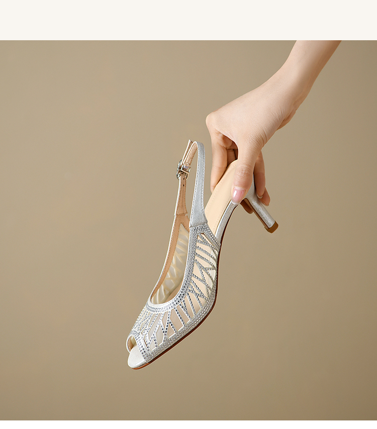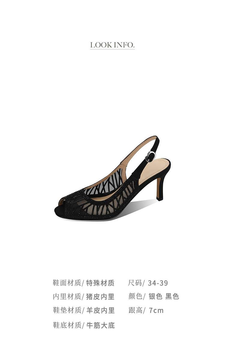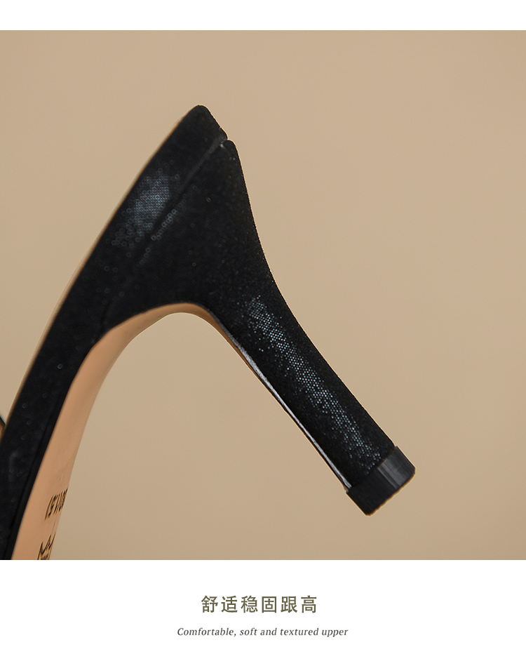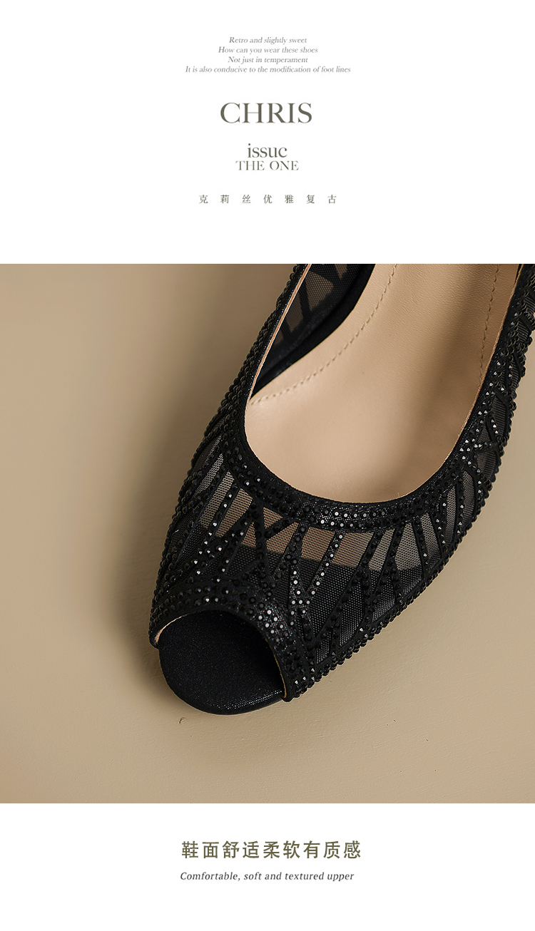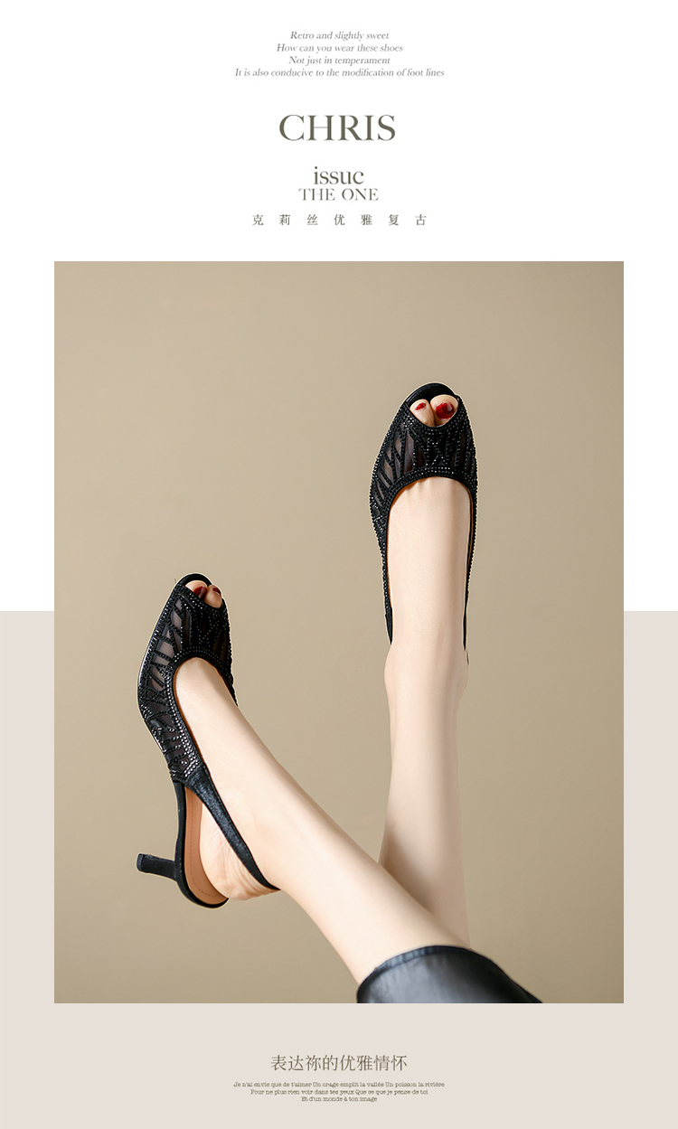 优雅百搭,鱼嘴特殊面料烫钻浅口高跟凉鞋QS-23001