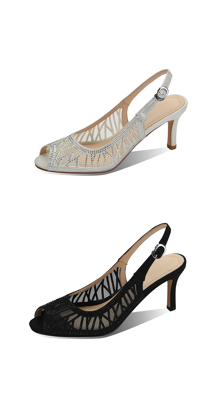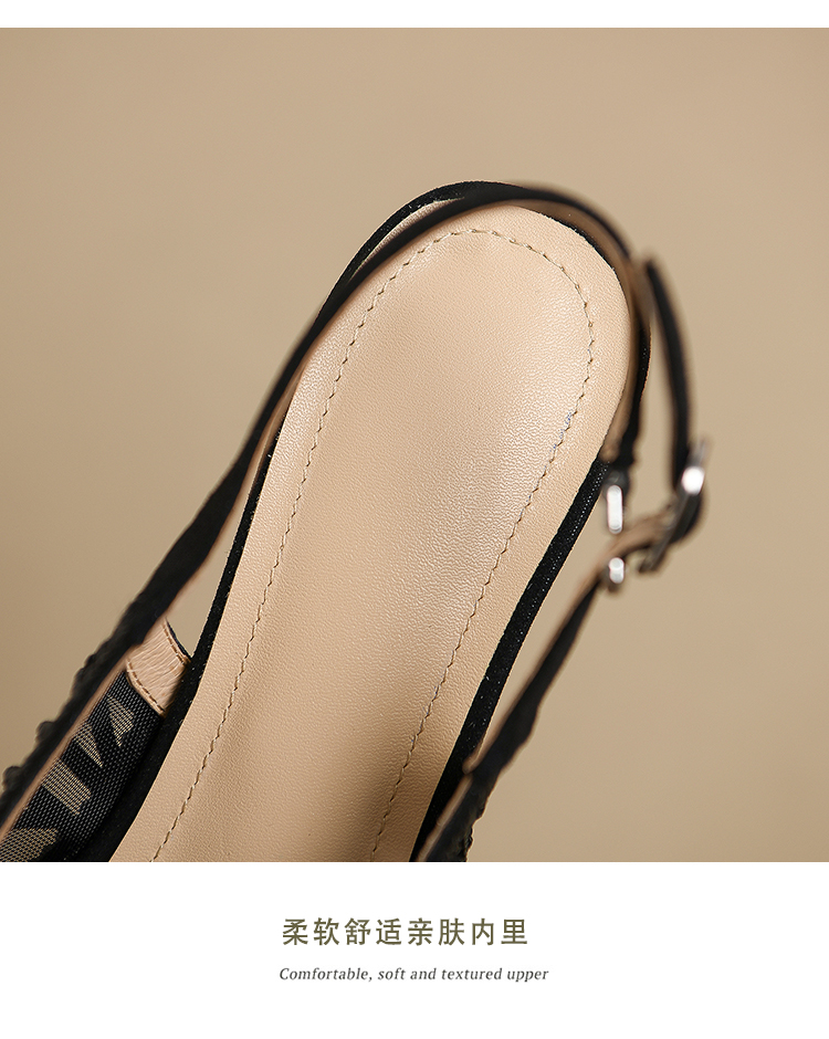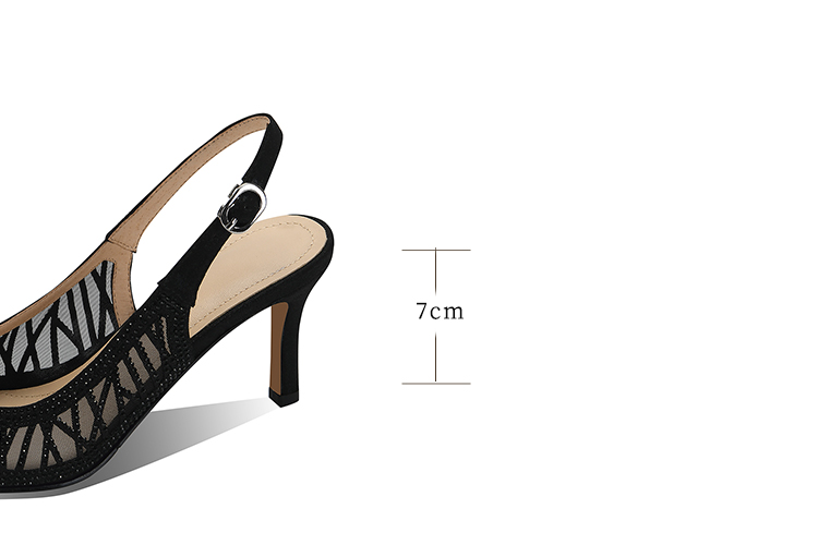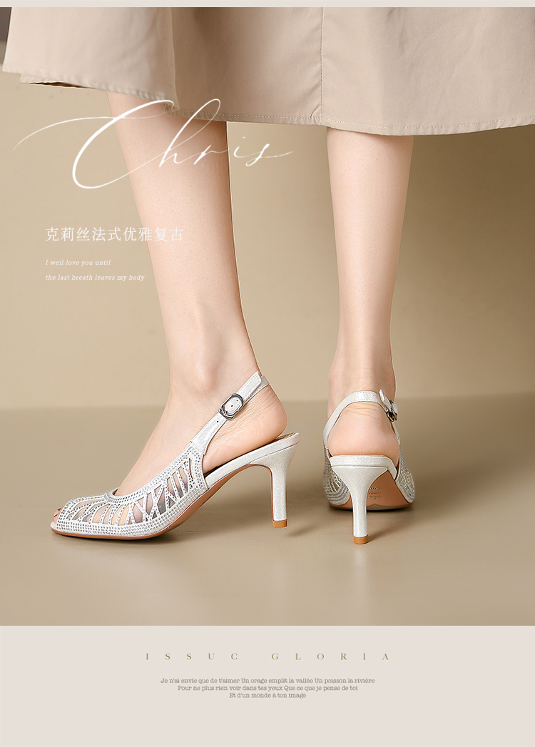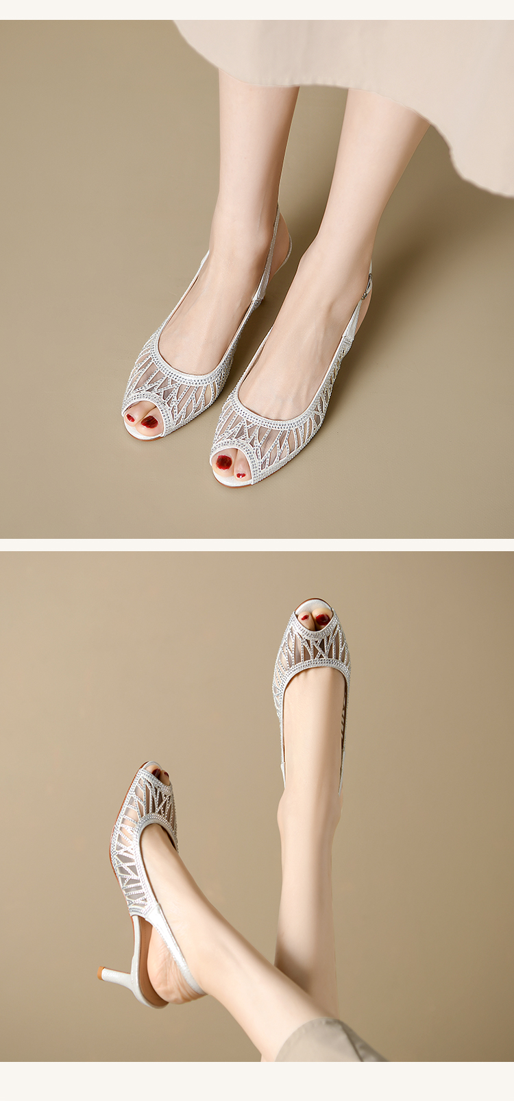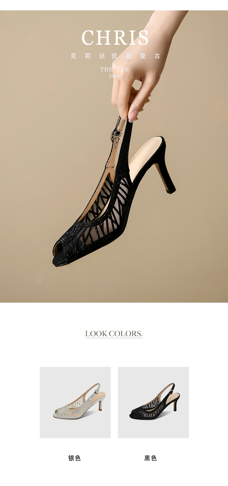 优雅百搭,鱼嘴特殊面料烫钻浅口高跟凉鞋QS-23001