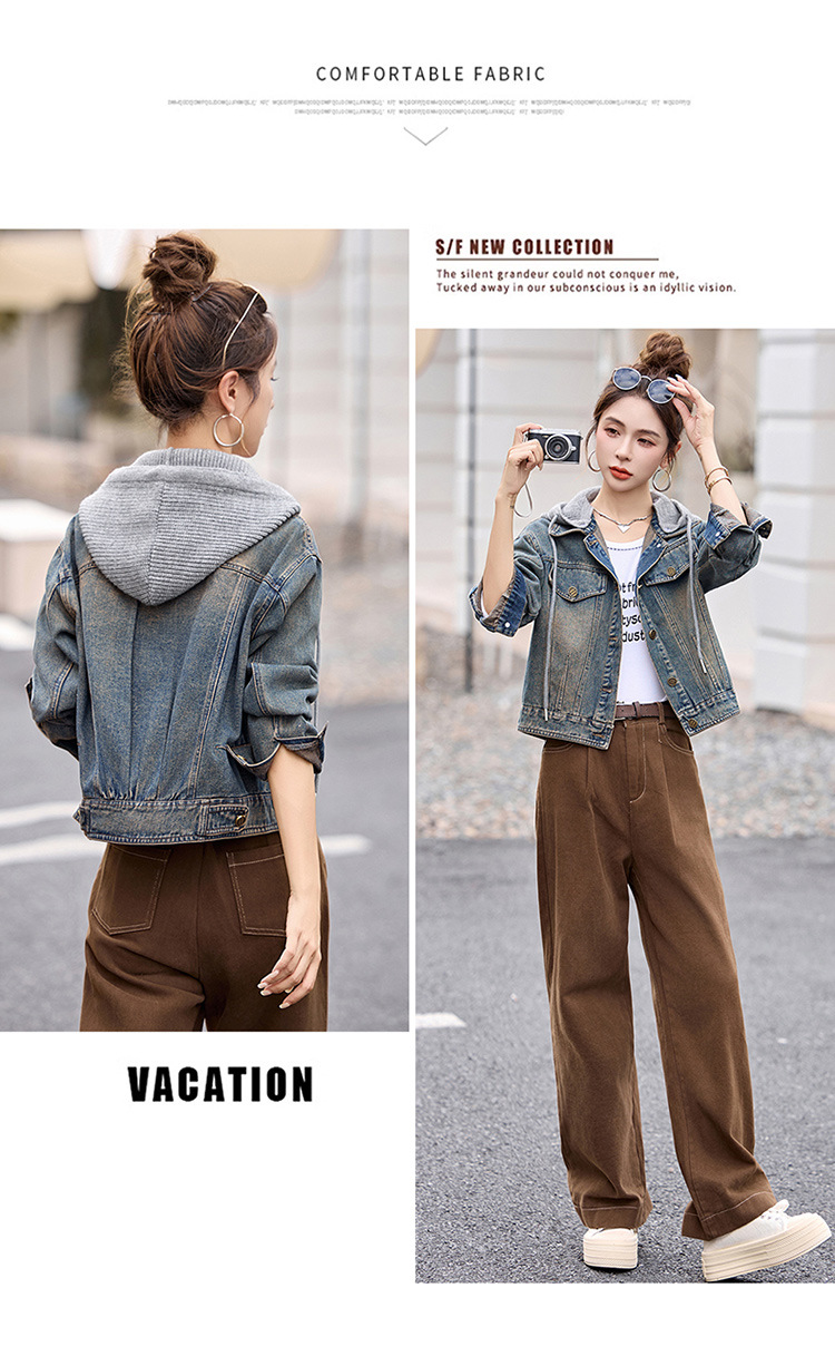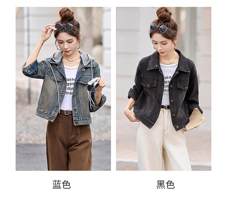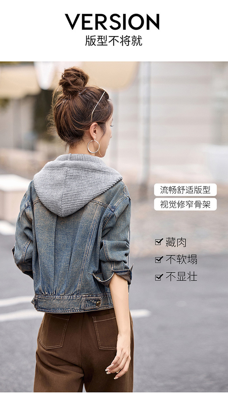 连帽牛仔外套新款小个子女生流行复古做旧上衣褂子短款XGJ5816 商品图3