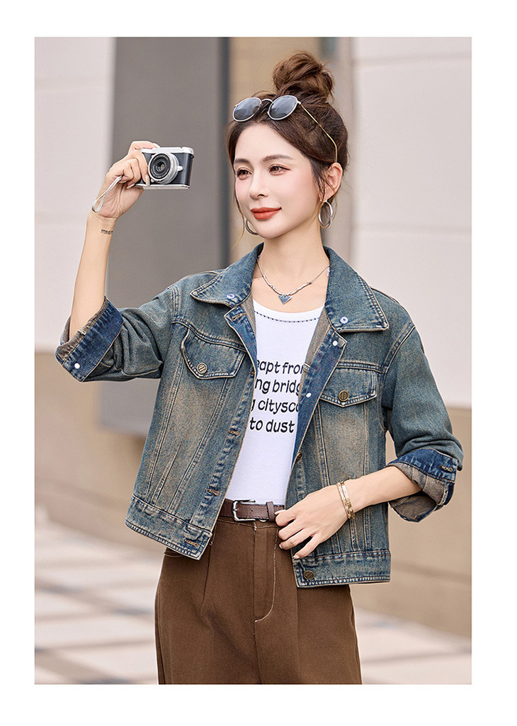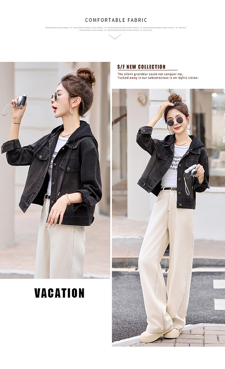 连帽牛仔外套新款小个子女生流行复古做旧上衣褂子短款XGJ5816 商品图4