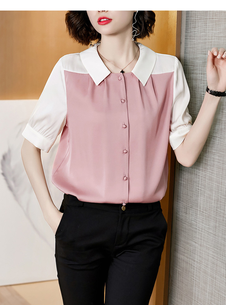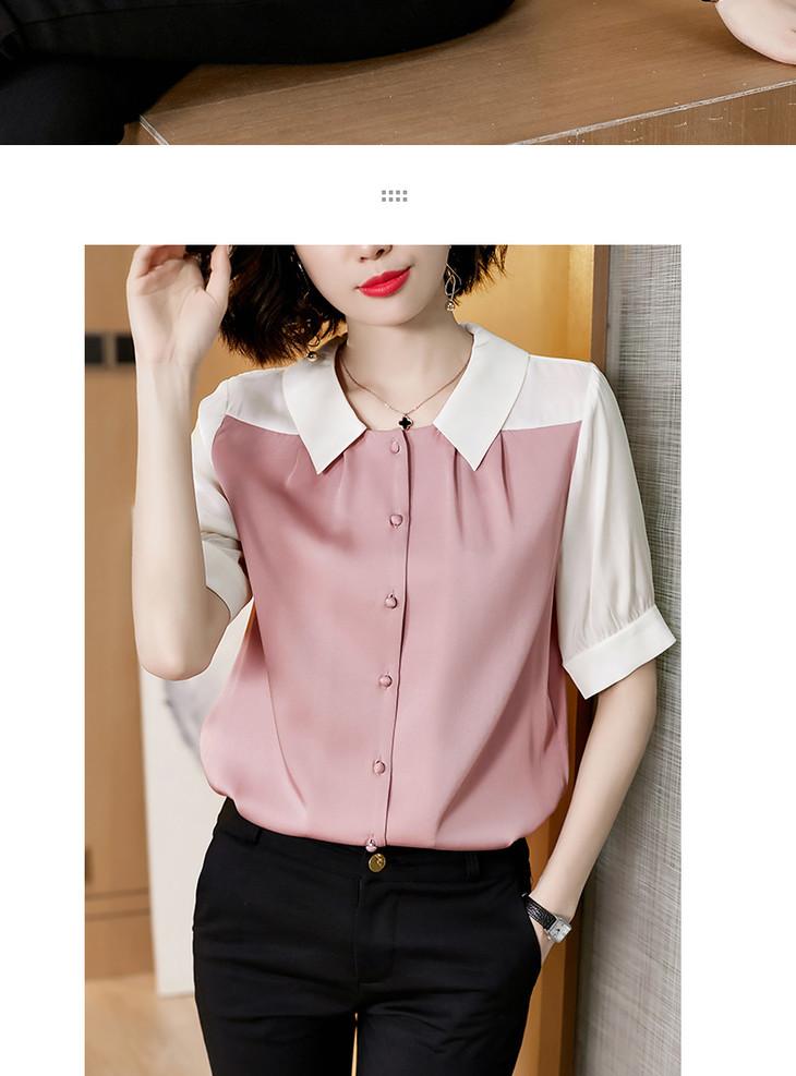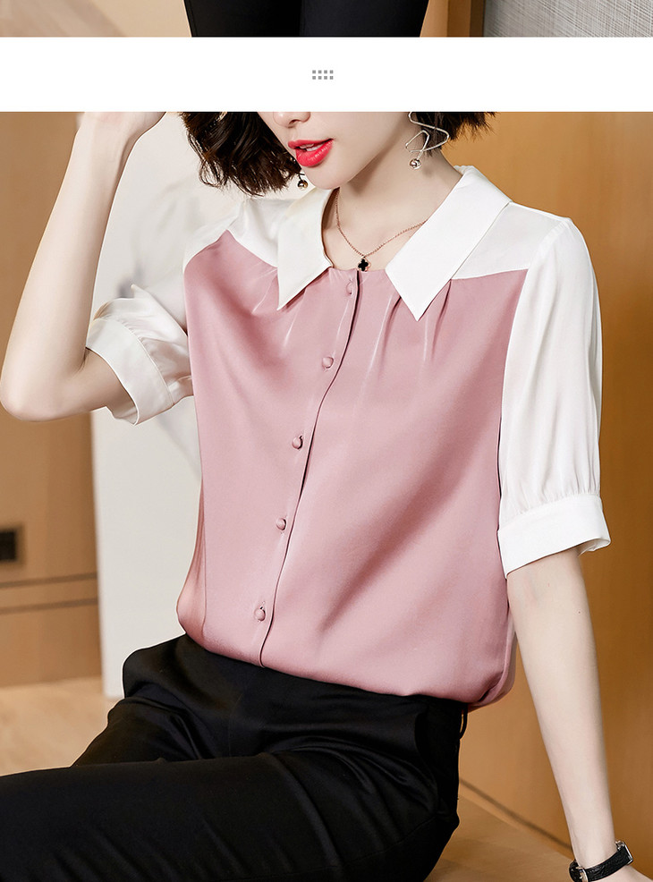 GG 79627新款时尚拼色宽松桑蚕丝上衣