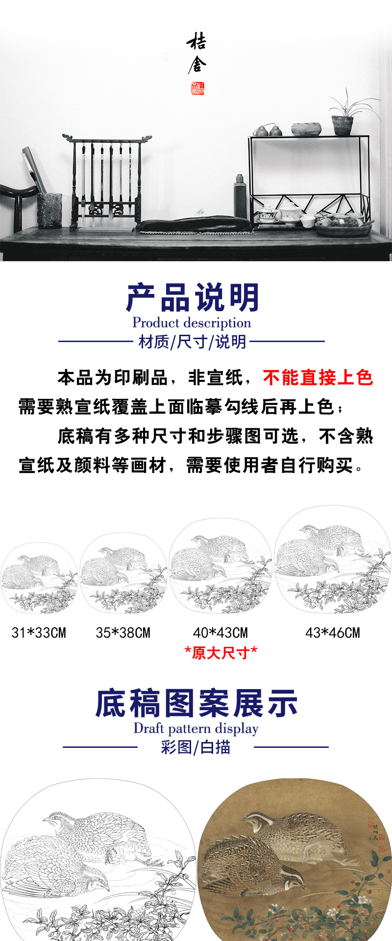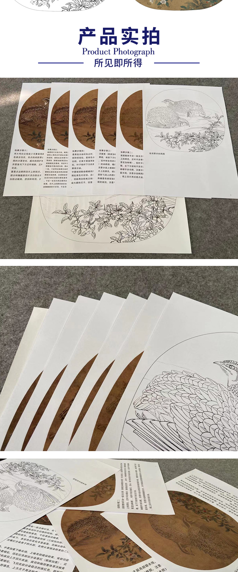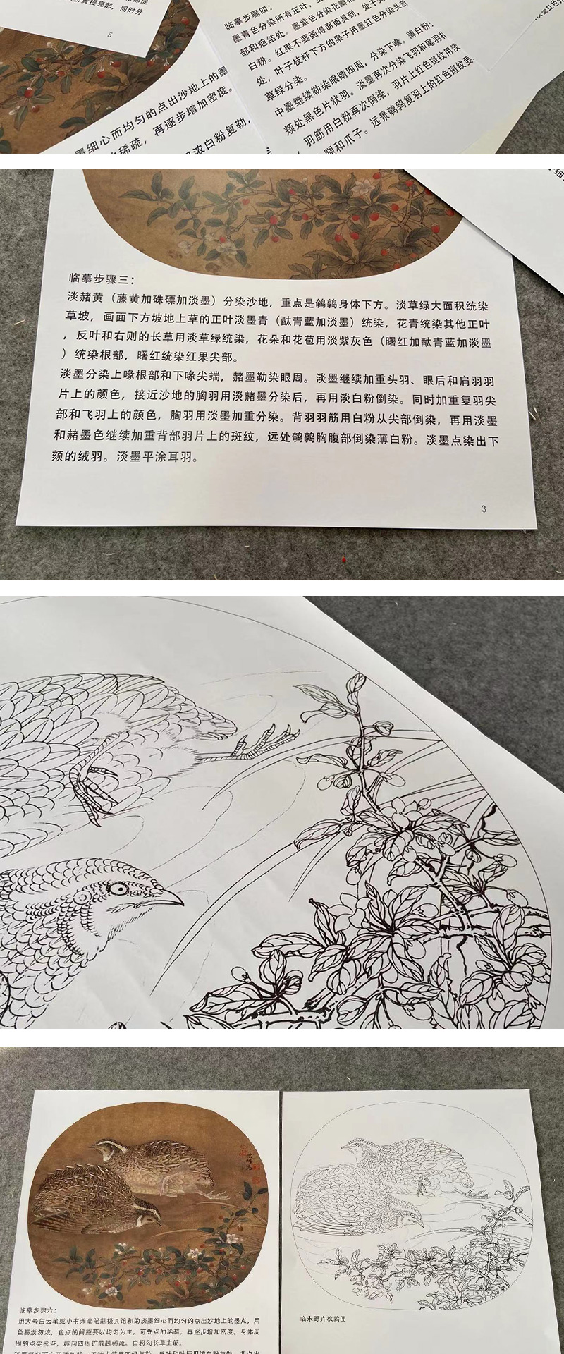 【有步骤、大彩图】李晓明工笔画白描底稿小品《临宋野卉秋鹑图》鹌鹑初学者临摹花鸟线稿KC09