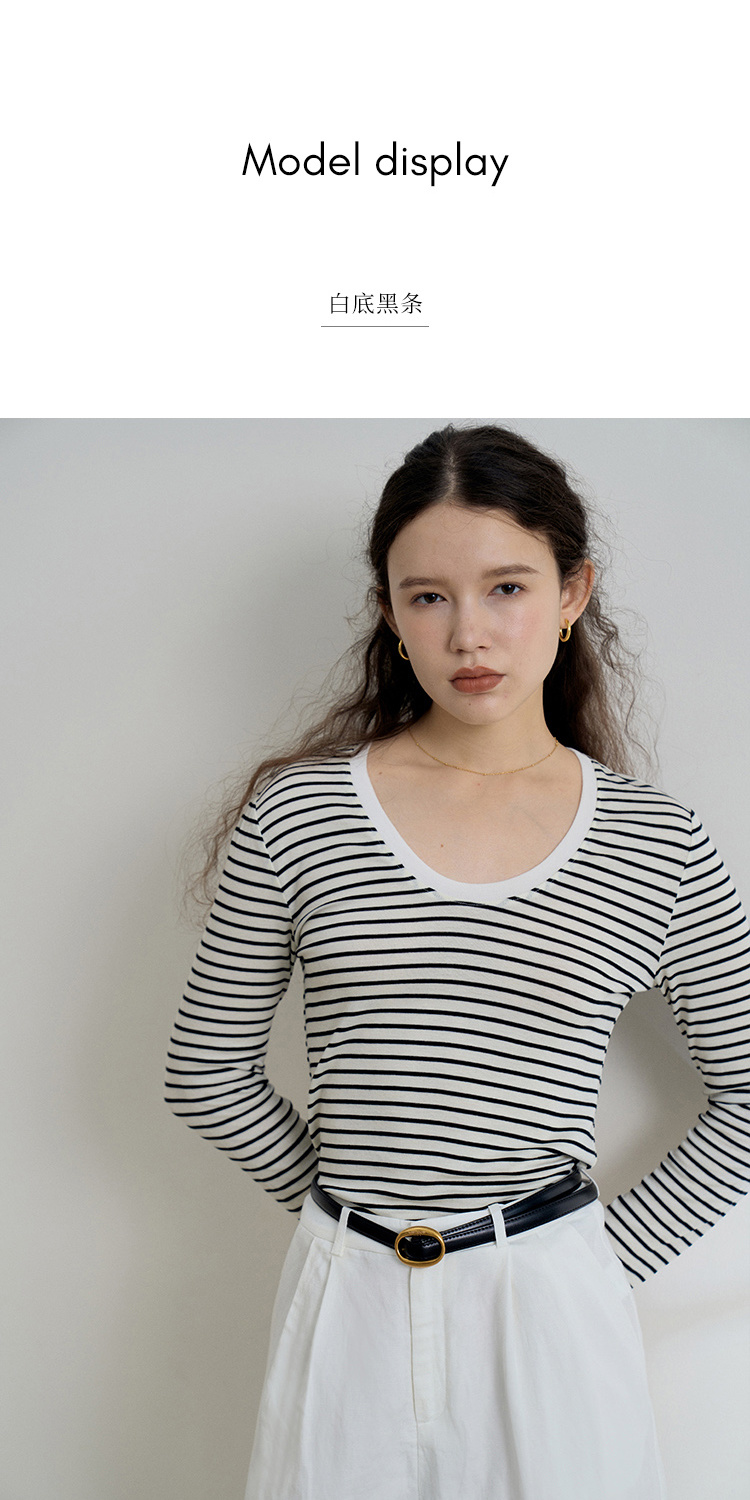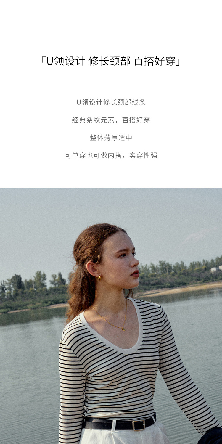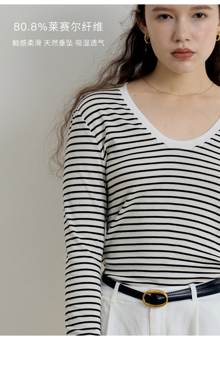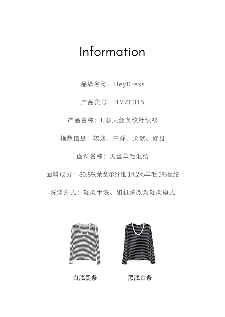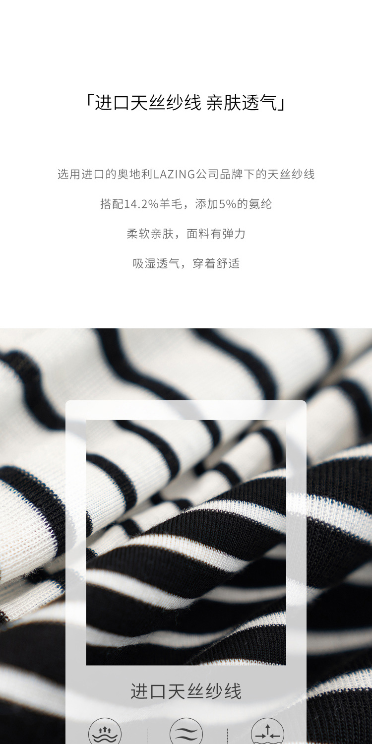 HeyDress天丝羊毛针织衫春秋撞色条纹设计百搭上衣弹力修身内搭