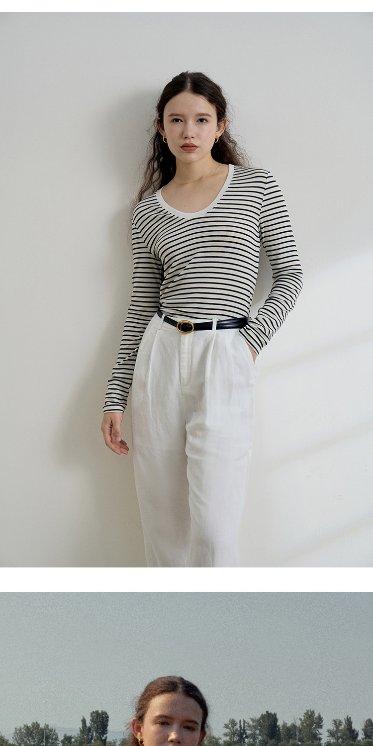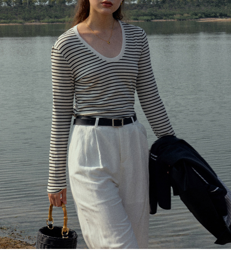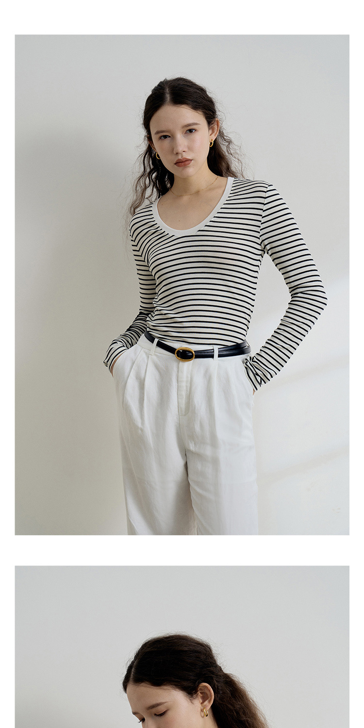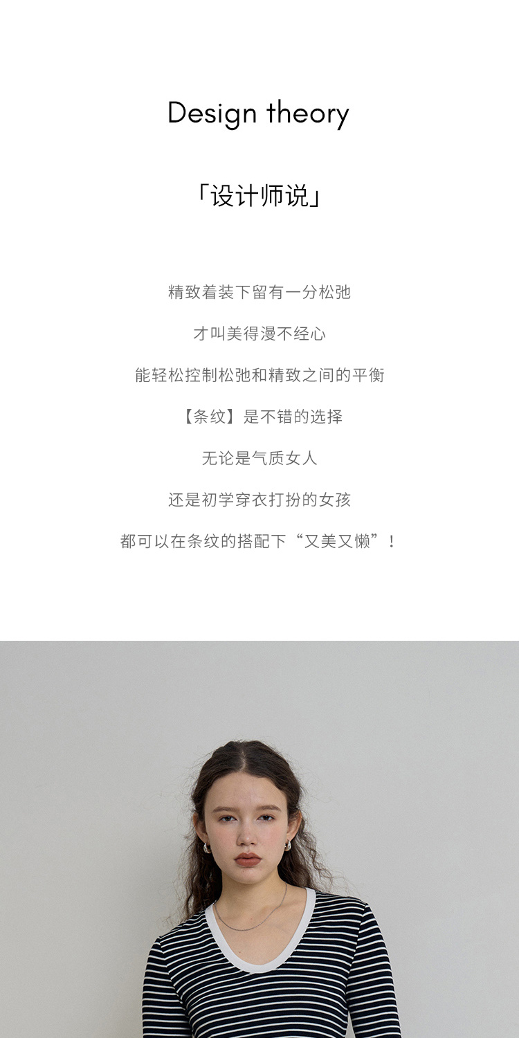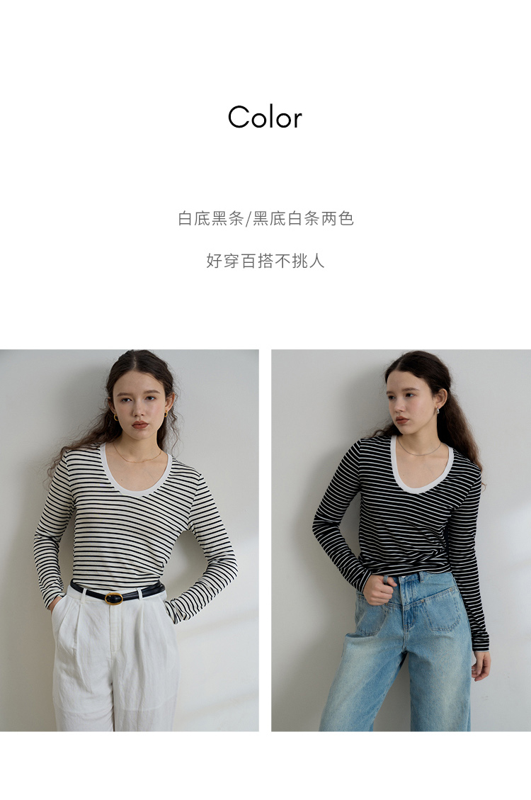 HeyDress天丝羊毛针织衫春秋撞色条纹设计百搭上衣弹力修身内搭