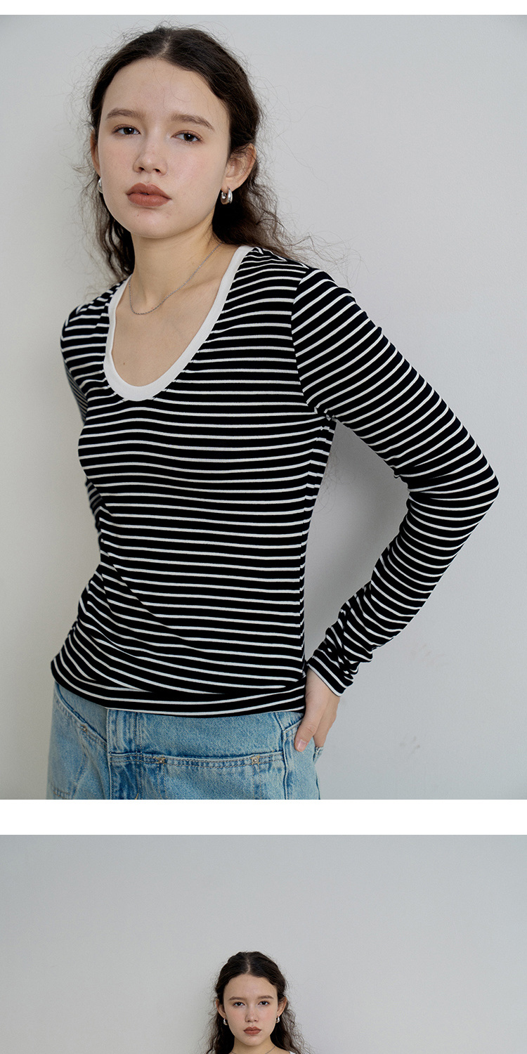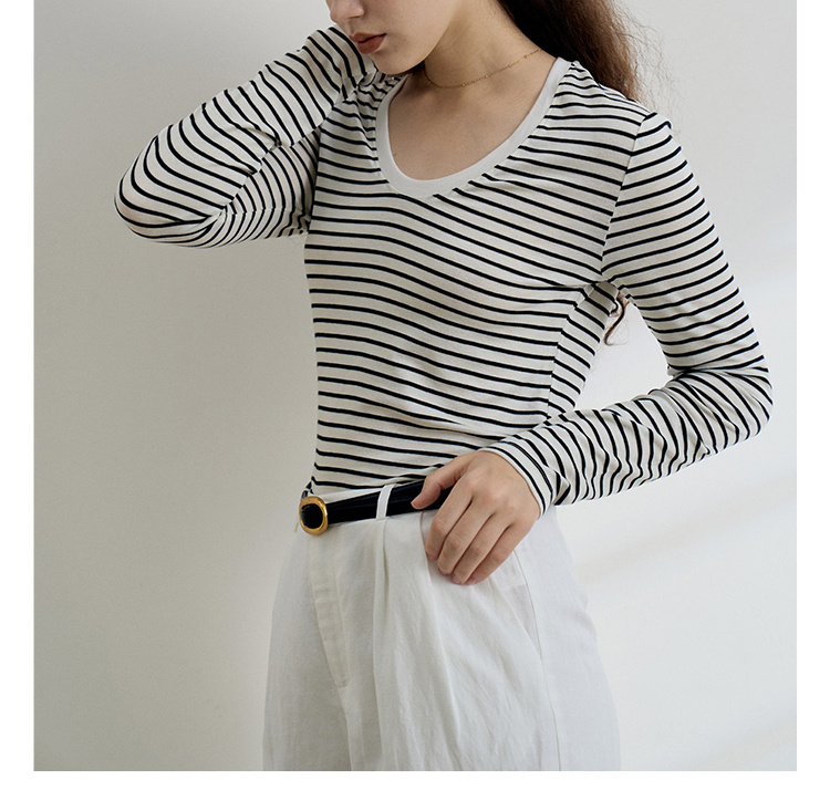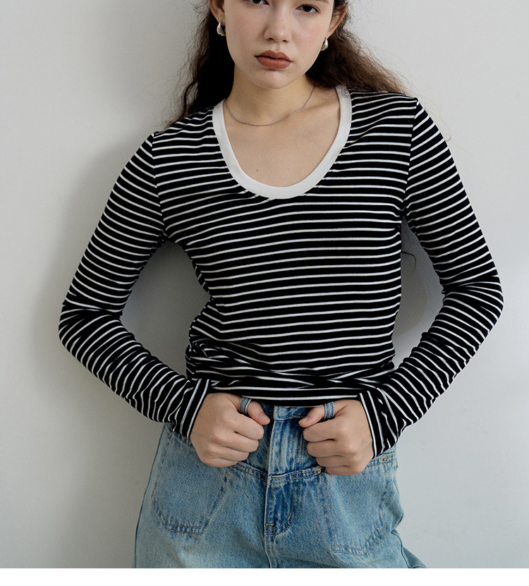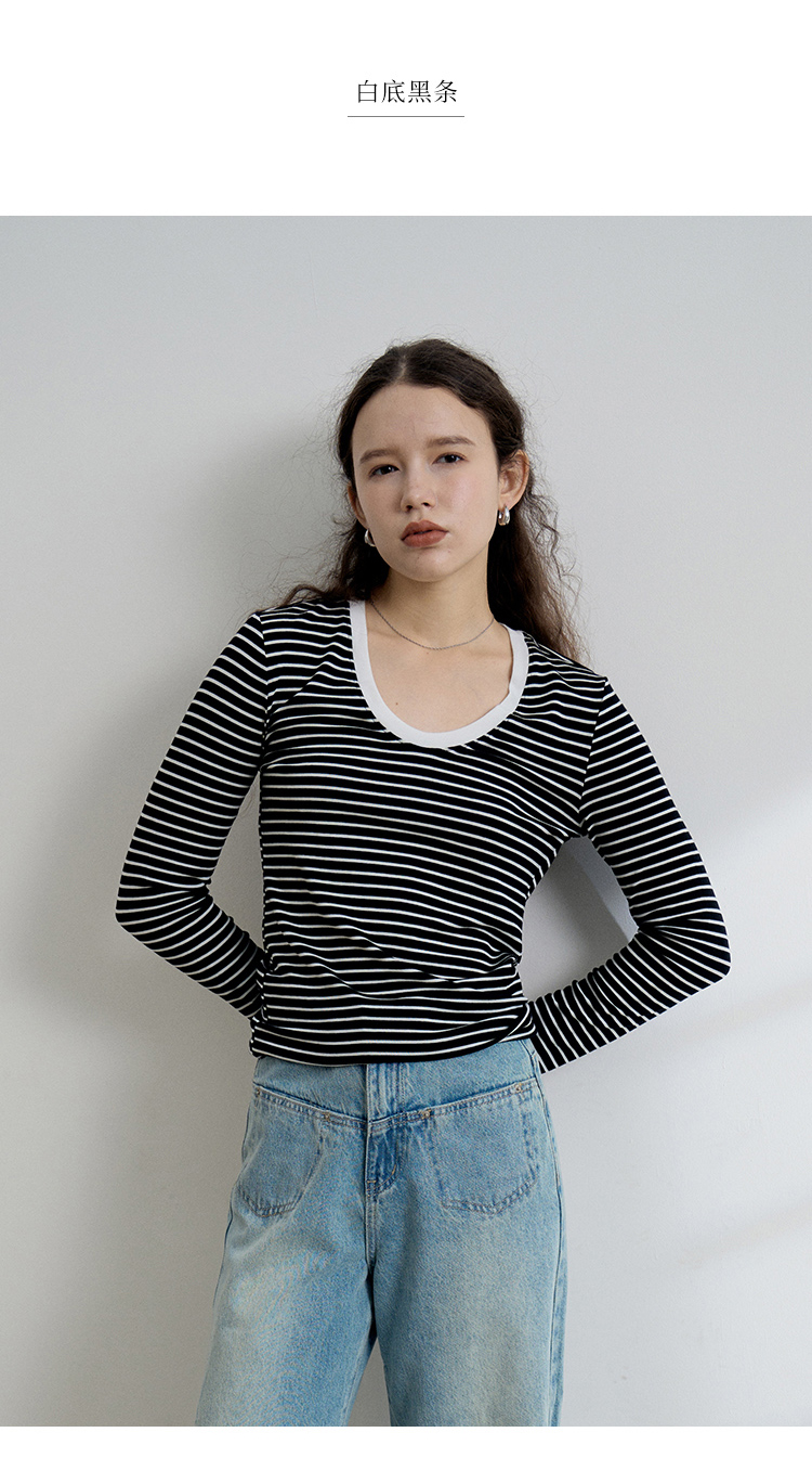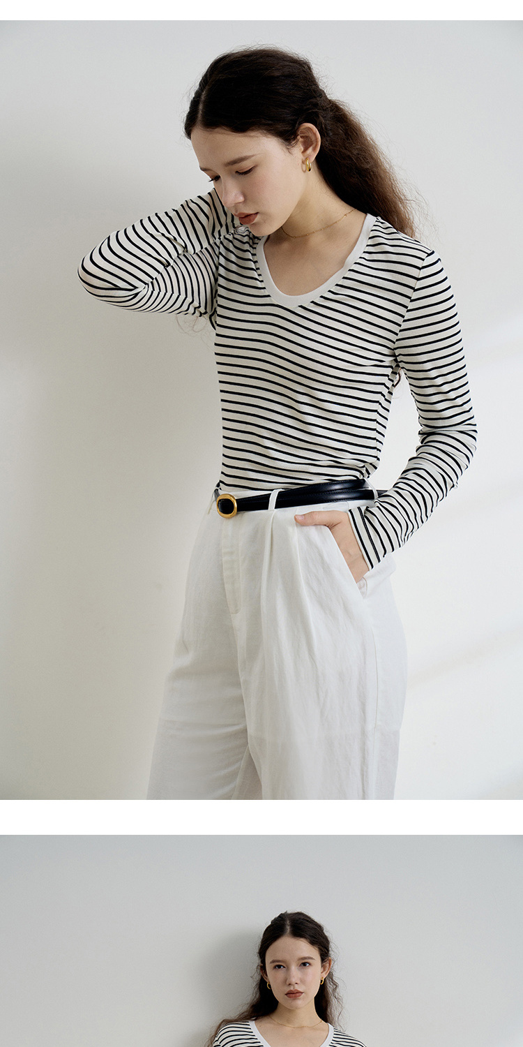 HeyDress天丝羊毛针织衫春秋撞色条纹设计百搭上衣弹力修身内搭