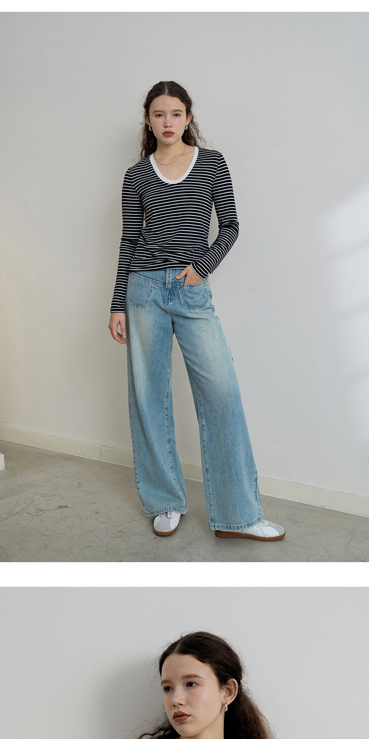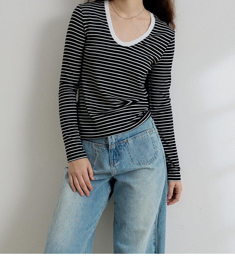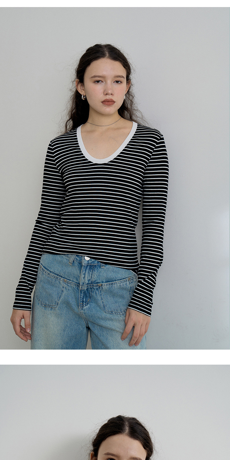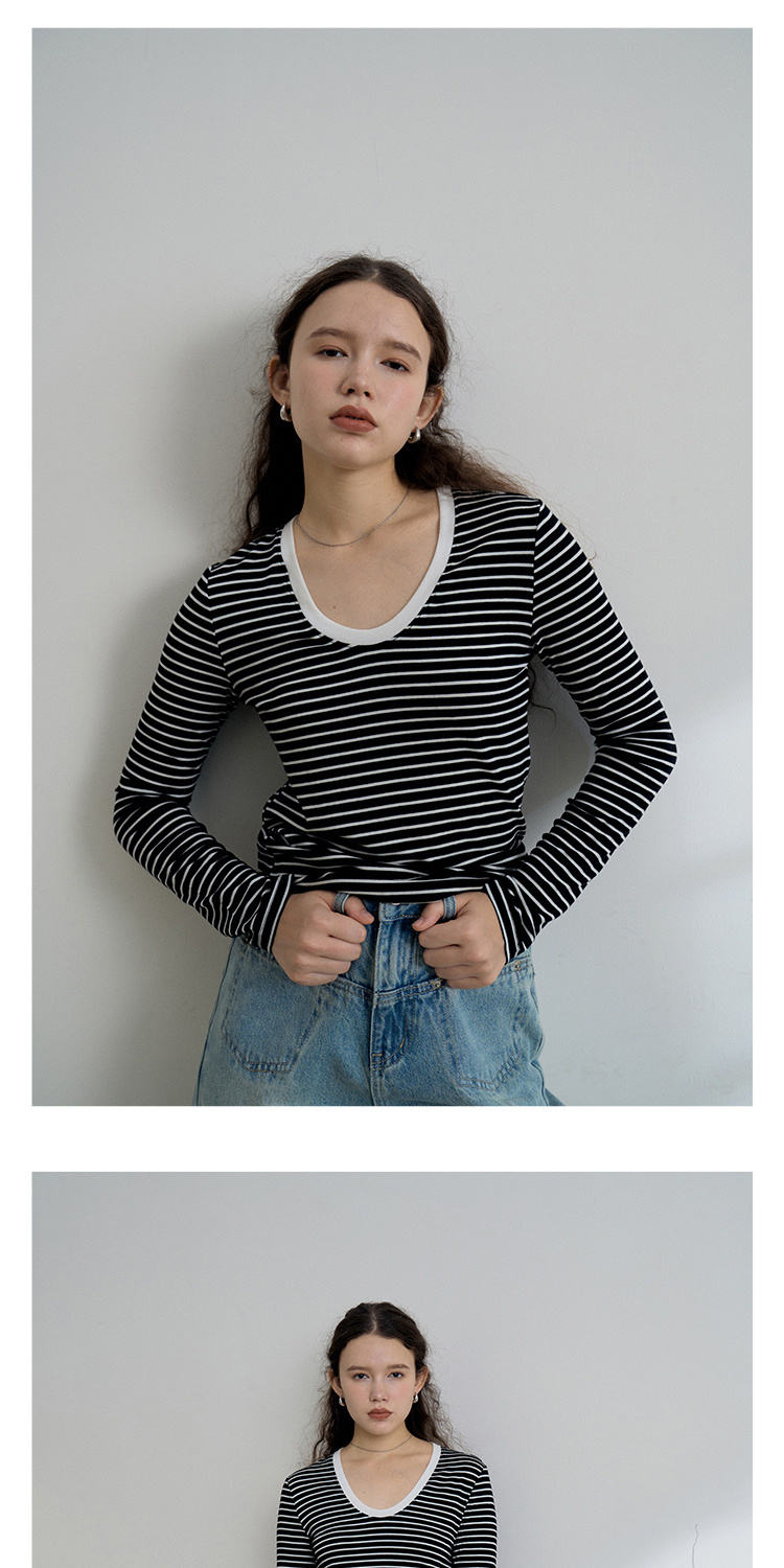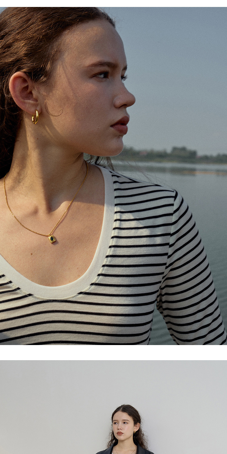 HeyDress天丝羊毛针织衫春秋撞色条纹设计百搭上衣弹力修身内搭