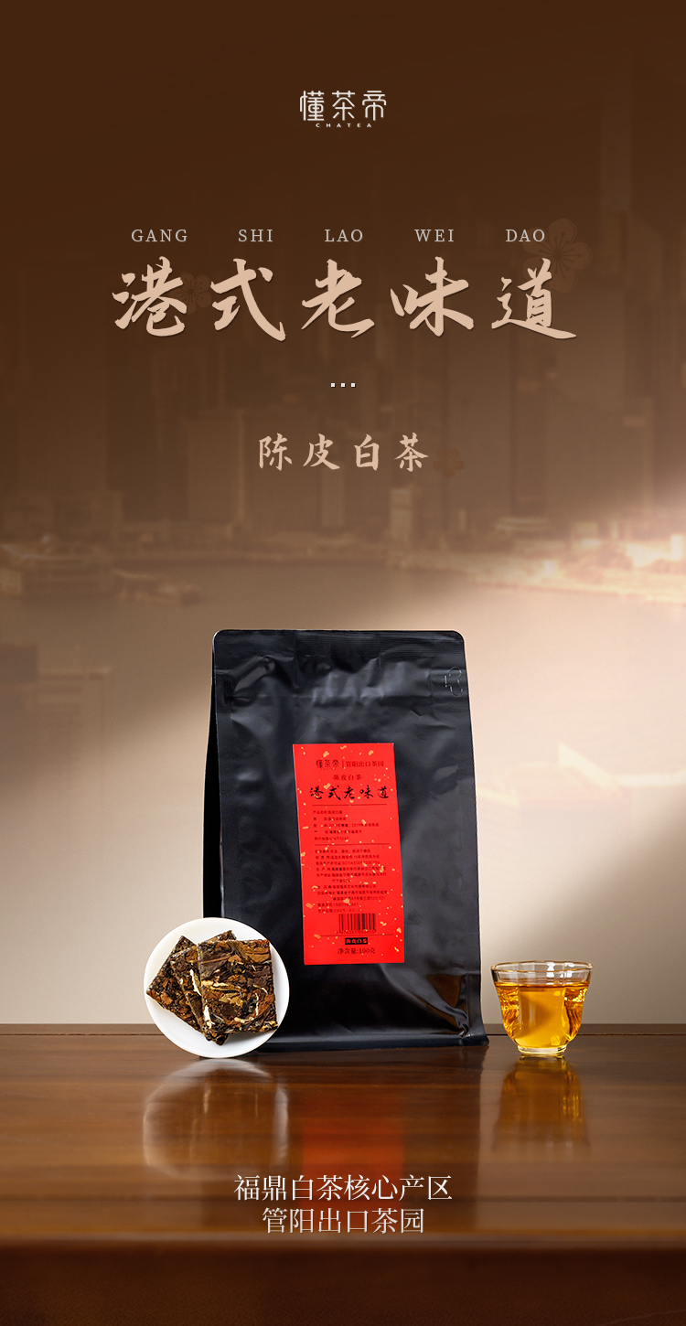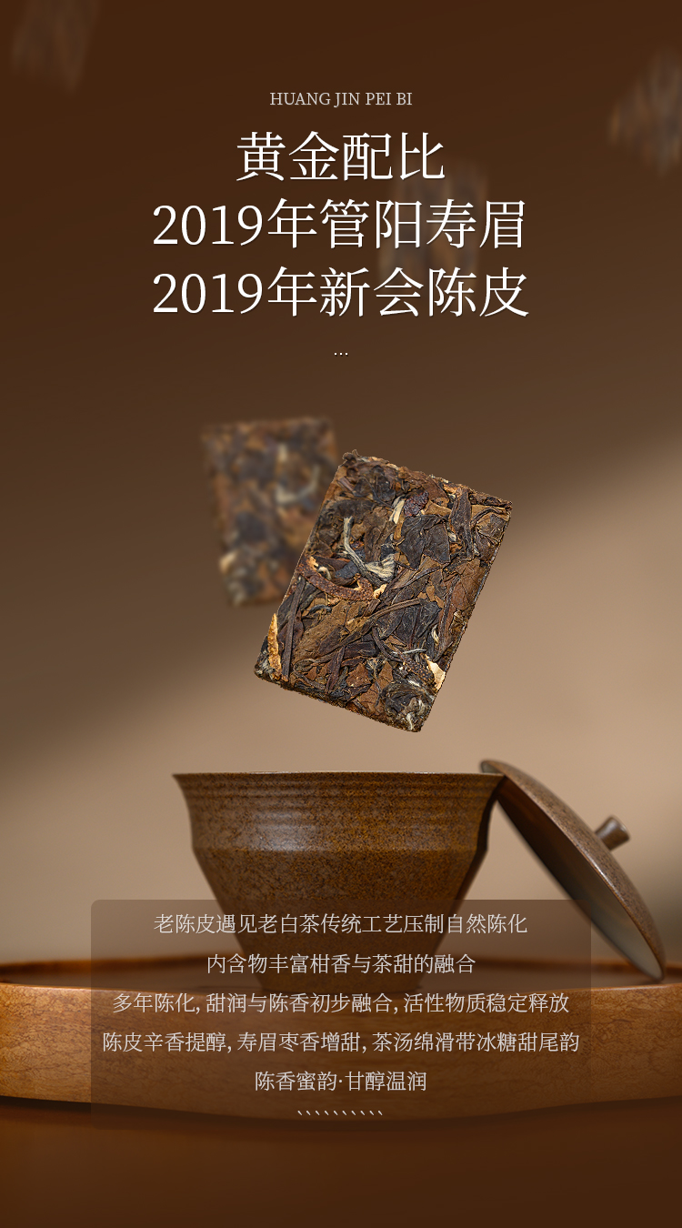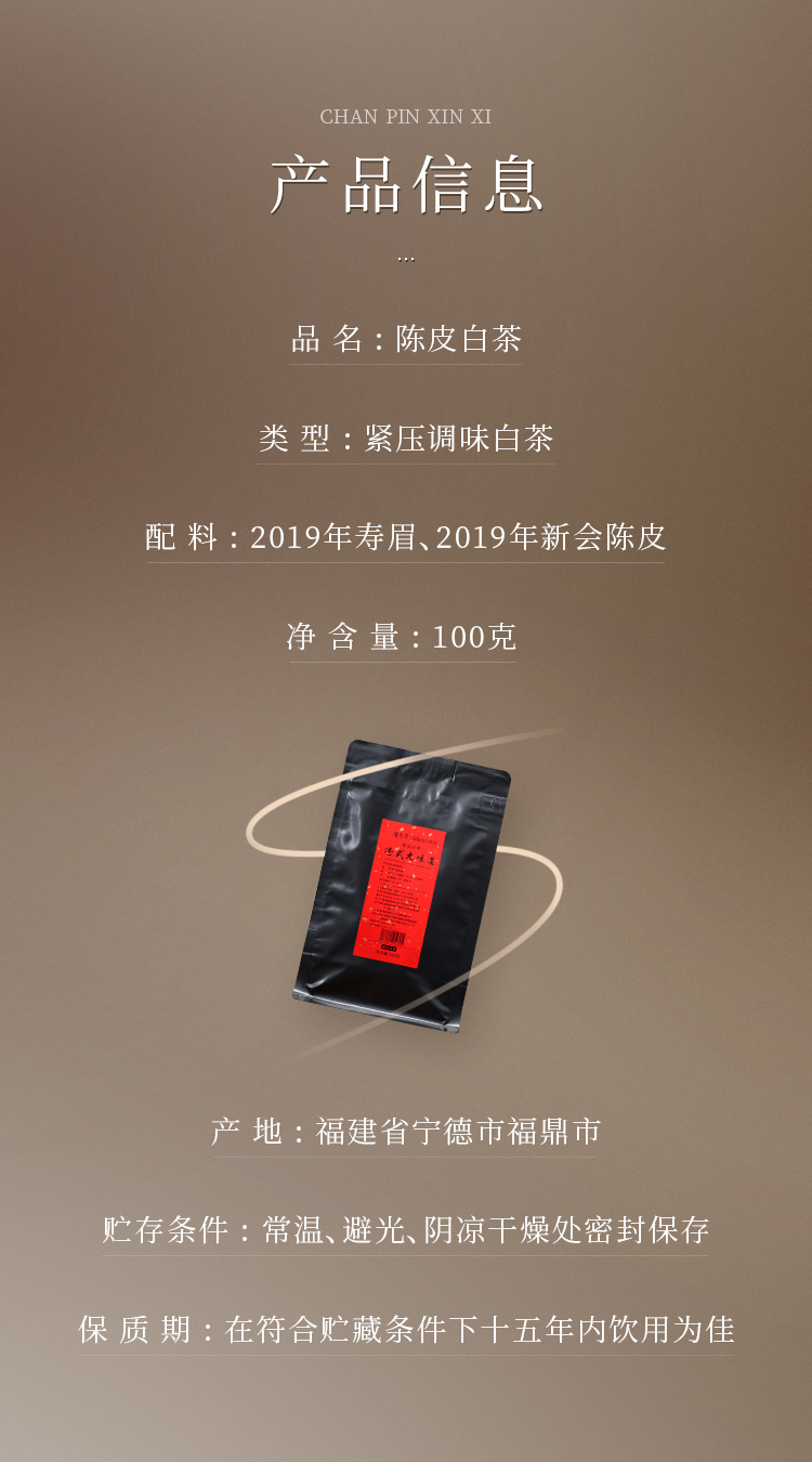懂茶帝陈皮白茶港式陈皮白茶2019年紧压陈皮+老寿眉福鼎白茶100g