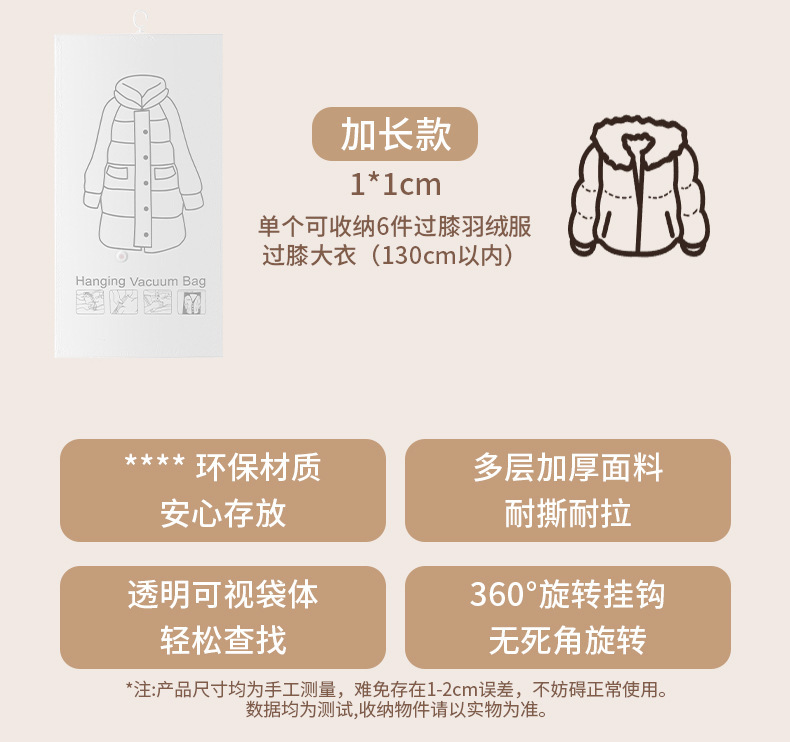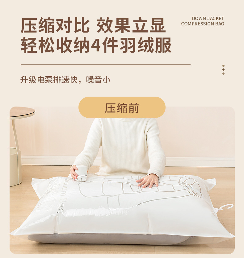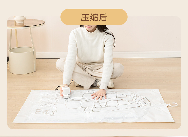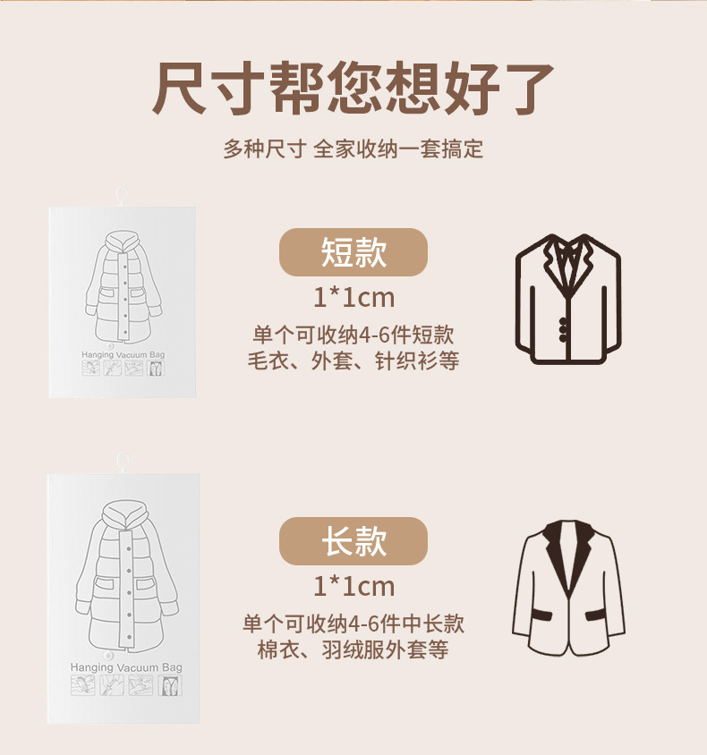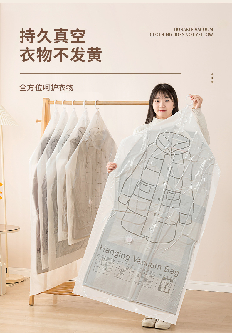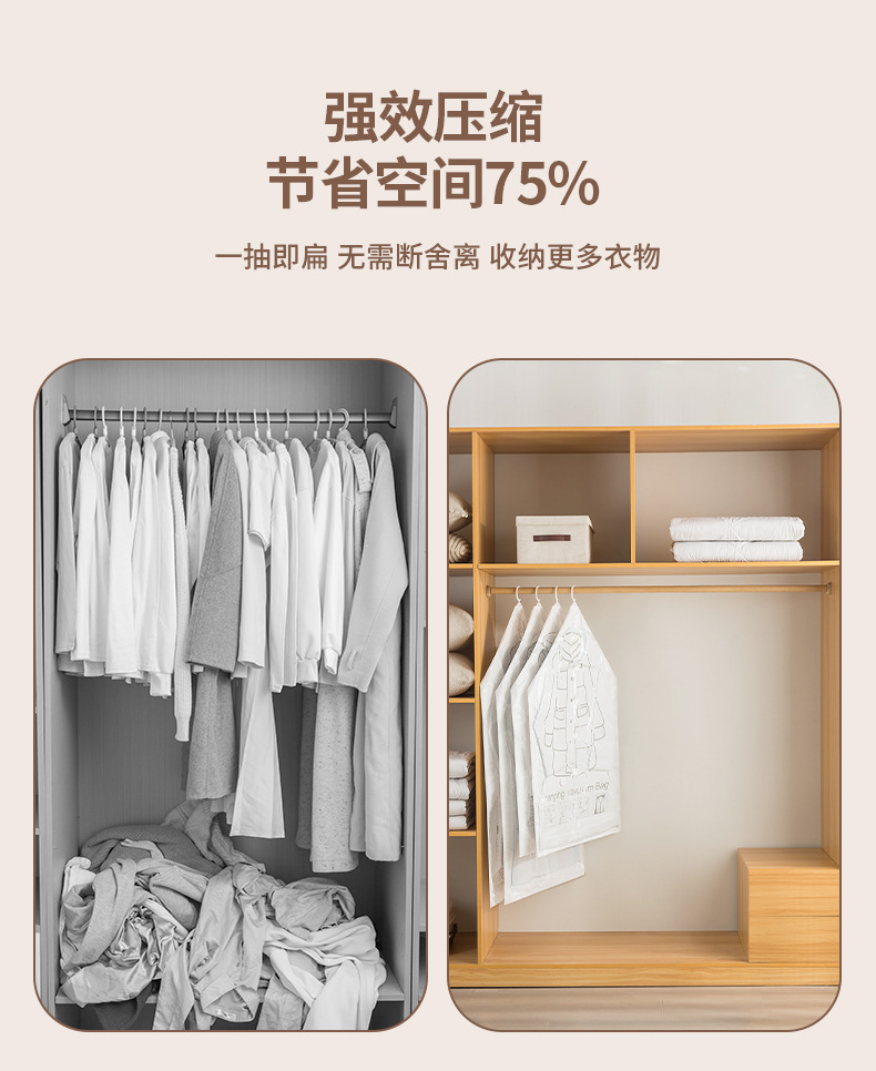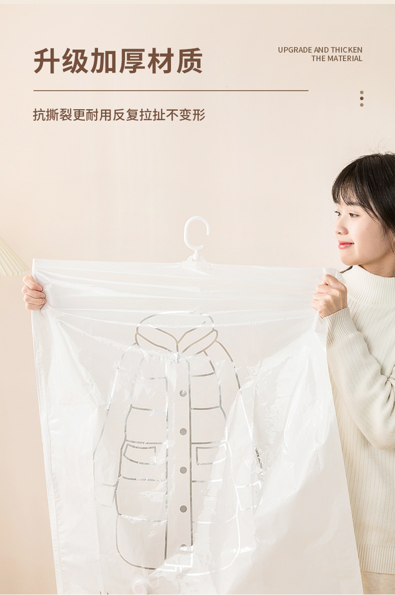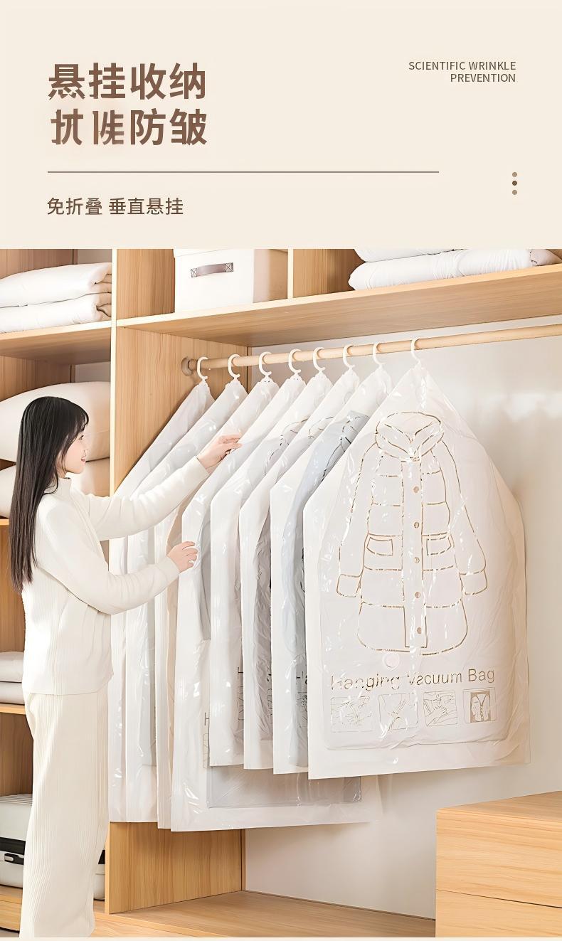 【一抽即扁❗轻松收纳】悬挂式真空压缩袋家用衣物羽绒服收纳袋抽气侧拉真空挂衣袋。rh