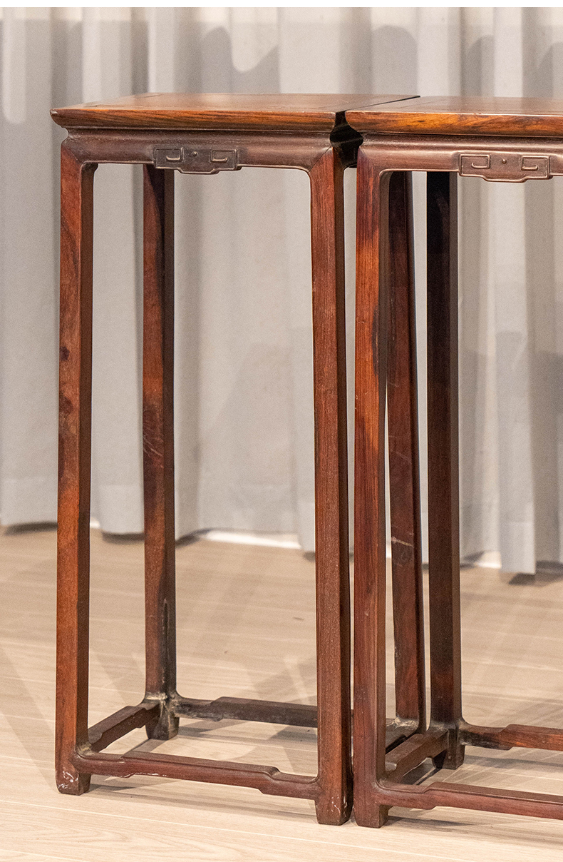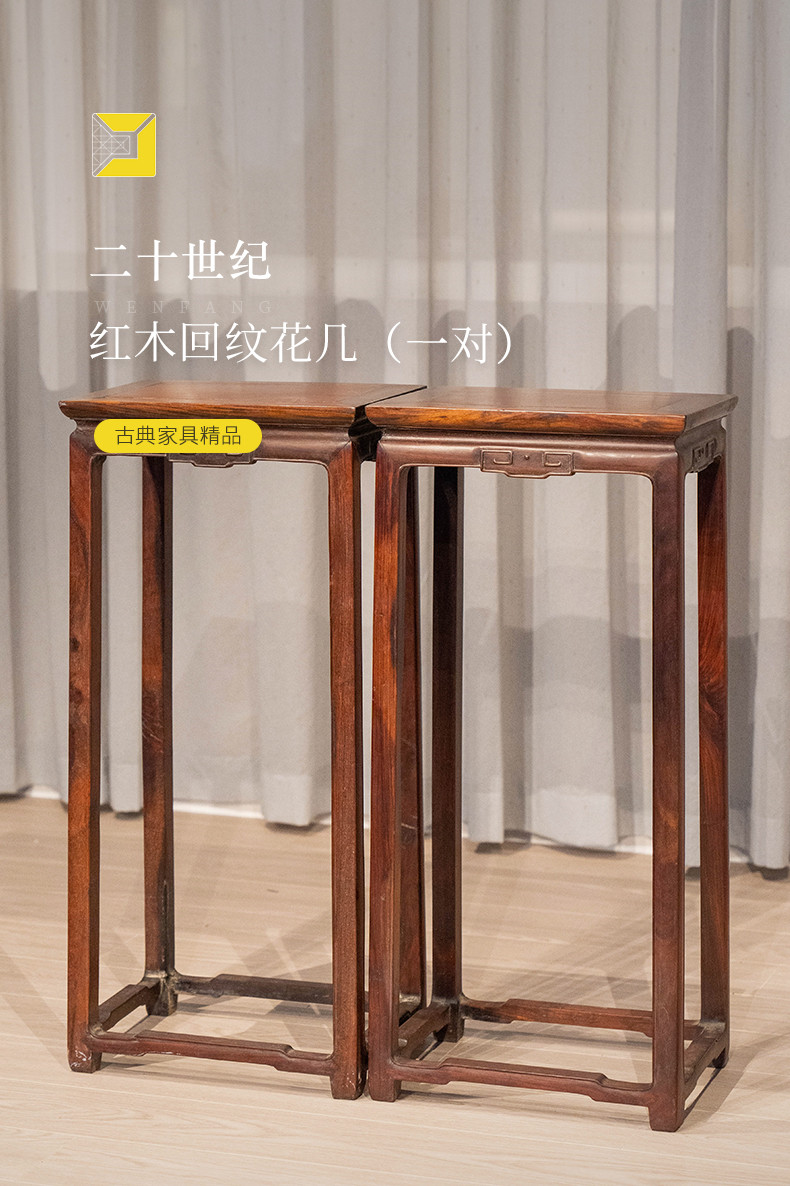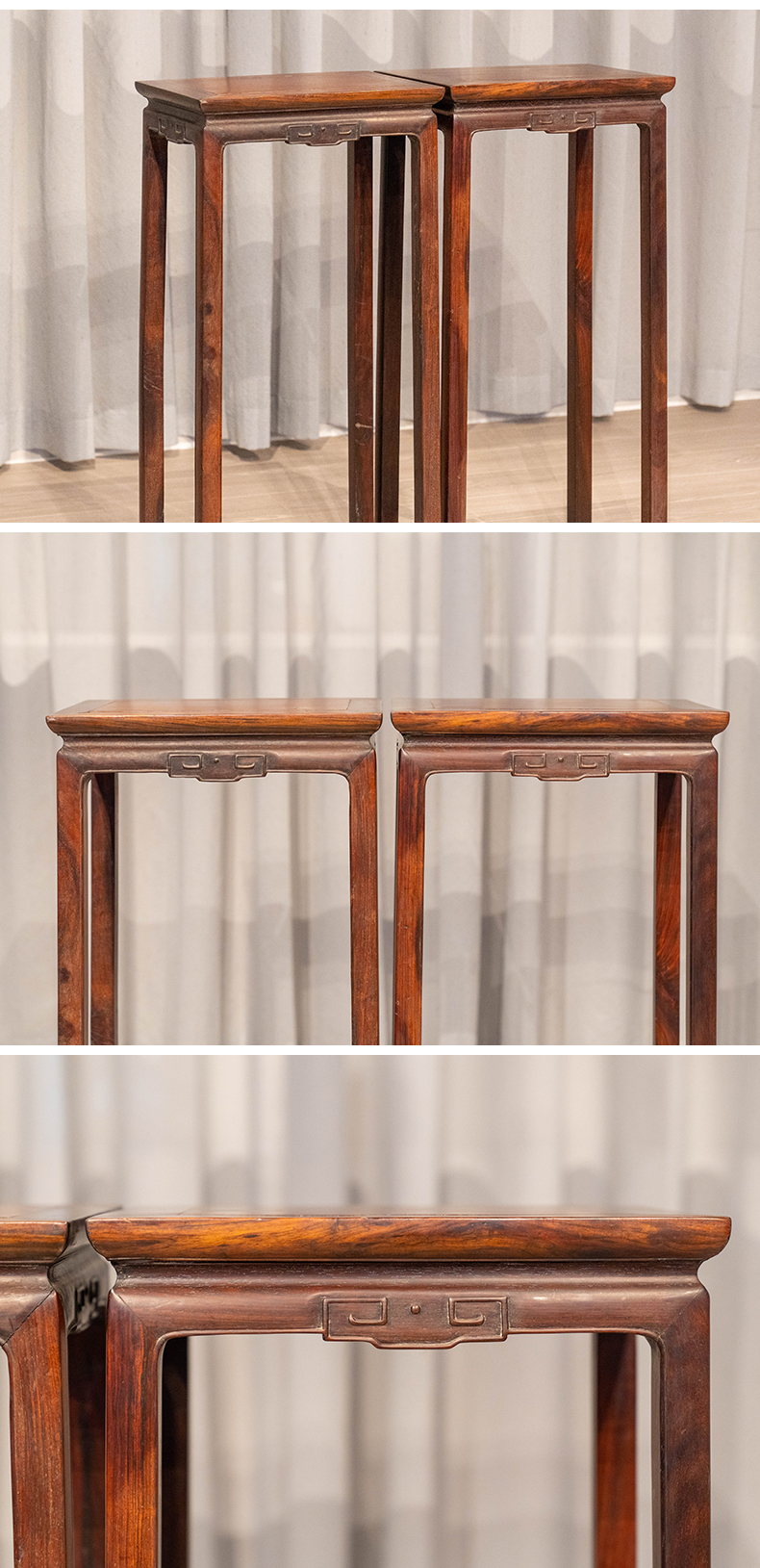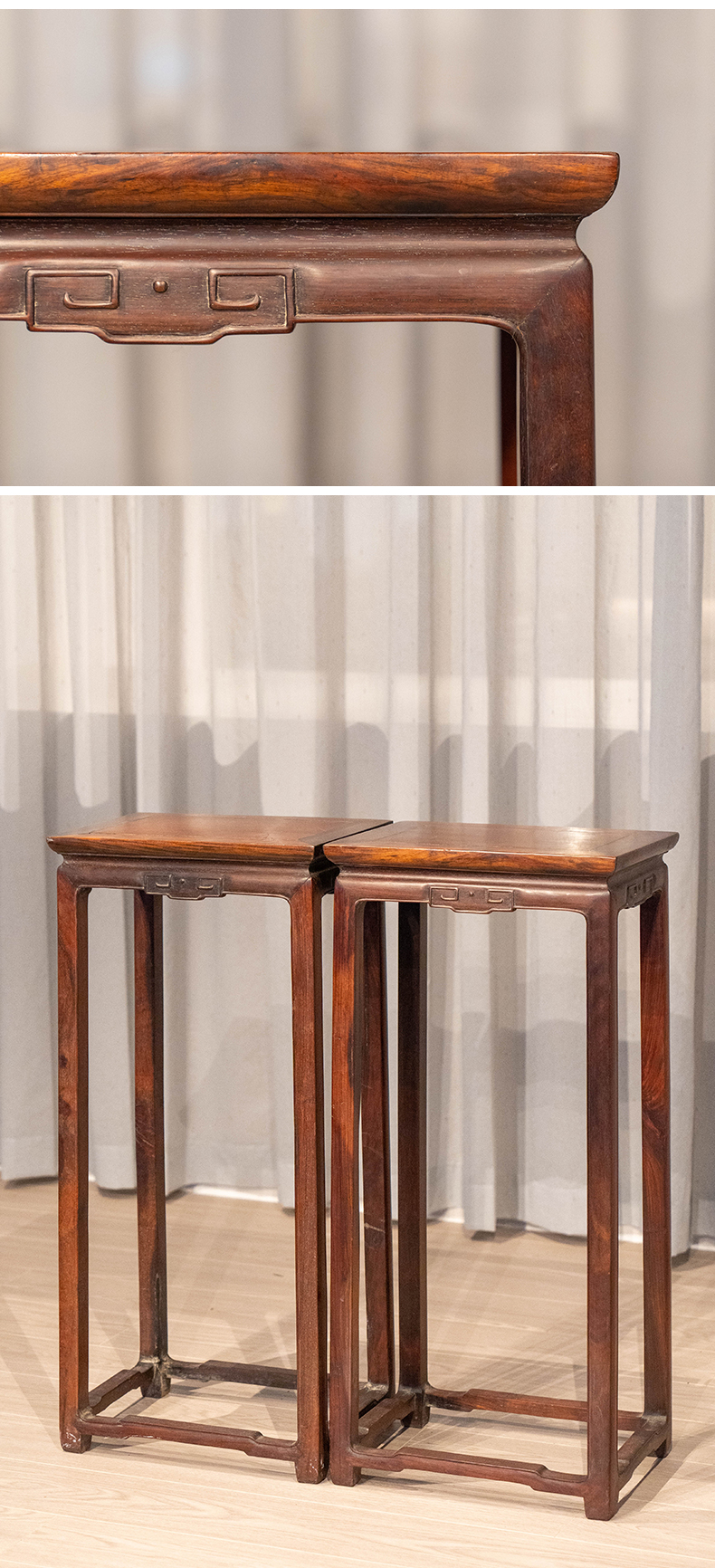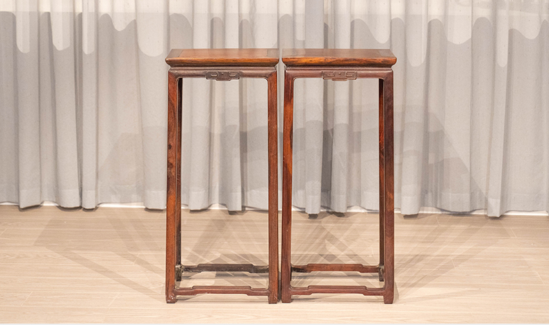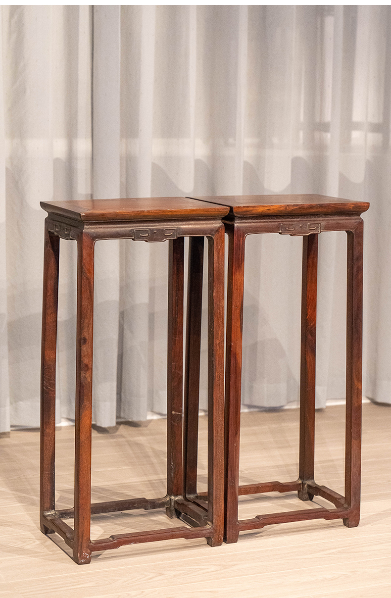 二十世纪 黄花梨卷草纹三弯腿带托泥方香几(一对)