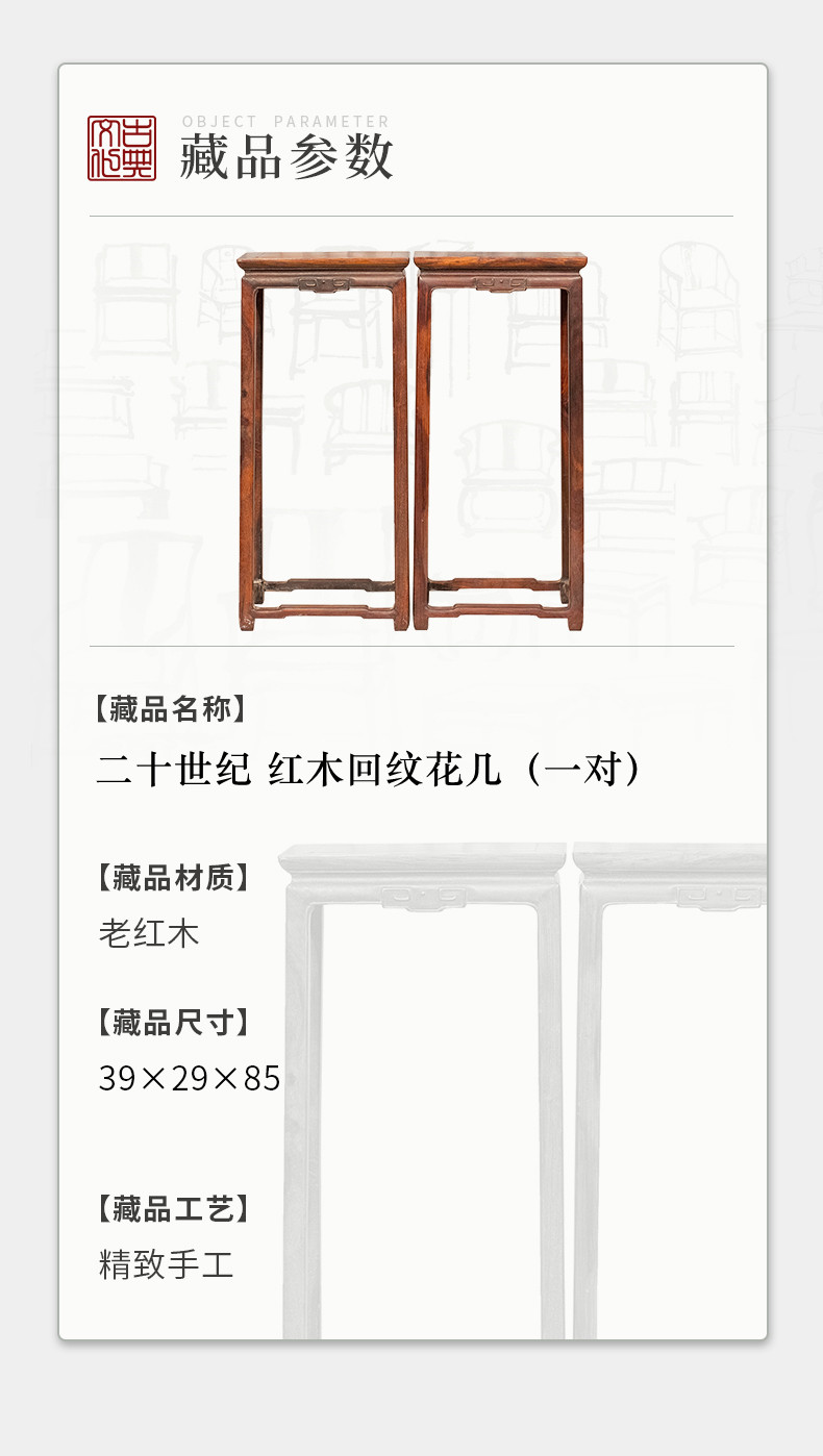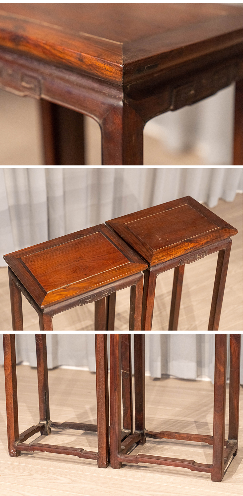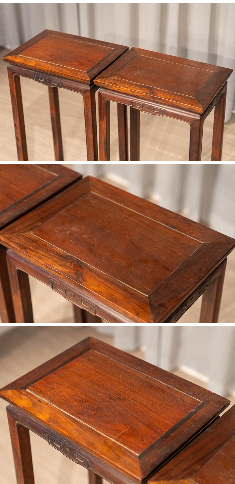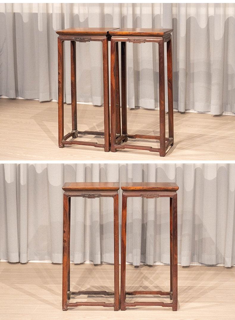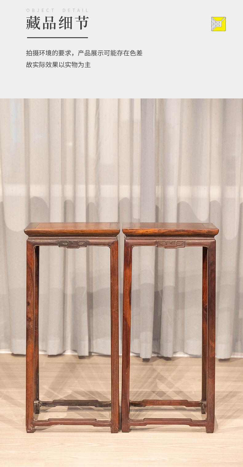 二十世纪 黄花梨卷草纹三弯腿带托泥方香几(一对)
