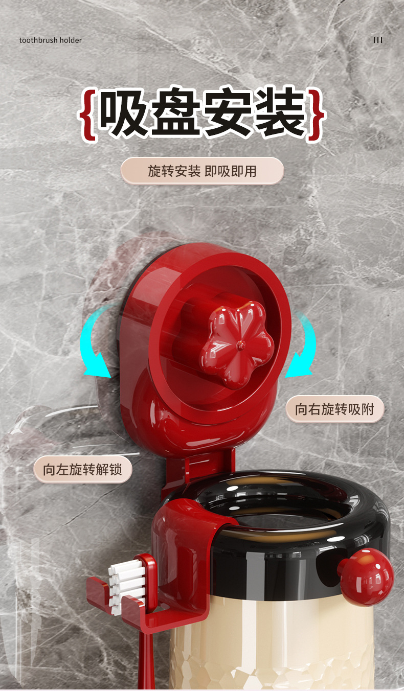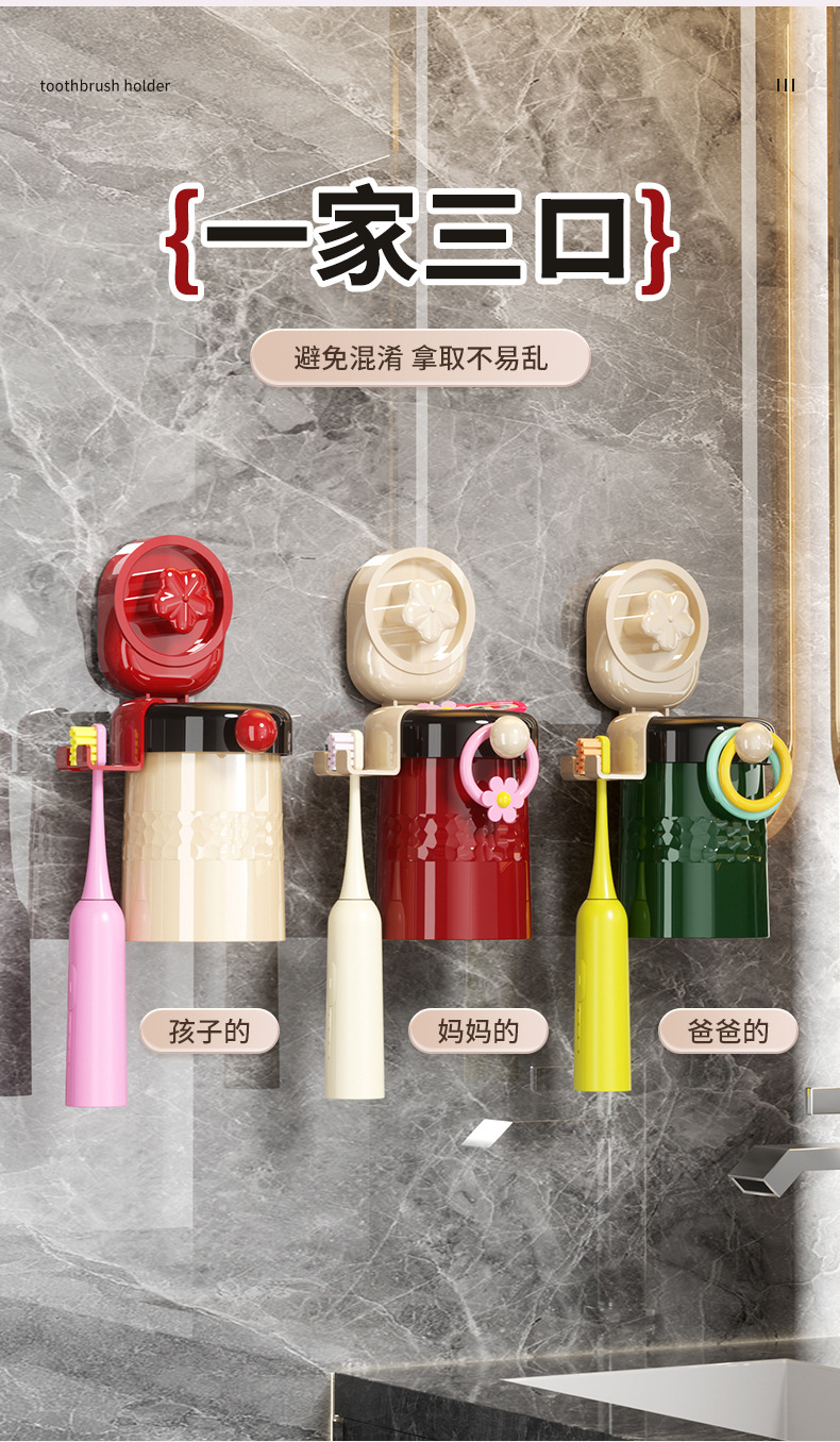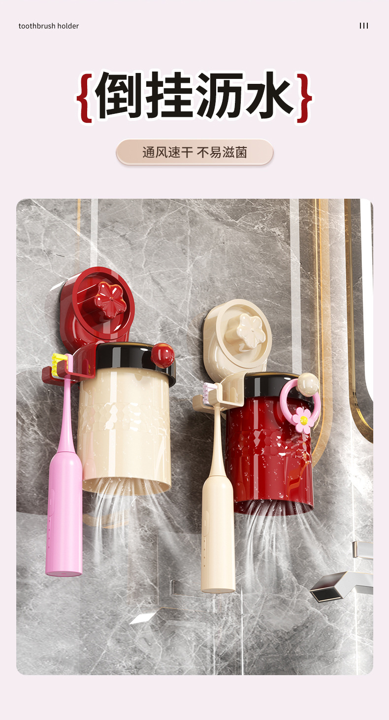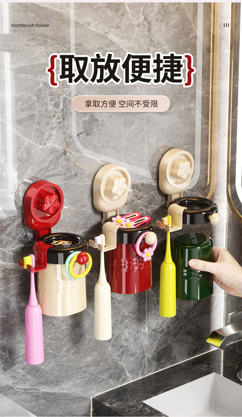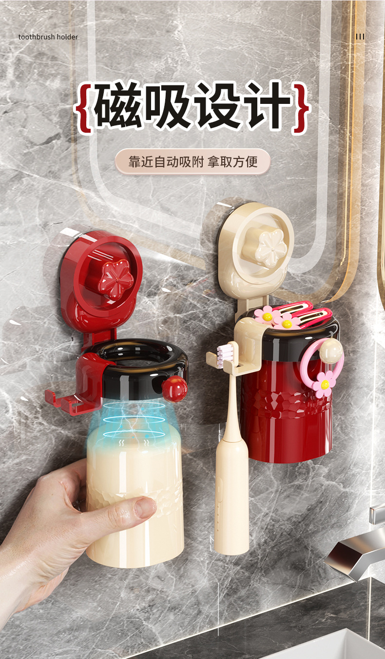 【加厚材质❗️吸盘安装】吸盘牙刷置物架磁吸漱口杯刷牙杯子卫生间壁挂式免打孔洗漱杯套装。ya