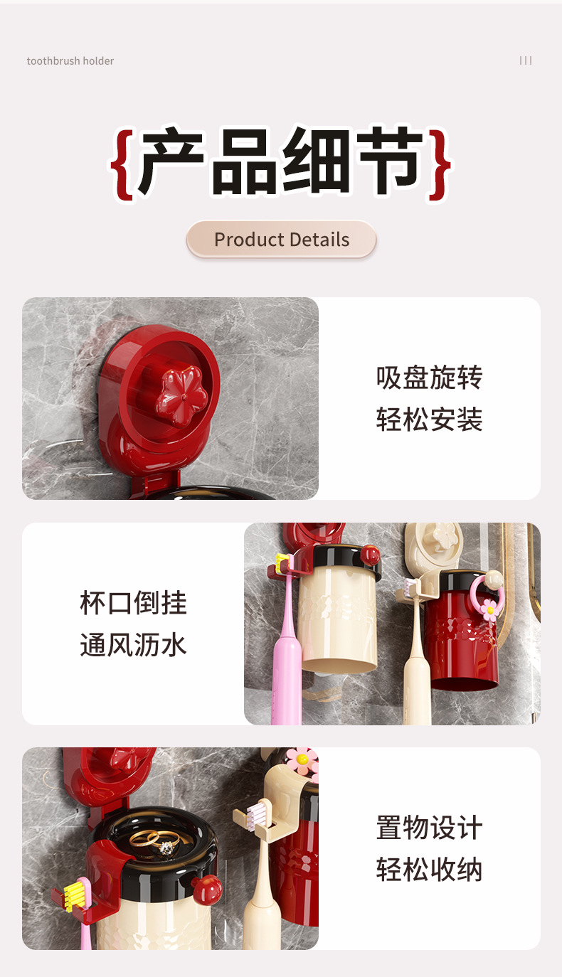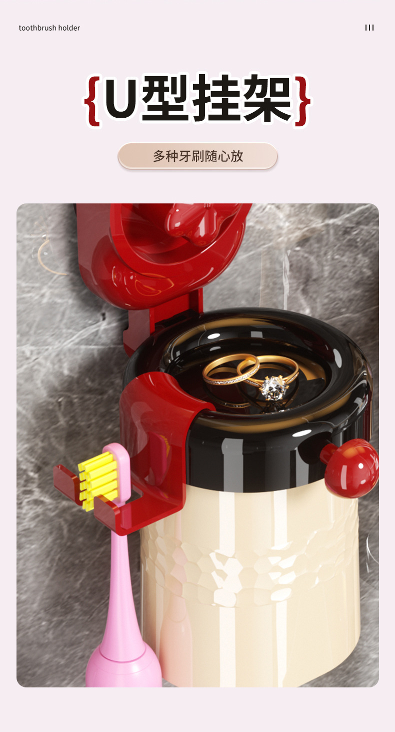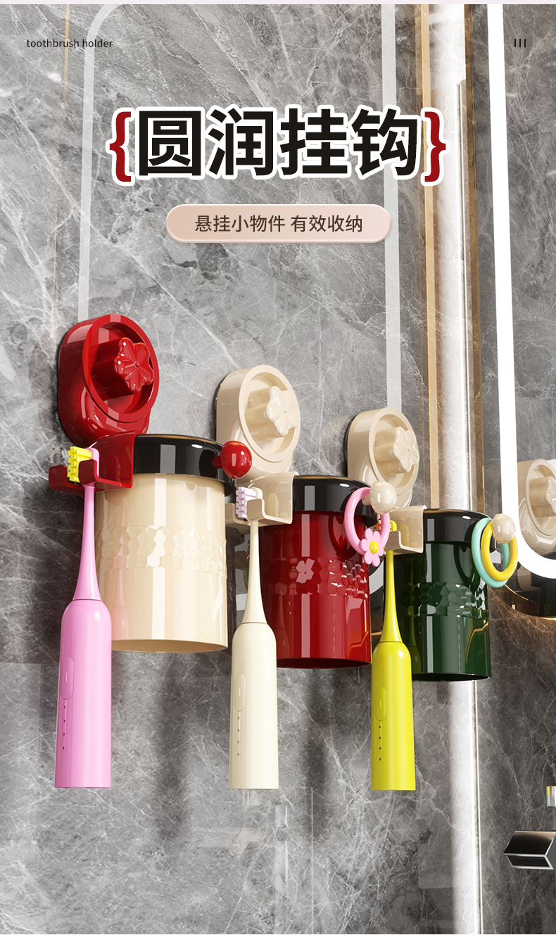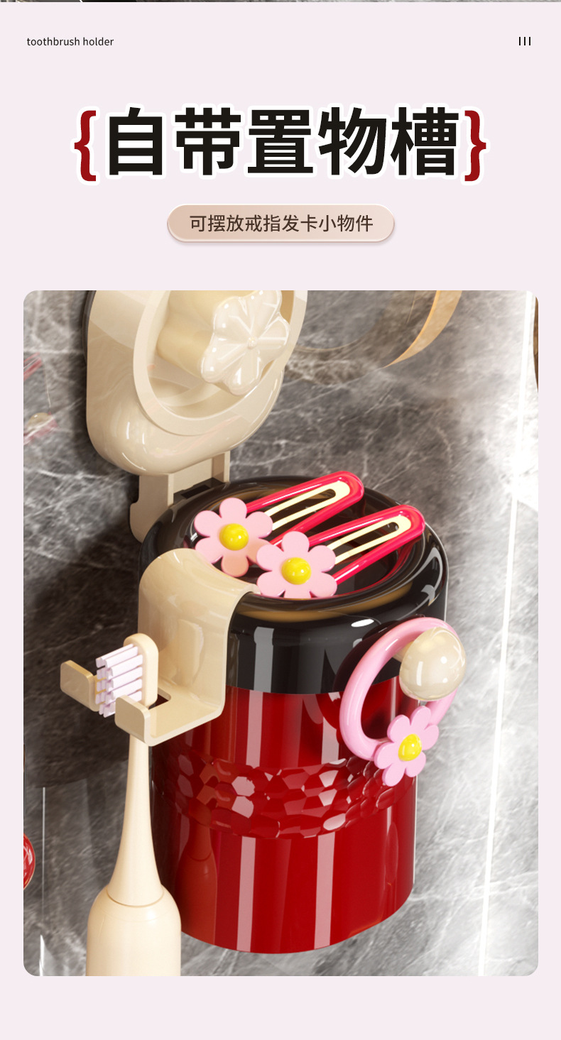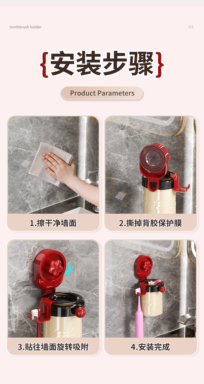【加厚材质❗️吸盘安装】吸盘牙刷置物架磁吸漱口杯刷牙杯子卫生间壁挂式免打孔洗漱杯套装。ya