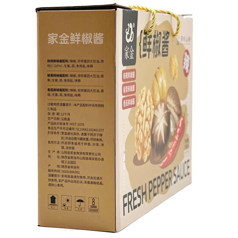 陕西 山阳 鲜椒酱核桃板栗香菇酱 礼盒200g*6瓶/盒