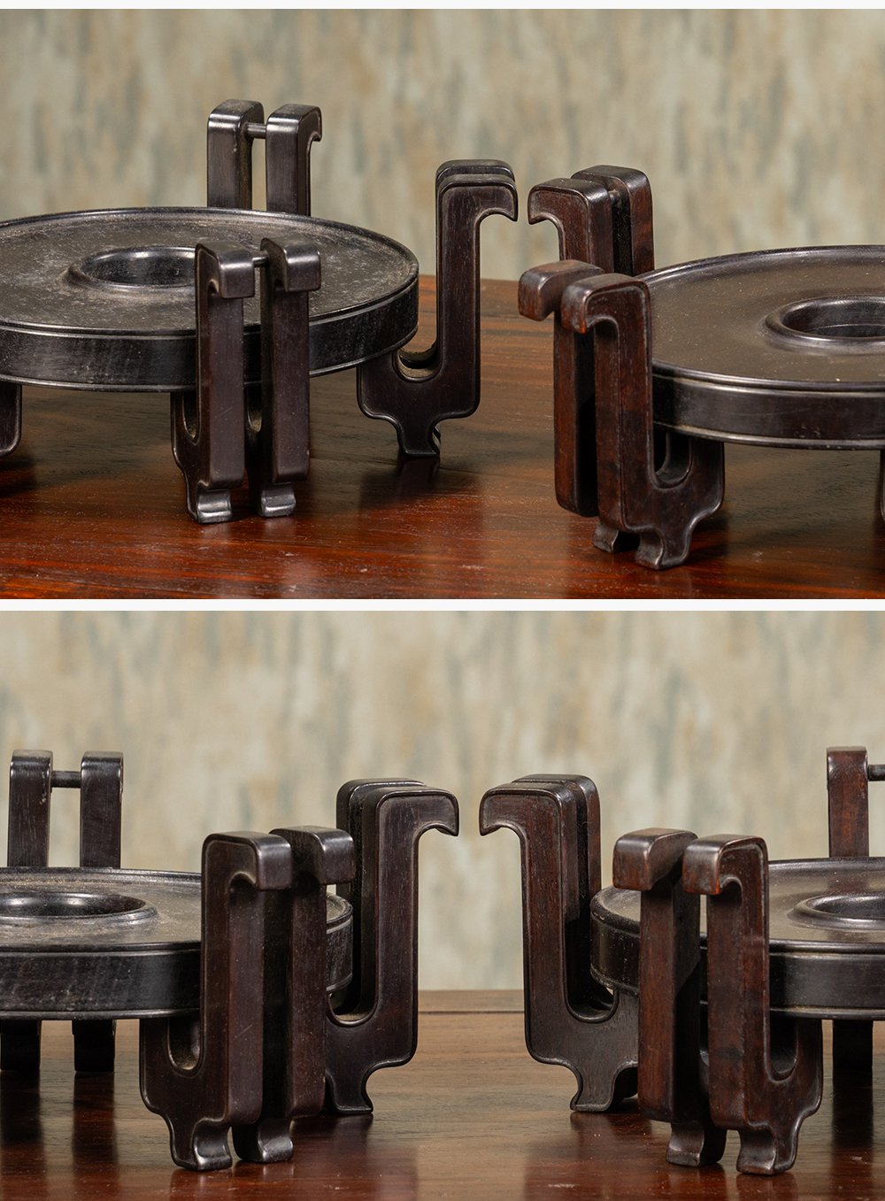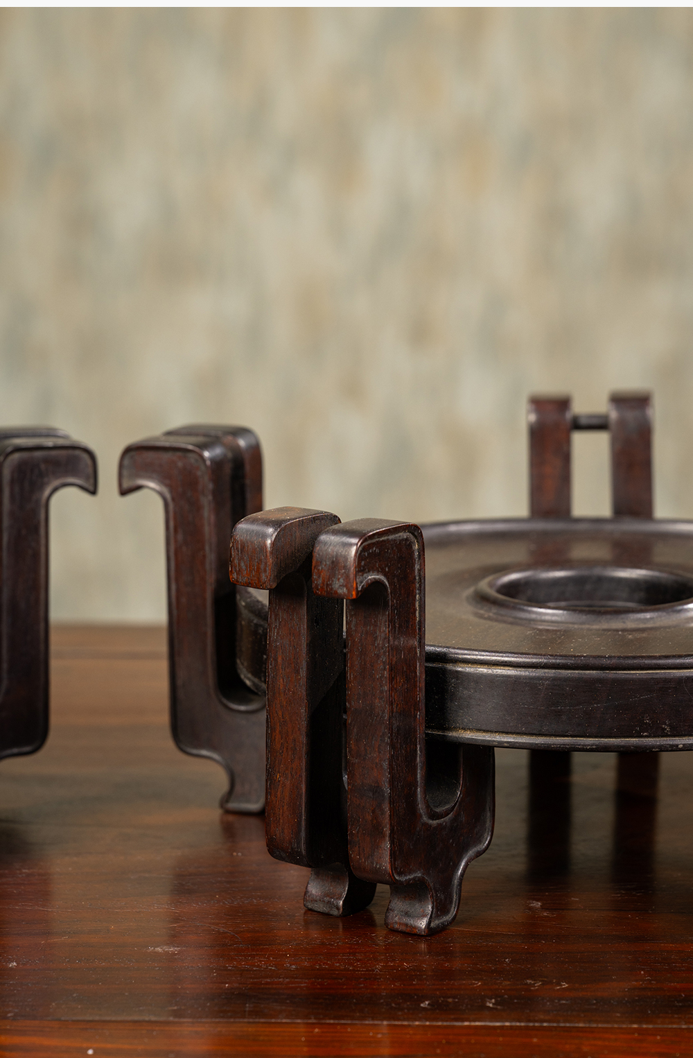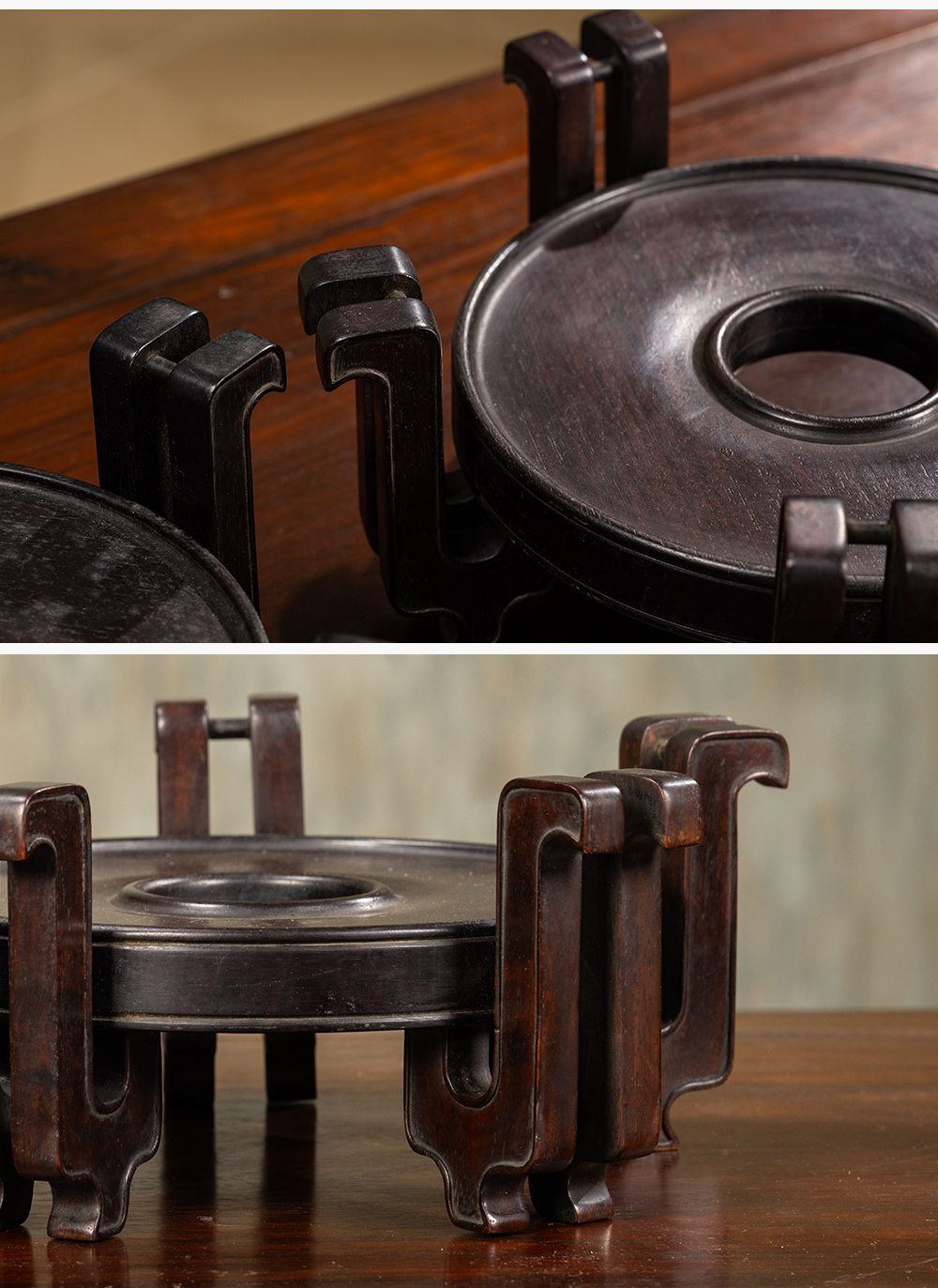 清 青金石嵌绿松石莲花盖盒(红木座)