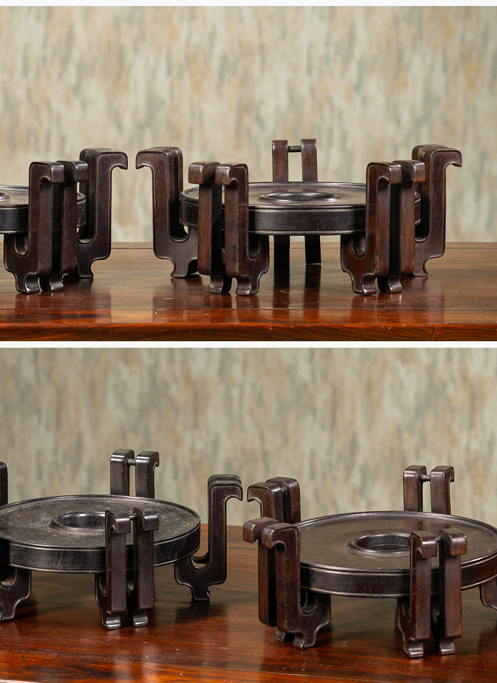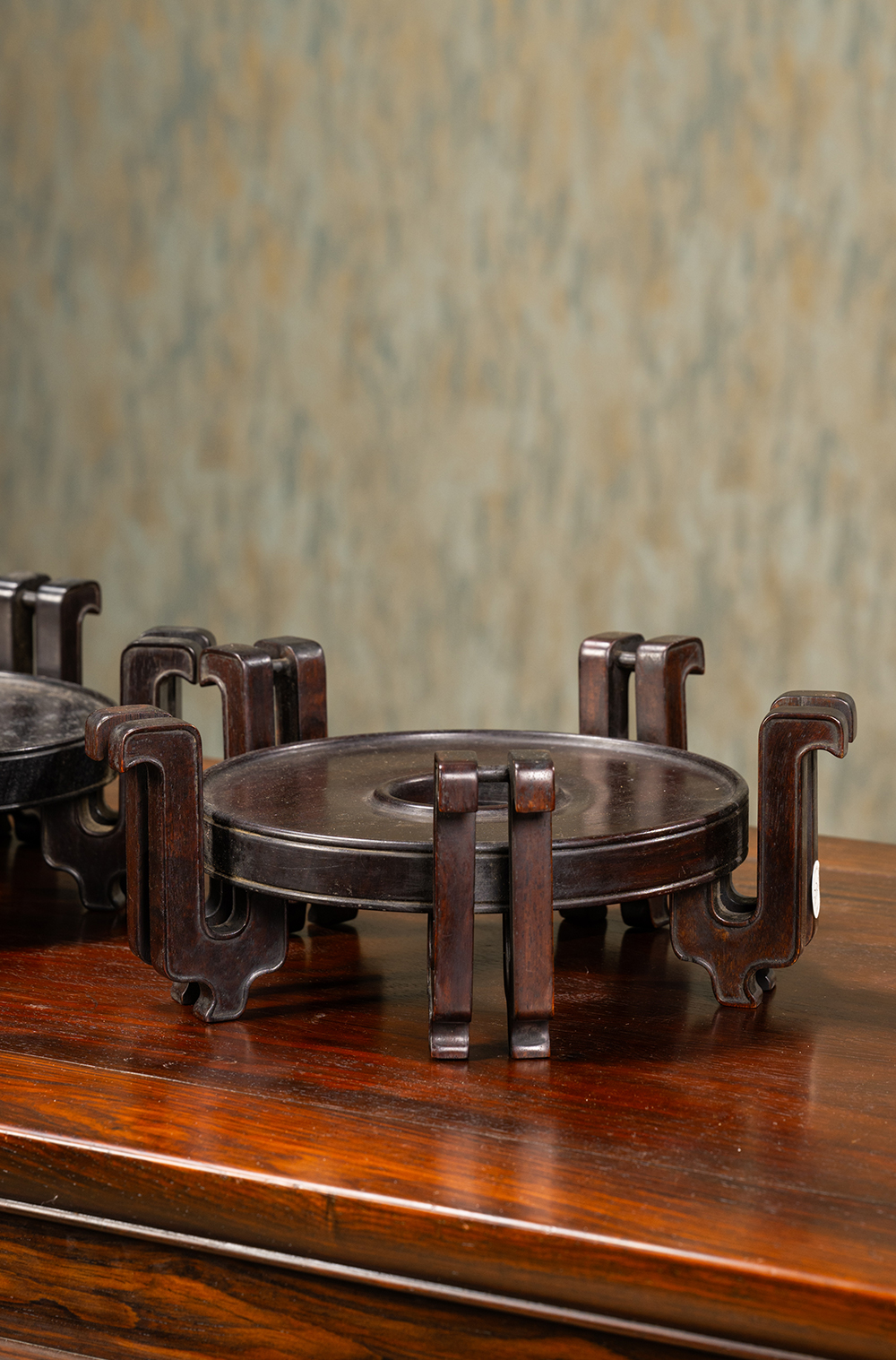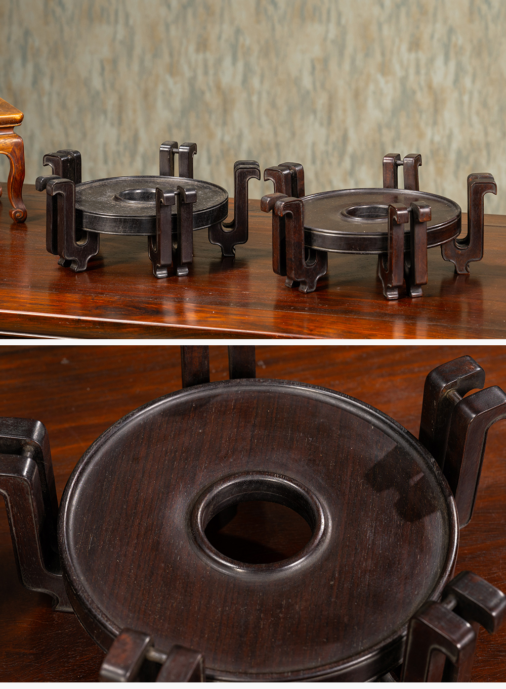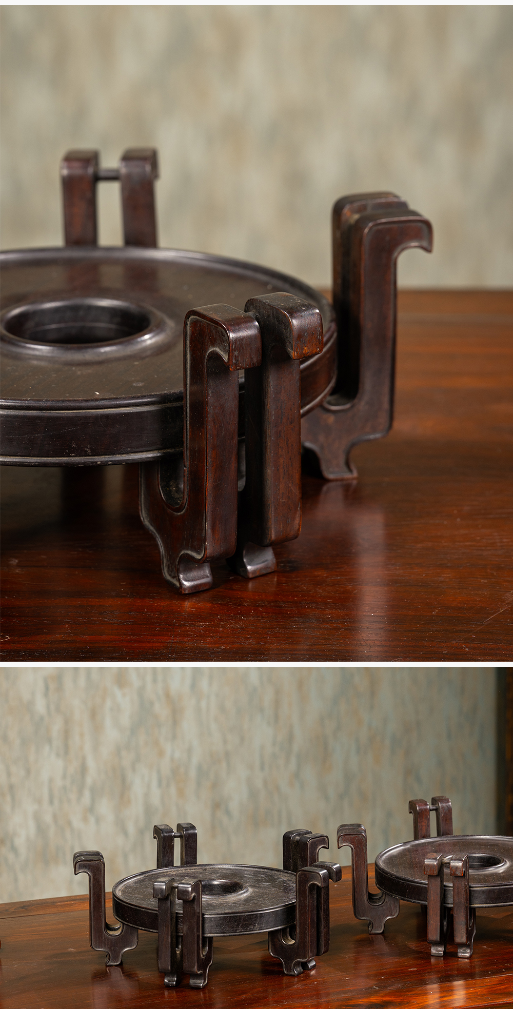 清 青金石嵌绿松石莲花盖盒(红木座)