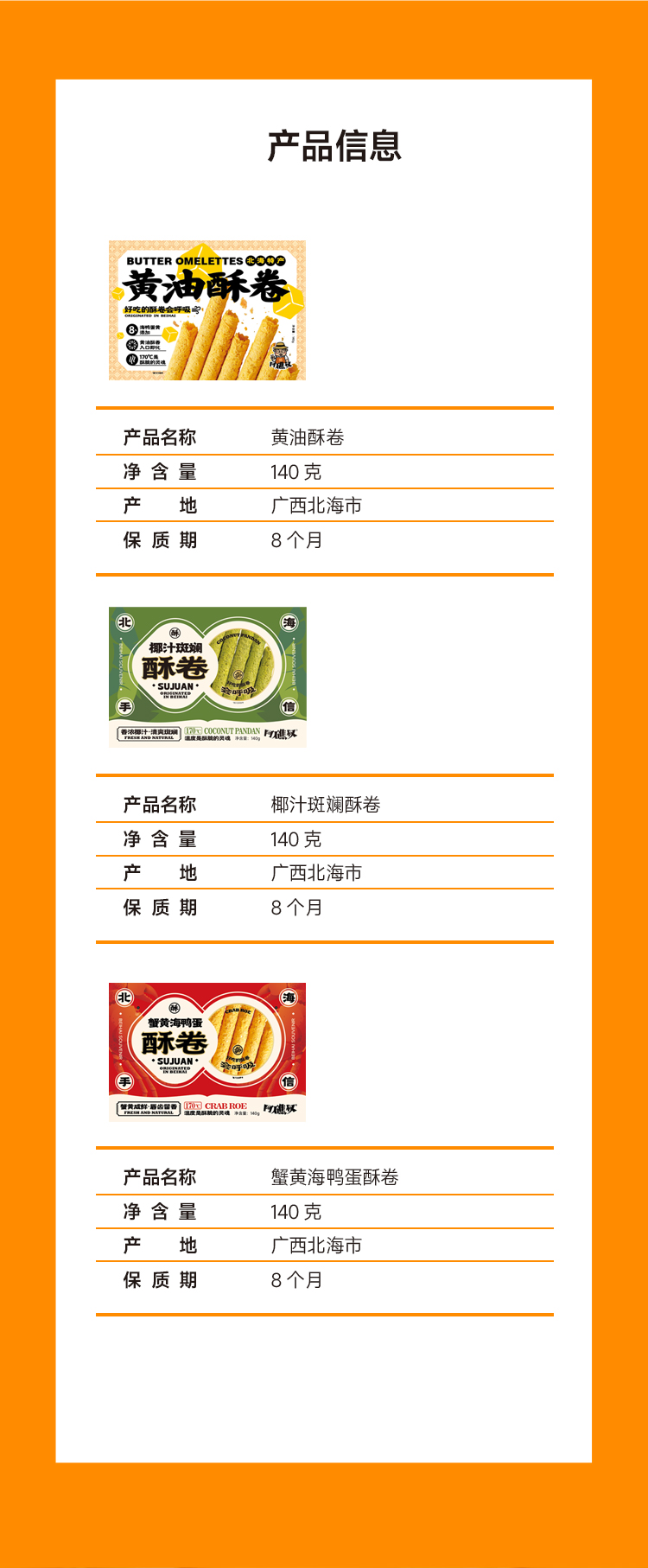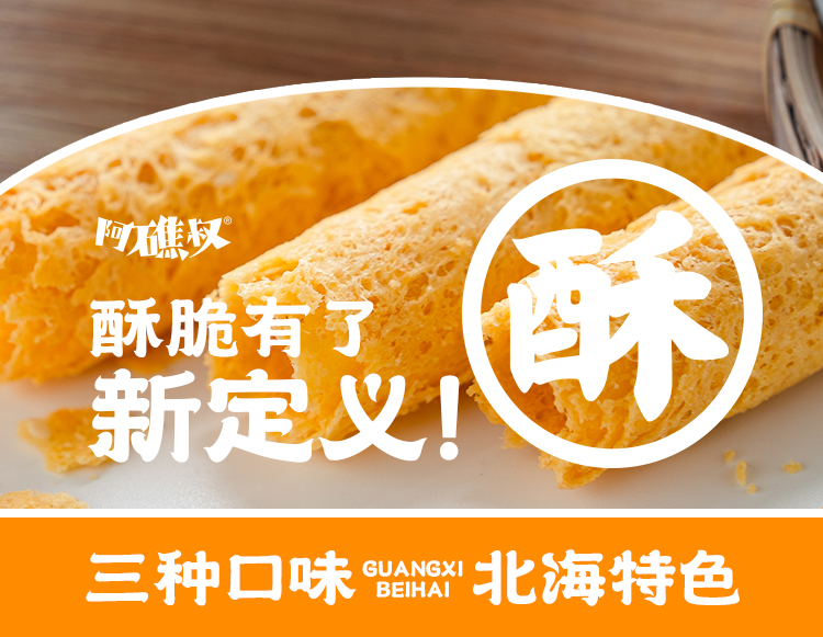 【北海特色】阿礁叔手工酥卷 独立包装 140g/盒*3 口味混合装 蟹黄海鸭蛋/椰汁/黄油口味