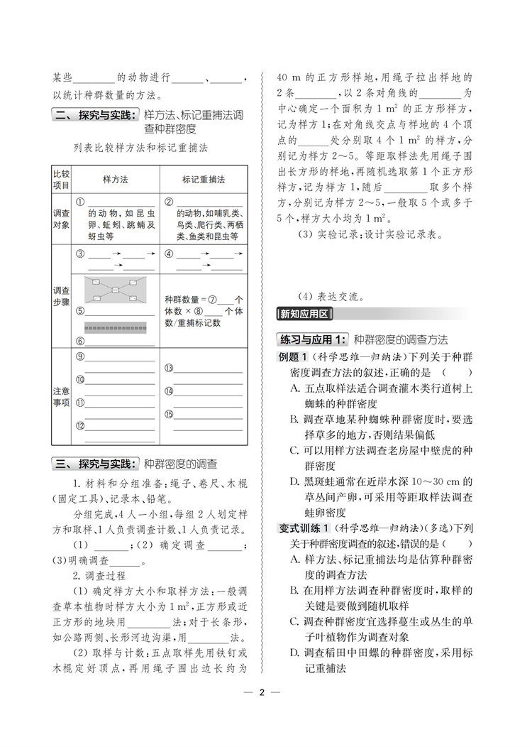 2025年秋 凤凰新学案 高中生物学 人教版 选择性必修2 生物与环境 高中教辅 学生用书 核心素养版 江苏凤凰教育出版社