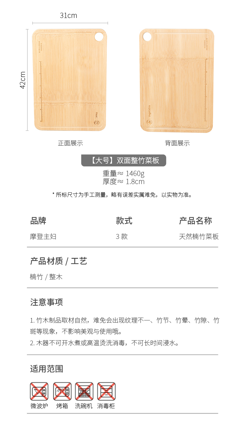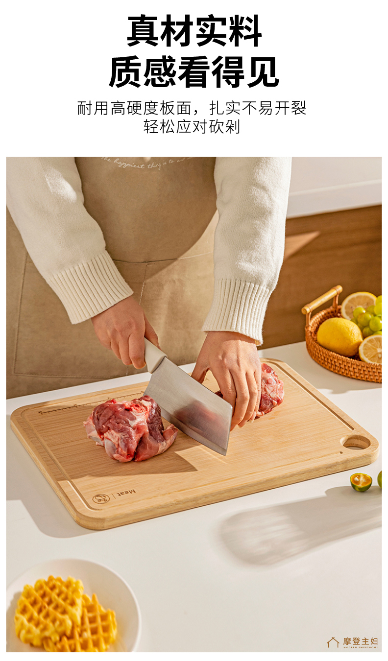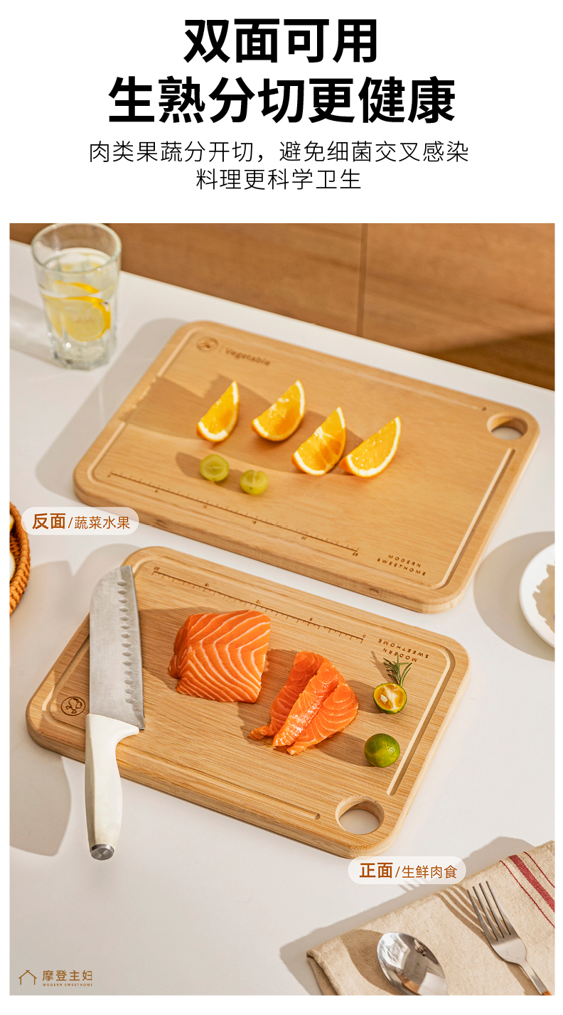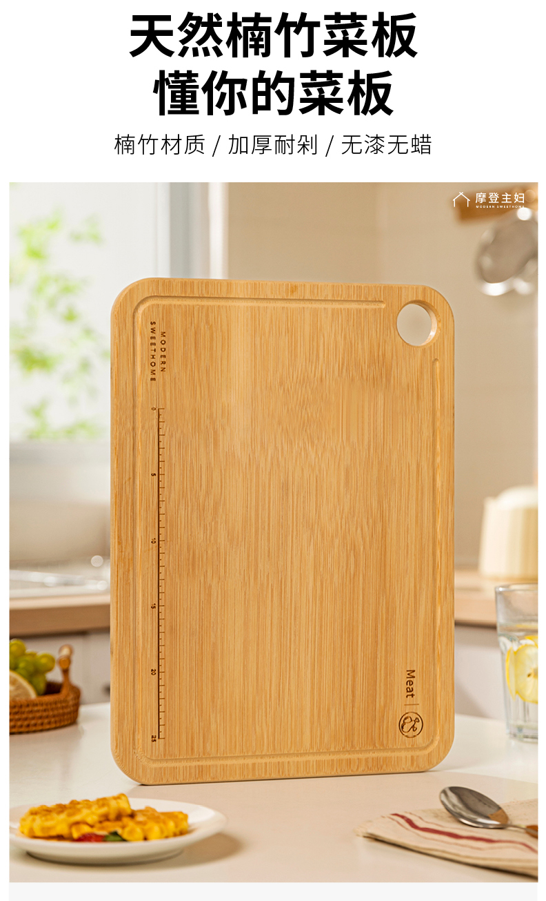 摩登主妇菜板防霉抗菌家用切菜板整竹砧板实木案板面水果粘板厨房