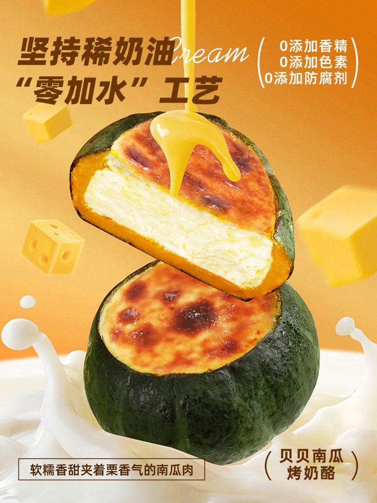 【甄选】梦仲瑶&巧师傅联名贝贝南瓜烤乳酪蛋糕冷热双吃奶香醇厚270g*1个赠勺子1个