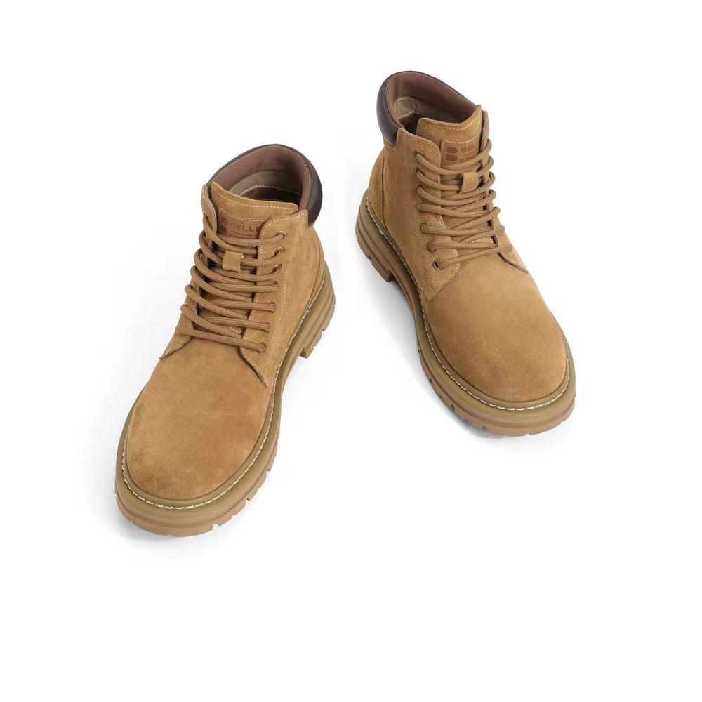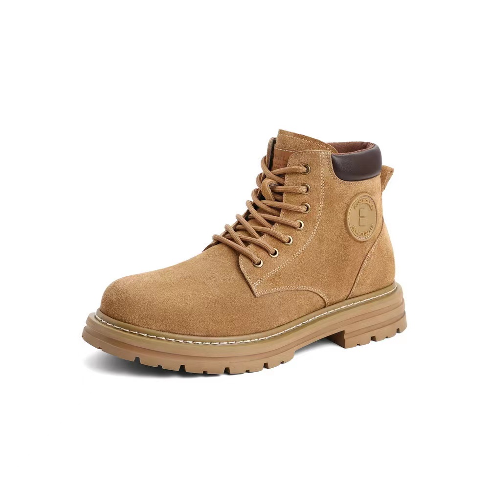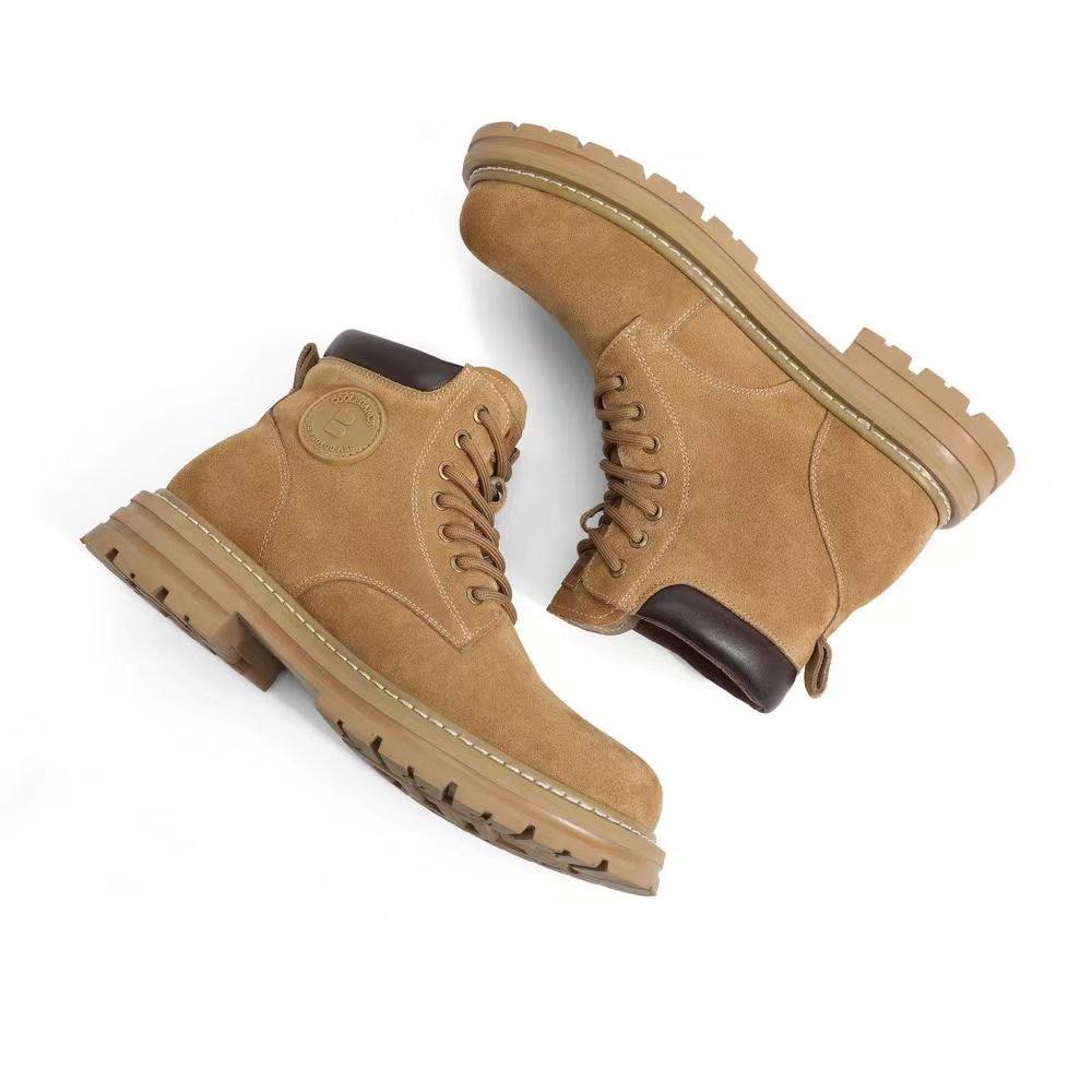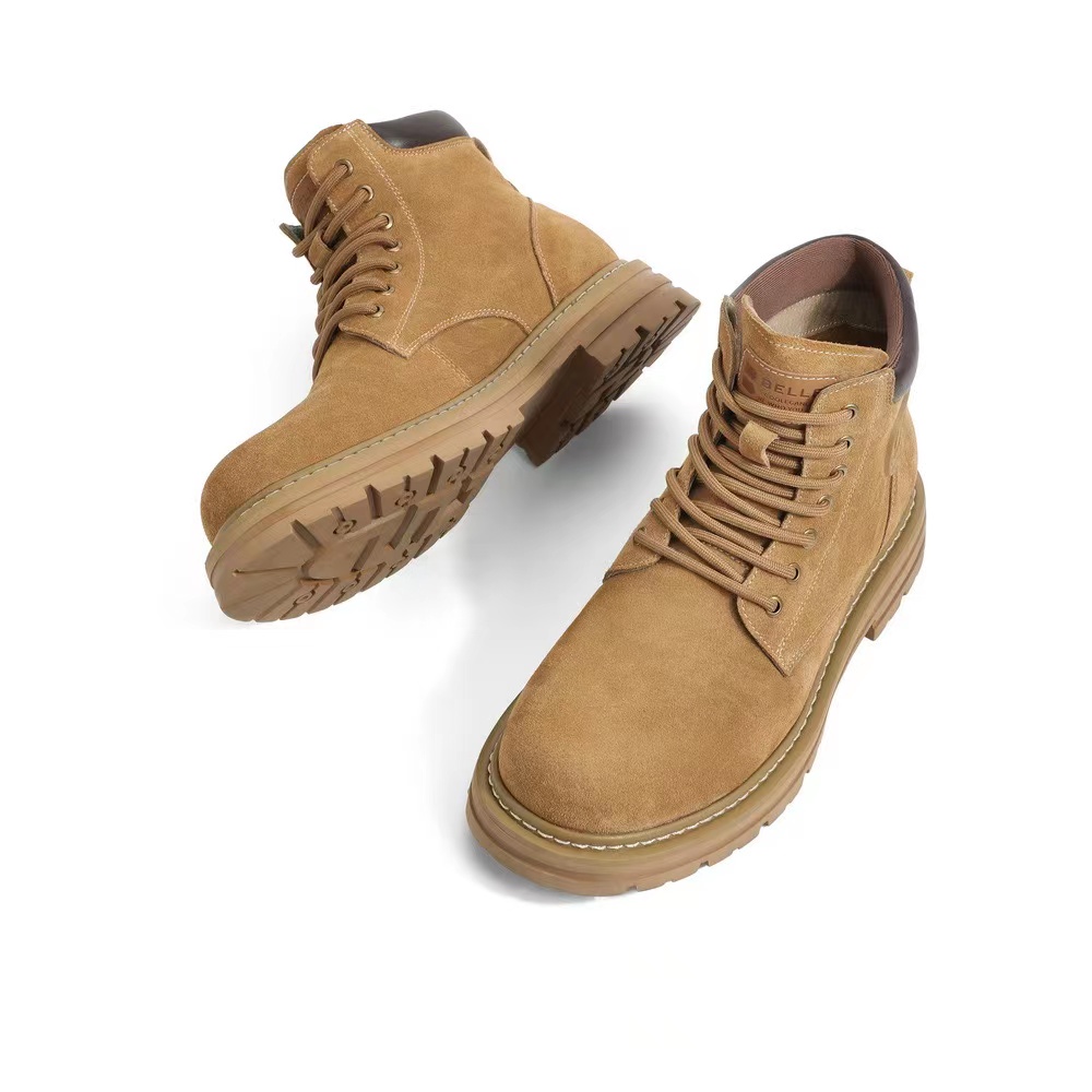 优质头层反绒牛皮,柔软包裹 舒适贴足;高韧性车缝线工艺,多重加固经久耐穿