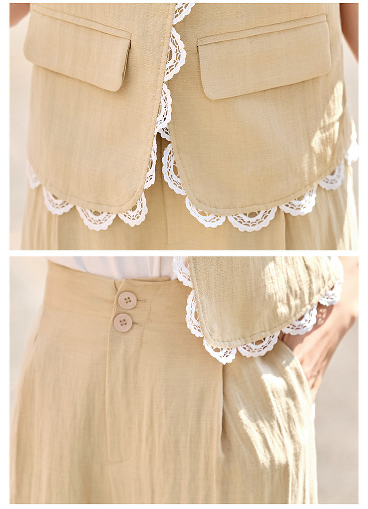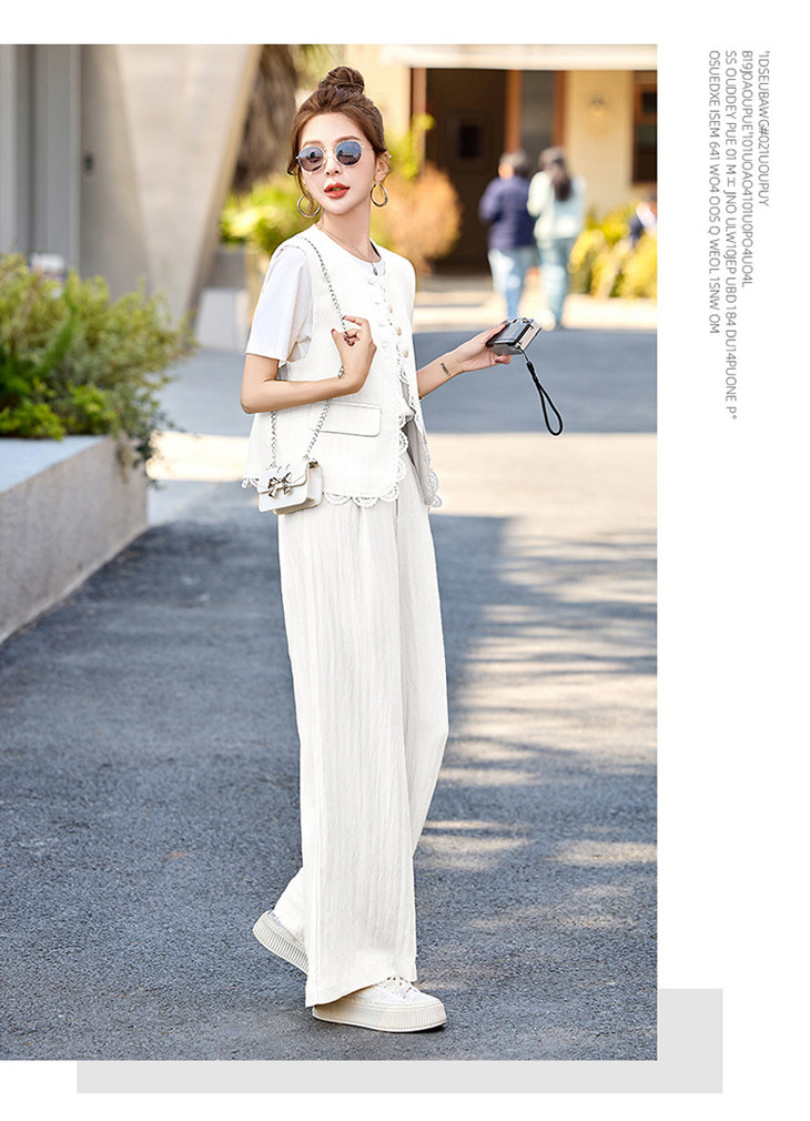 【预售3天】小香风套装2025夏新款老钱风蕾丝亚麻西装马甲阔腿裤穿搭一整套YRX9228