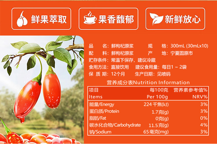 宁夏农科院头茬红枸杞黑枸杞原浆 正宗鲜榨原液