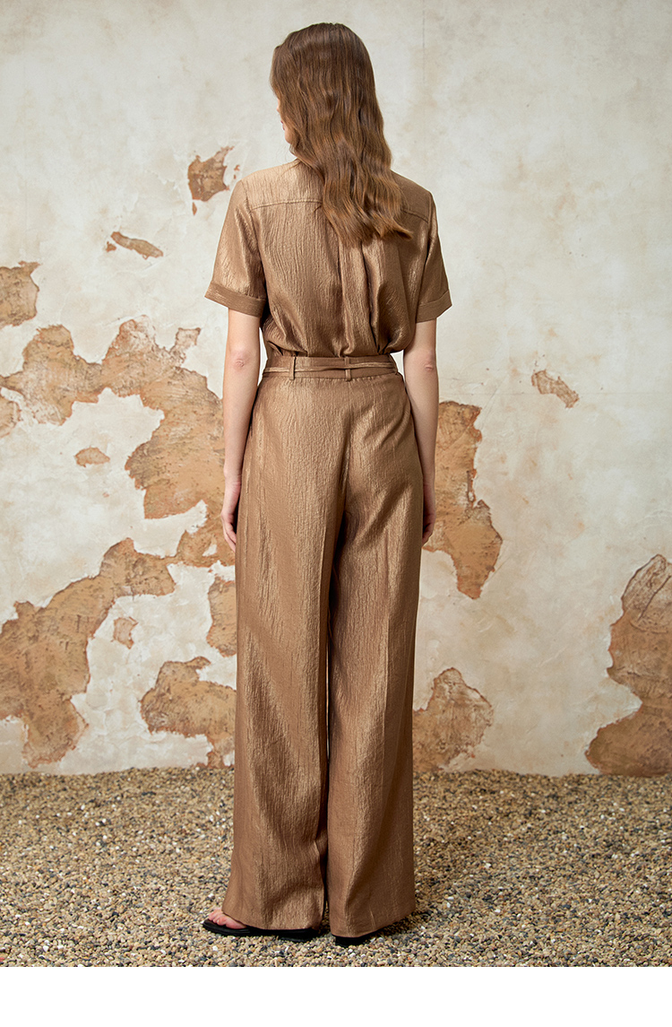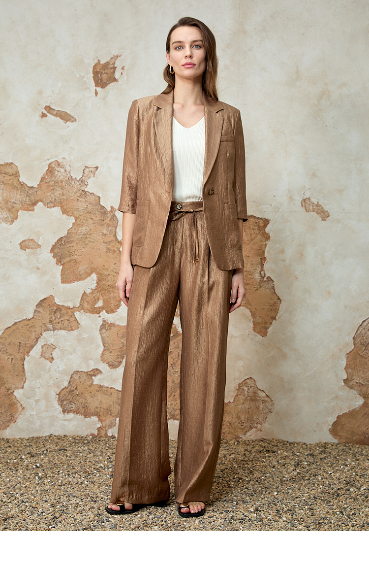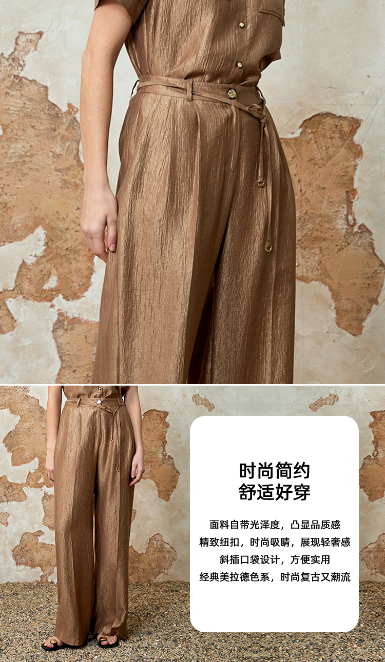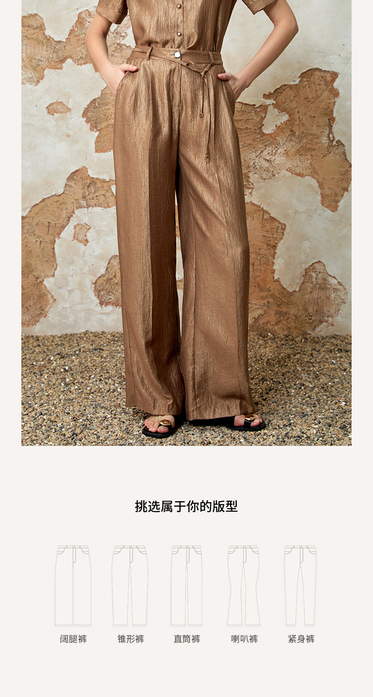 EITIE爱特爱时尚复古高腰利落阔腿休闲裤夏季新款8205904