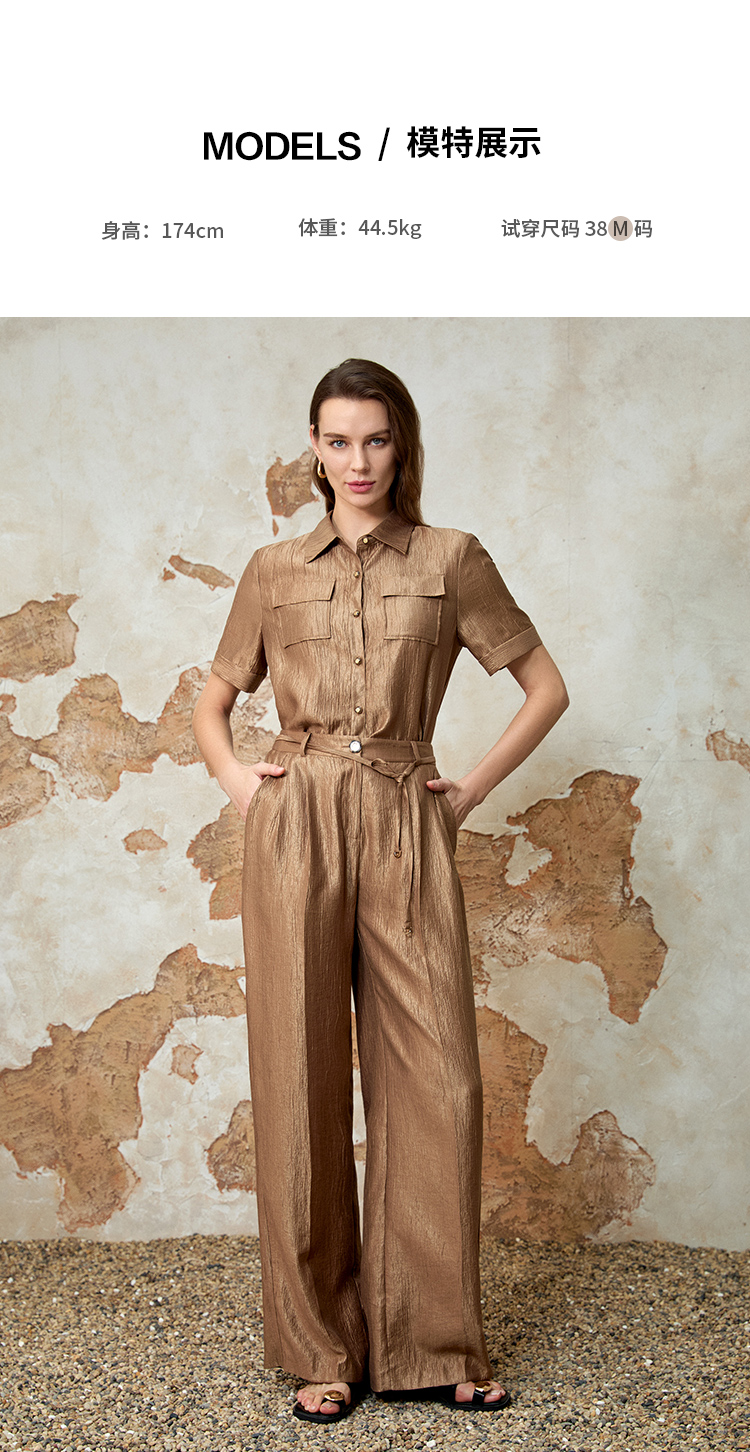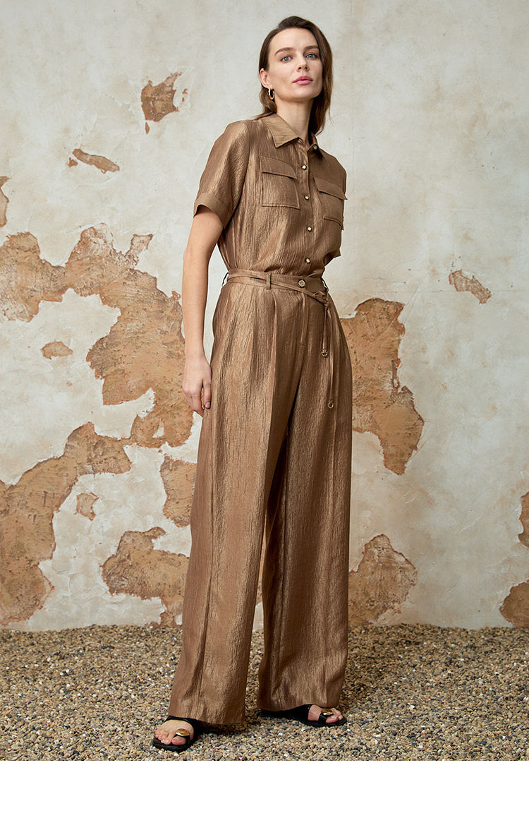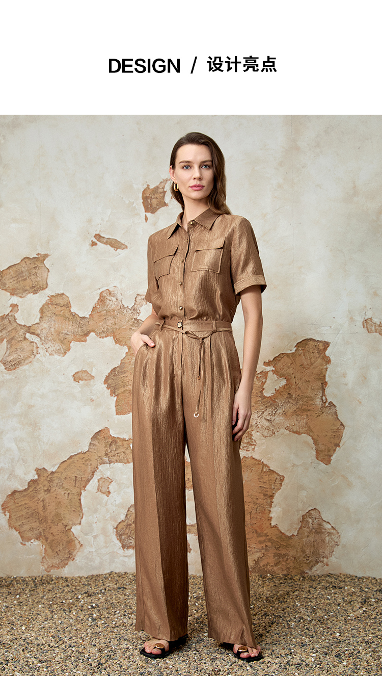 EITIE爱特爱时尚复古高腰利落阔腿休闲裤夏季新款8205904