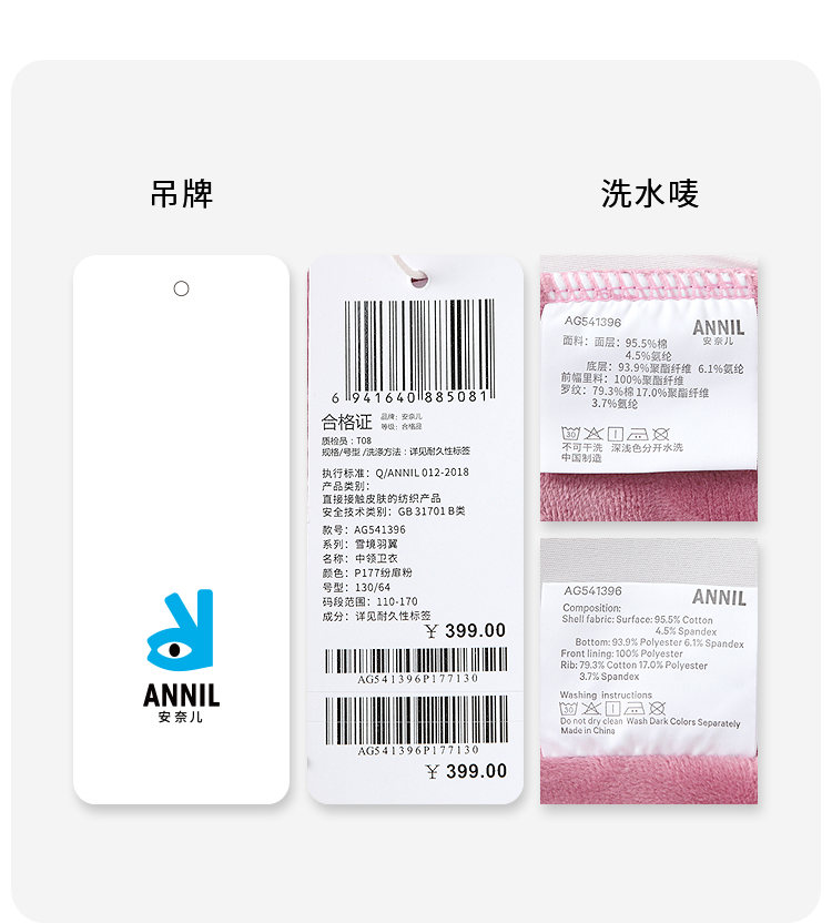 【实体店同款】女童中领卫衣冬季新款安奈儿童装AG541396