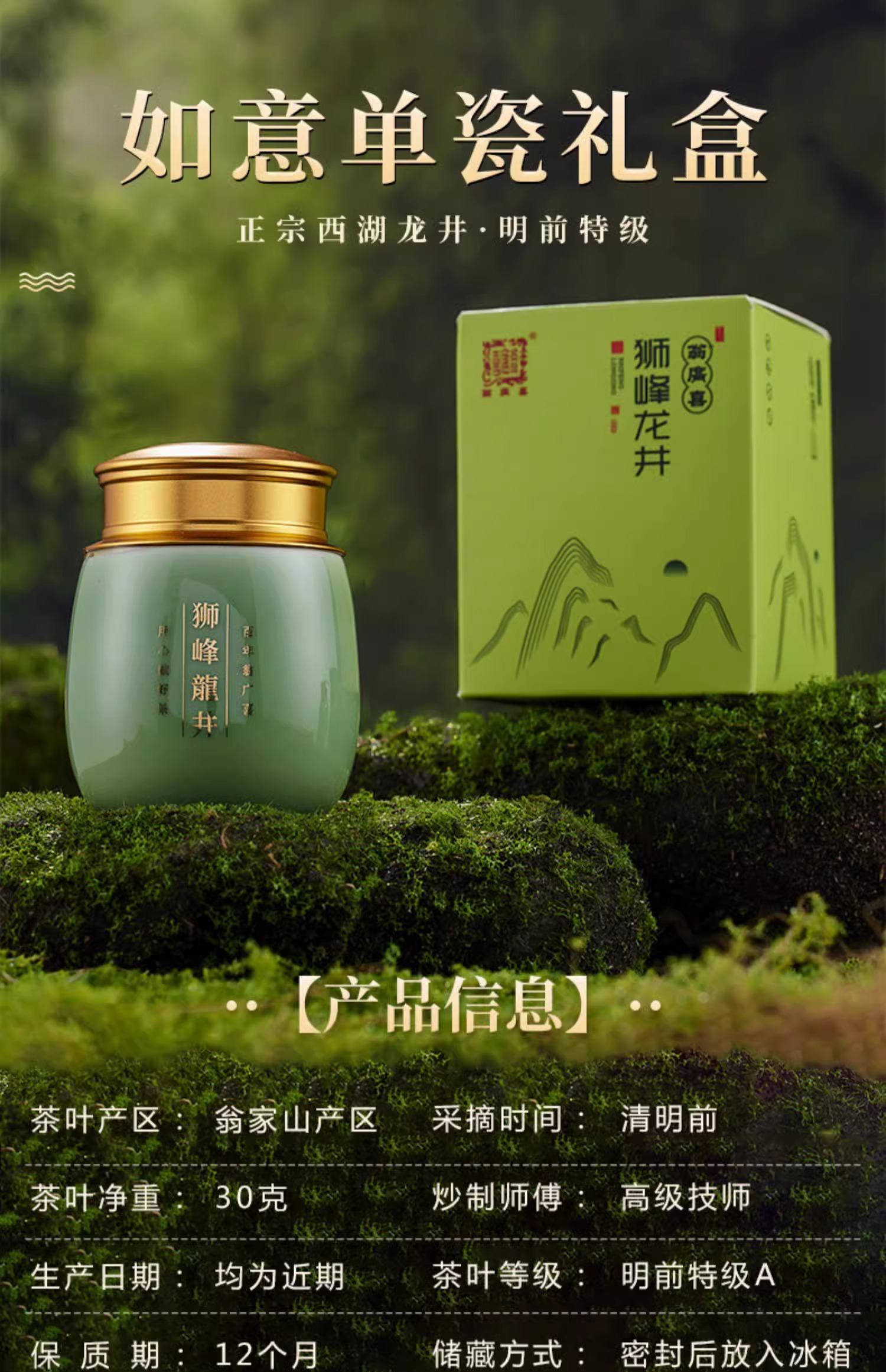 绿茶2025年新茶杭州翁家山龙井特级A(30克如意单瓷)