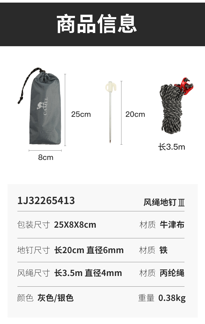 骆驼户外露营帐篷天幕夜光地钉固定钉防风绳套装野营装备配件工具 1J32265413_1J32265414_1J32265415