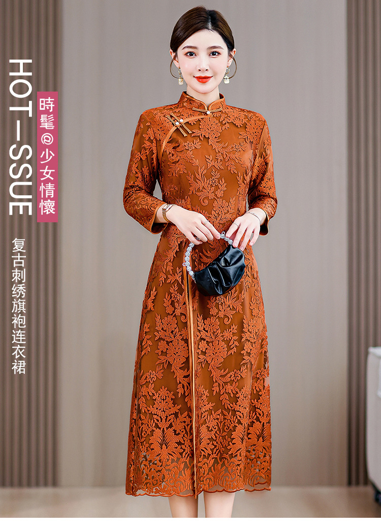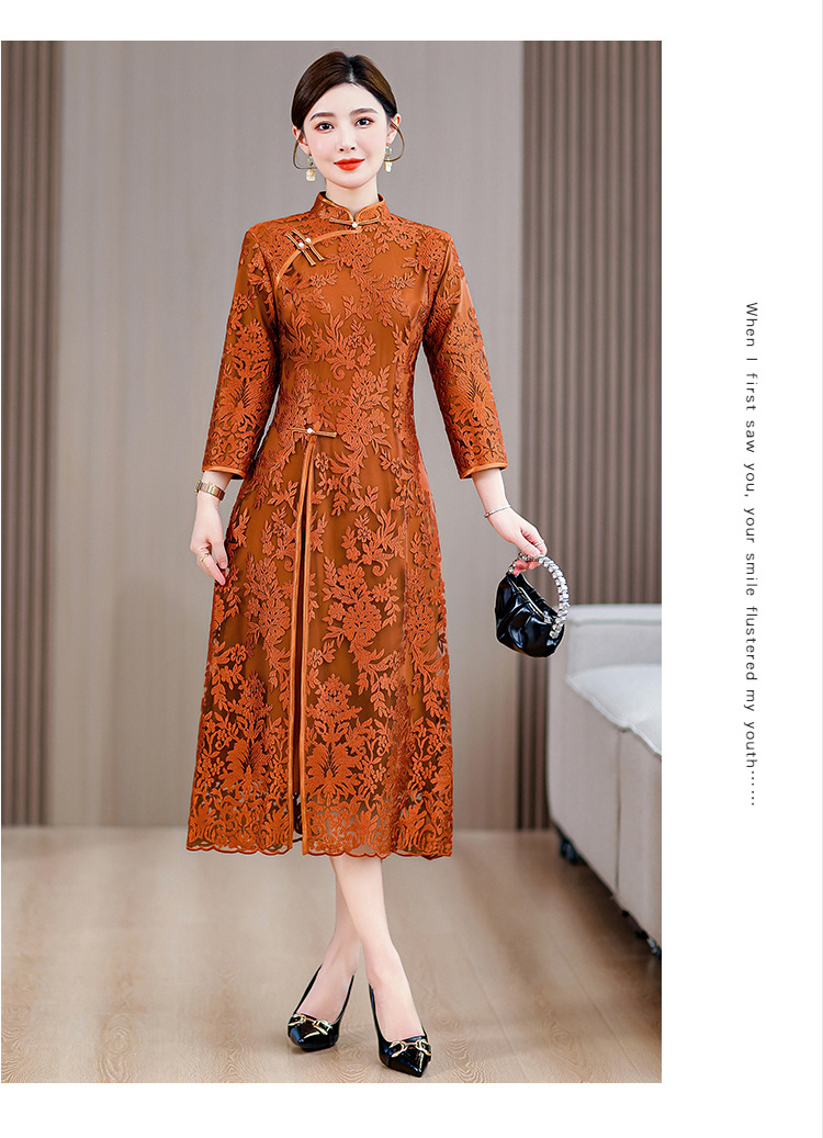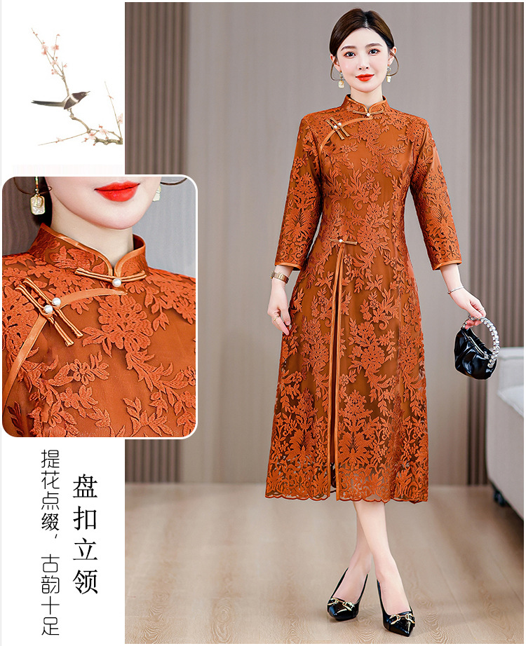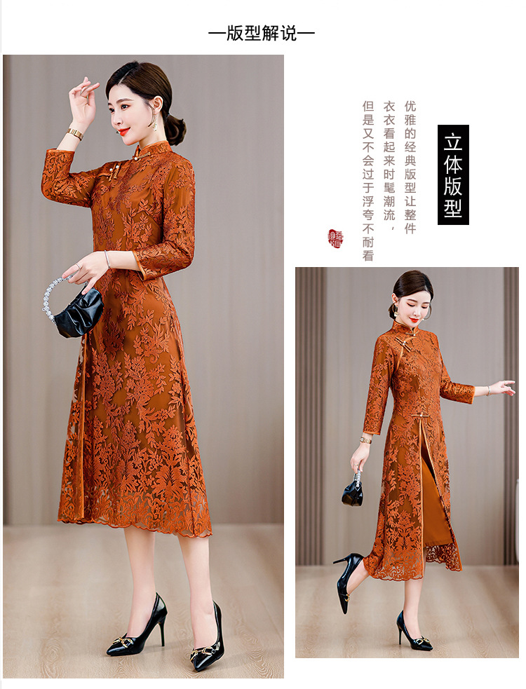 AHM thfs9560妈妈装连衣裙改良新中式蕾丝旗袍 商品图0
