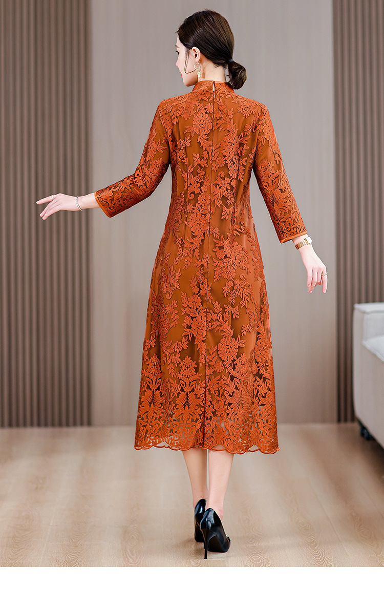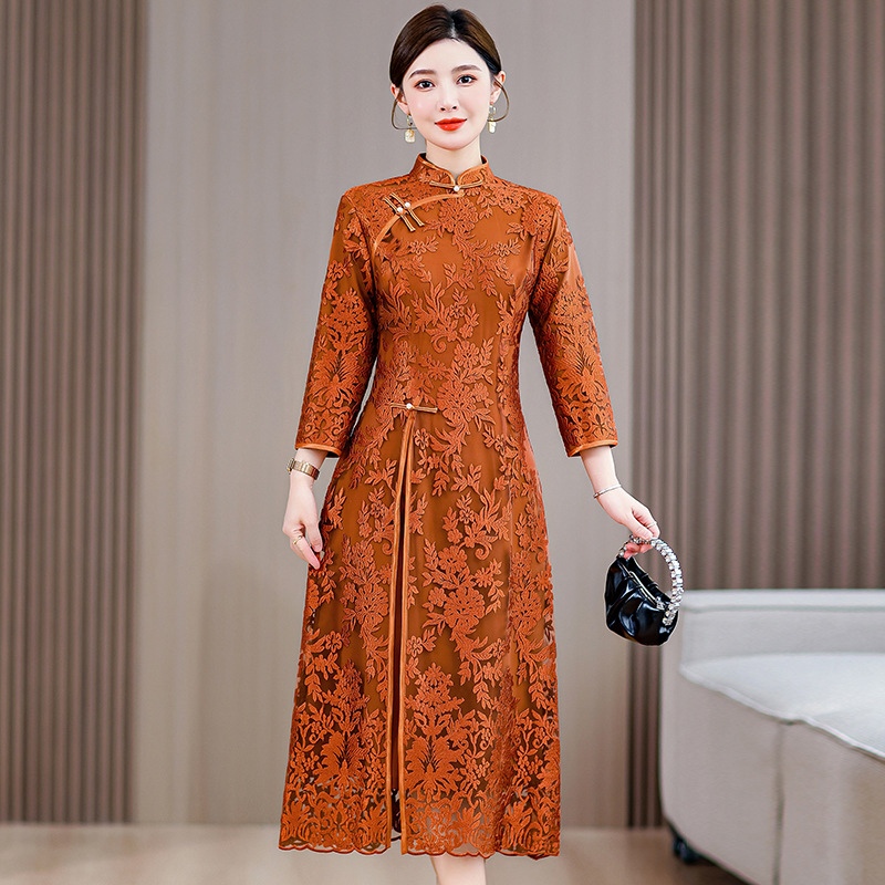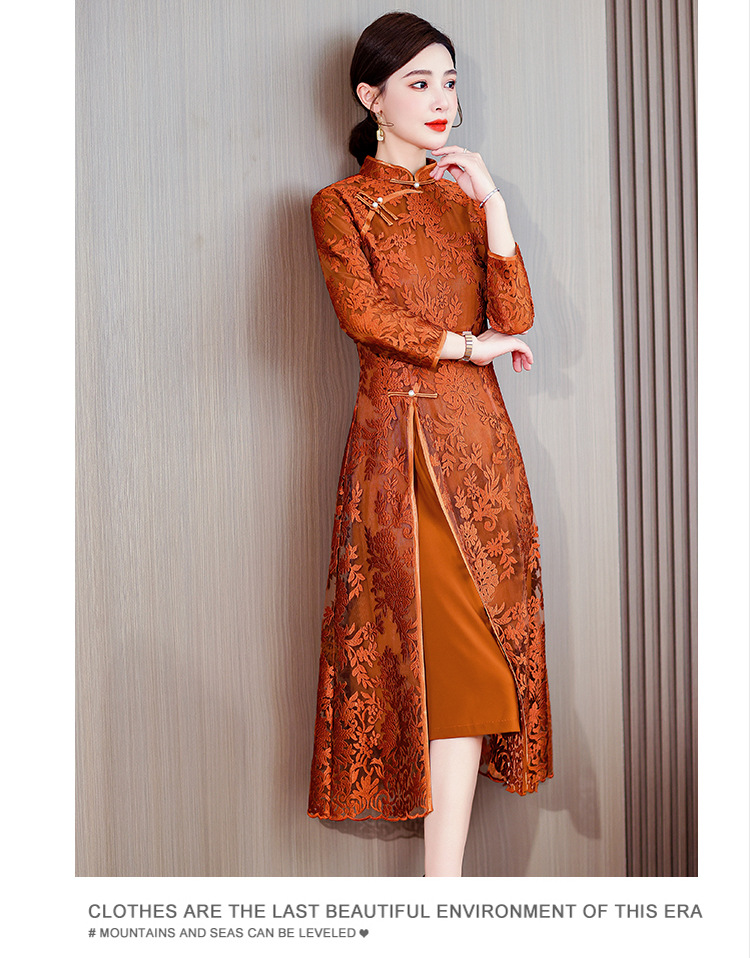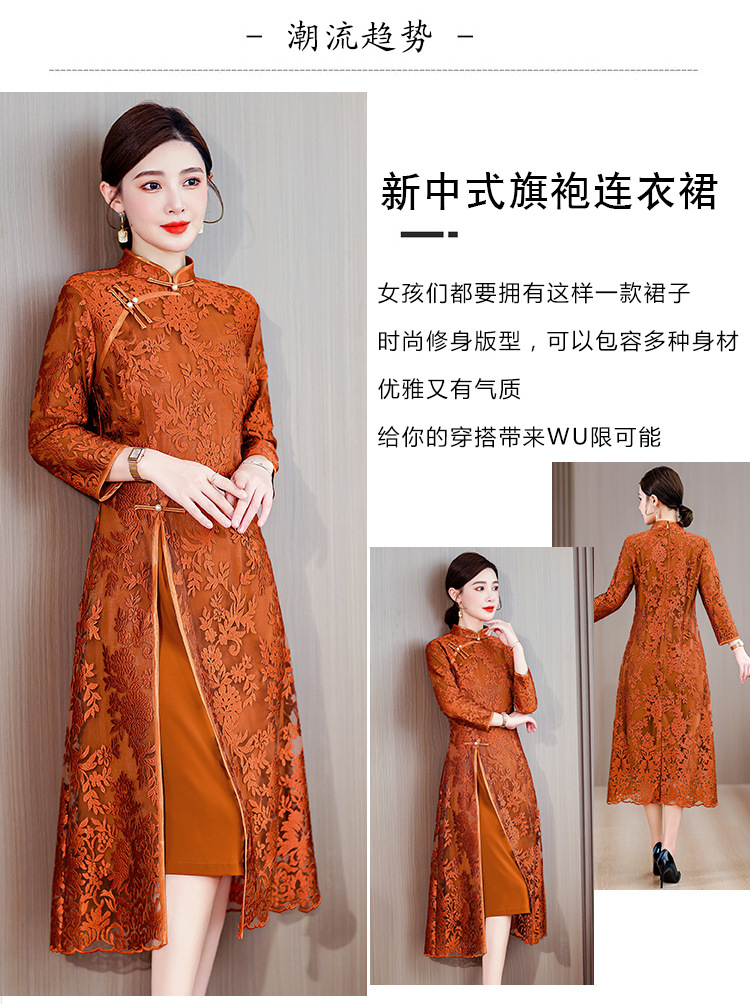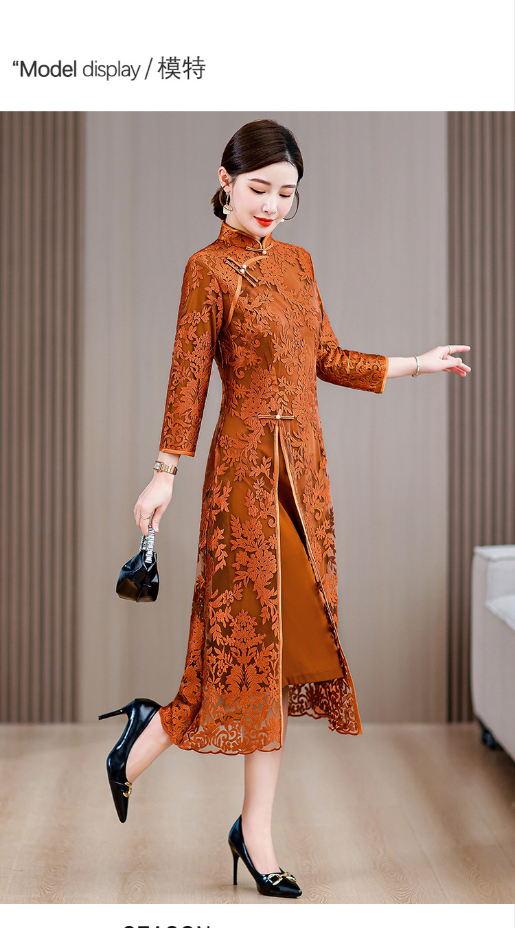 AHM thfs9560妈妈装连衣裙改良新中式蕾丝旗袍 商品图0