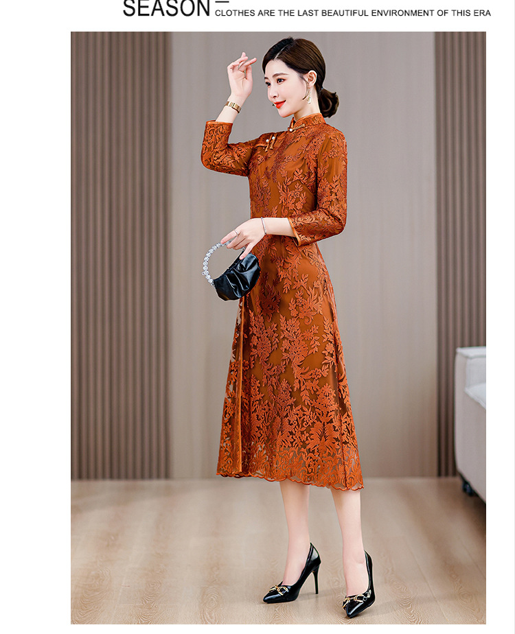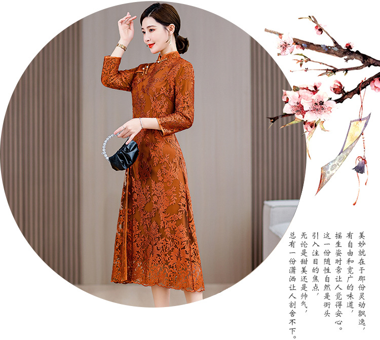 AHM thfs9560妈妈装连衣裙改良新中式蕾丝旗袍 商品图4