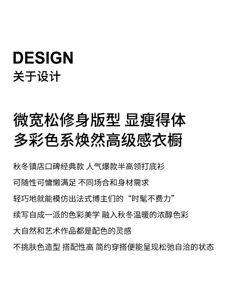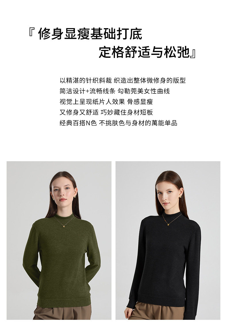 「自」全新升级【铂金会员146/天猫189/差价43】(83329)洛诗琳气质半高领毛衣2025秋冬套头修身纯色百搭打底衫