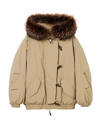 朗姿 【匈牙利白鹅绒】 大毛领短款派克羽绒服厚LCGD98OYC019